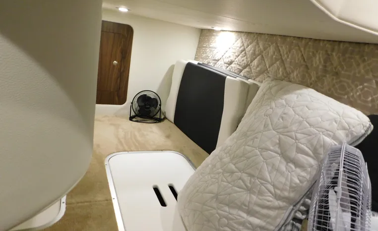 Freshwater / Great Lakes boat since new this vessel features Twin MerCruiser 350-Mag 300-hp Gas Engine's with Bravo III Sterndrives and only 214 original hours. Notable features include but are not limited to the following: Air-Conditioning & Heat (1-Unit), Head (Techna) w/Vanity/Sink/Shower, Built-In Screen Door, Walk Through Windshield, Windlass Anchor, Sun-Pad, Canvas Enclosure w/Forward Poly-Carbonite Windows, Cockpit Wet Bar w/Sink/Refrigerator, Blender, Power Engine Hatch, Raymarine Color NAV-System, Premium Sound System w/Bluetooth, Snap-in Snap-out Cockpit Carpeting (2 Sets), Bow and Stern Thrusters with Remote and MUCH more!