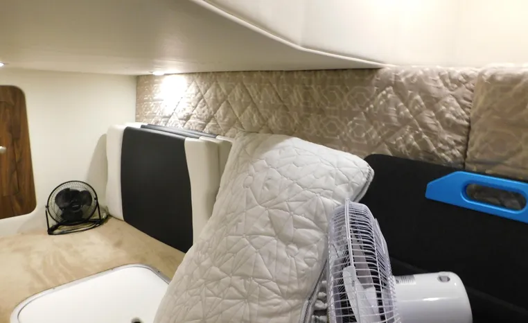 Freshwater / Great Lakes boat since new this vessel features Twin MerCruiser 350-Mag 300-hp Gas Engine's with Bravo III Sterndrives and only 214 original hours. Notable features include but are not limited to the following: Air-Conditioning & Heat (1-Unit), Head (Techna) w/Vanity/Sink/Shower, Built-In Screen Door, Walk Through Windshield, Windlass Anchor, Sun-Pad, Canvas Enclosure w/Forward Poly-Carbonite Windows, Cockpit Wet Bar w/Sink/Refrigerator, Blender, Power Engine Hatch, Raymarine Color NAV-System, Premium Sound System w/Bluetooth, Snap-in Snap-out Cockpit Carpeting (2 Sets), Bow and Stern Thrusters with Remote and MUCH more!