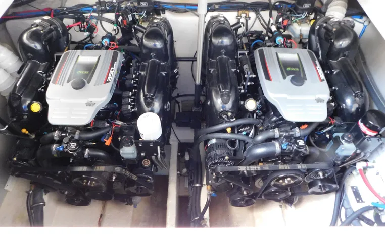 Broker Notes: Desirable colored hull (in excellent condition), Poly-Carbonite Forward Canvas Windows, Premium Sound System w/AMP/Sub-Woofer, Fly-by-Wire Controls. Drive Showers, New Rear Marinemat on Swim Platform, New Bow and Stern Thrusters with Remote and New Refrigerator/Freezer in the Galley. Highly recommended by listing agent!
