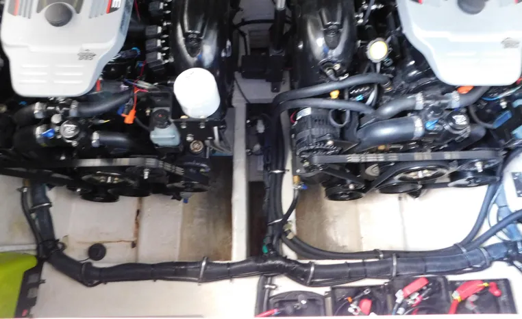 Freshwater / Great Lakes boat since new this vessel features Twin MerCruiser 350-Mag 300-hp Gas Engine's with Bravo III Sterndrives and only 214 original hours. Notable features include but are not limited to the following: Air-Conditioning & Heat (1-Unit), Head (Techna) w/Vanity/Sink/Shower, Built-In Screen Door, Walk Through Windshield, Windlass Anchor, Sun-Pad, Canvas Enclosure w/Forward Poly-Carbonite Windows, Cockpit Wet Bar w/Sink/Refrigerator, Blender, Power Engine Hatch, Raymarine Color NAV-System, Premium Sound System w/Bluetooth, Snap-in Snap-out Cockpit Carpeting (2 Sets), Bow and Stern Thrusters with Remote and MUCH more!