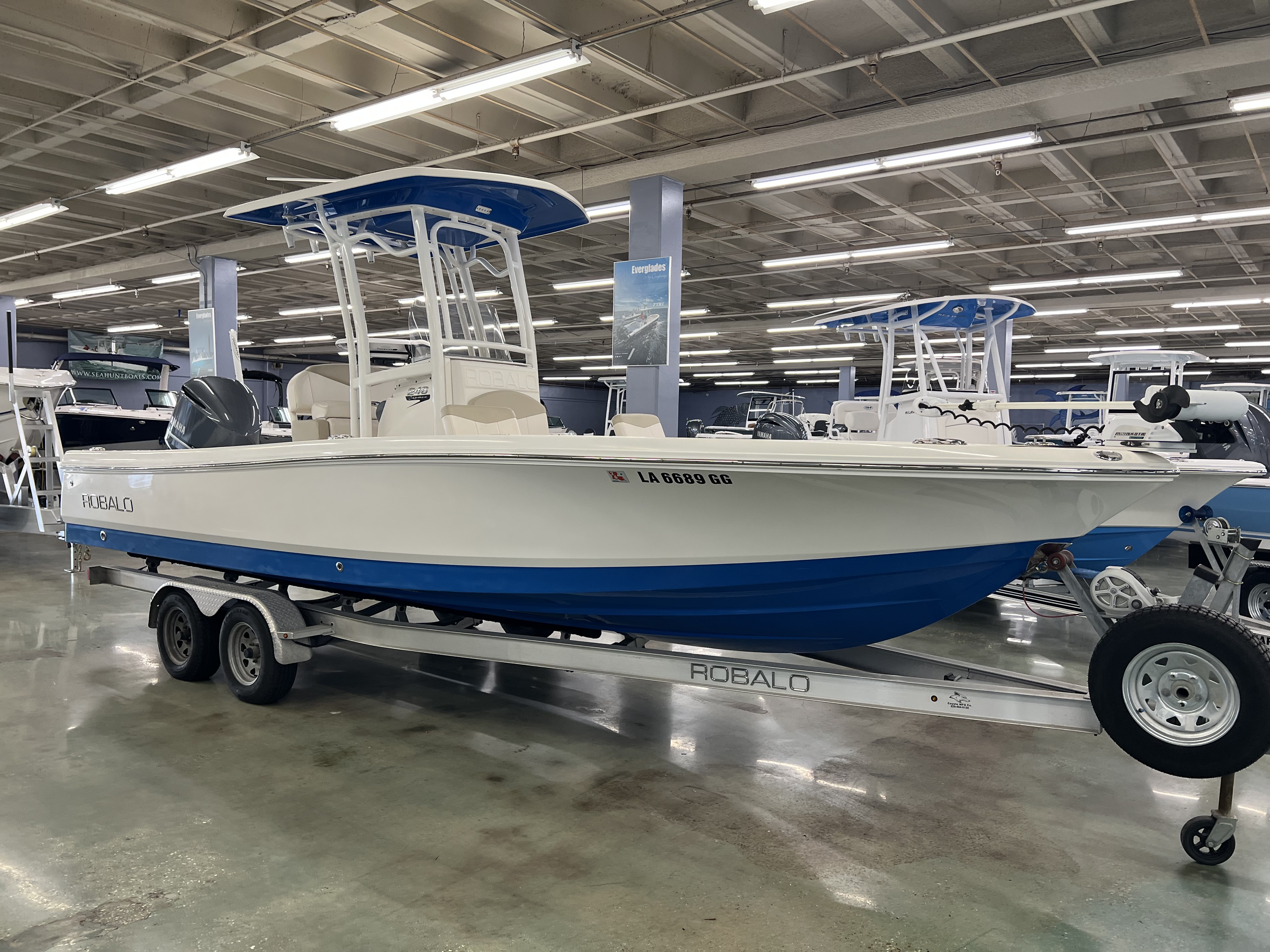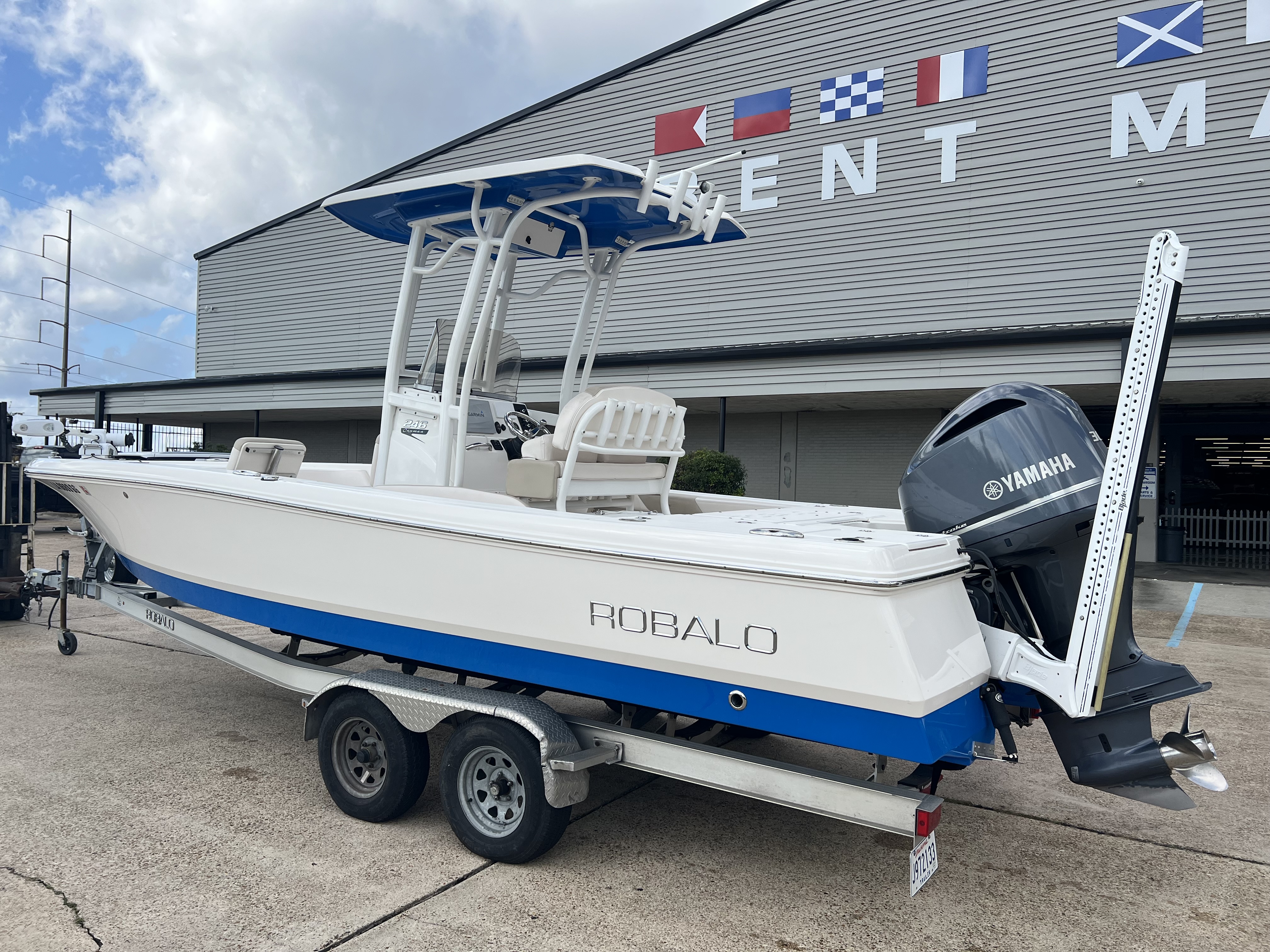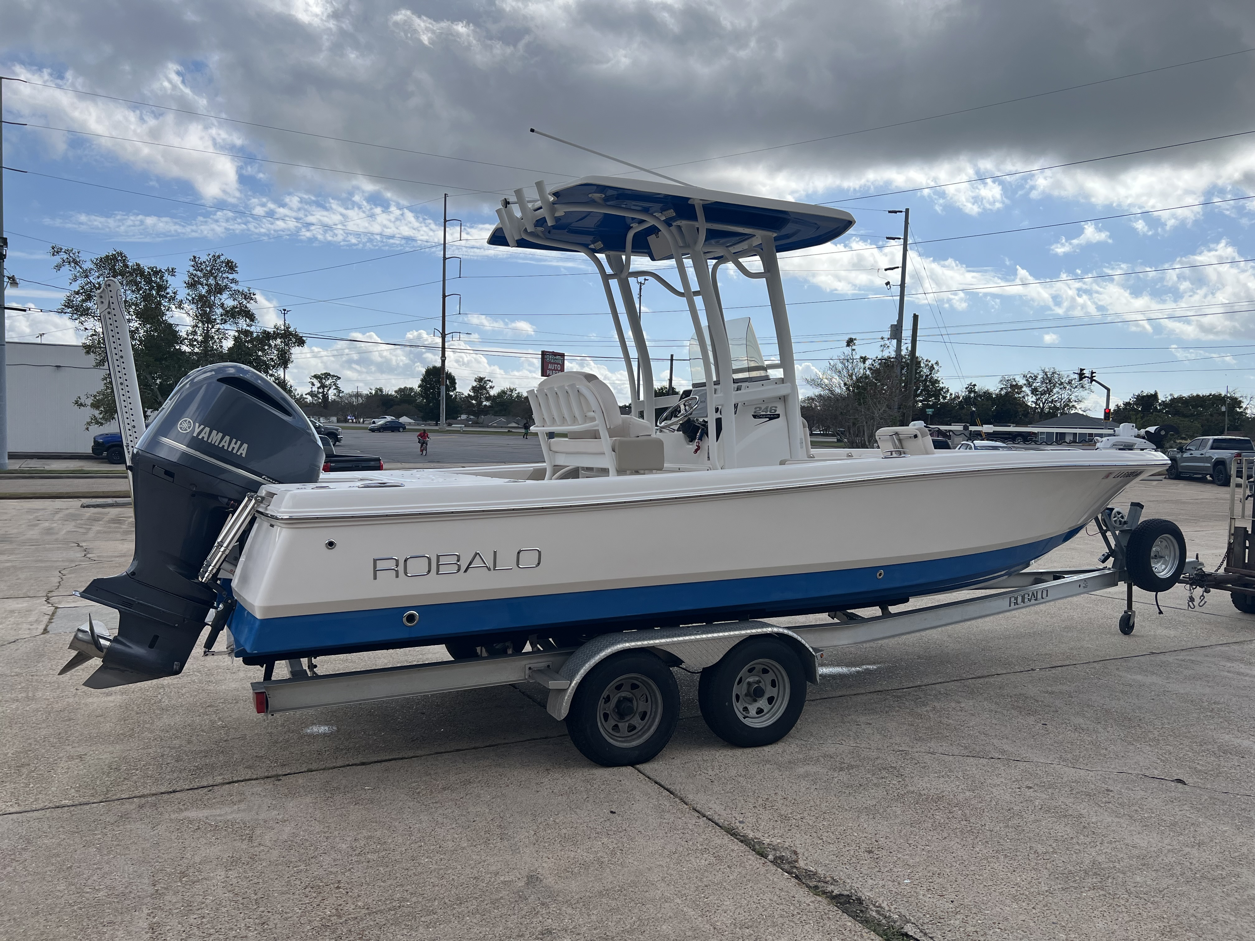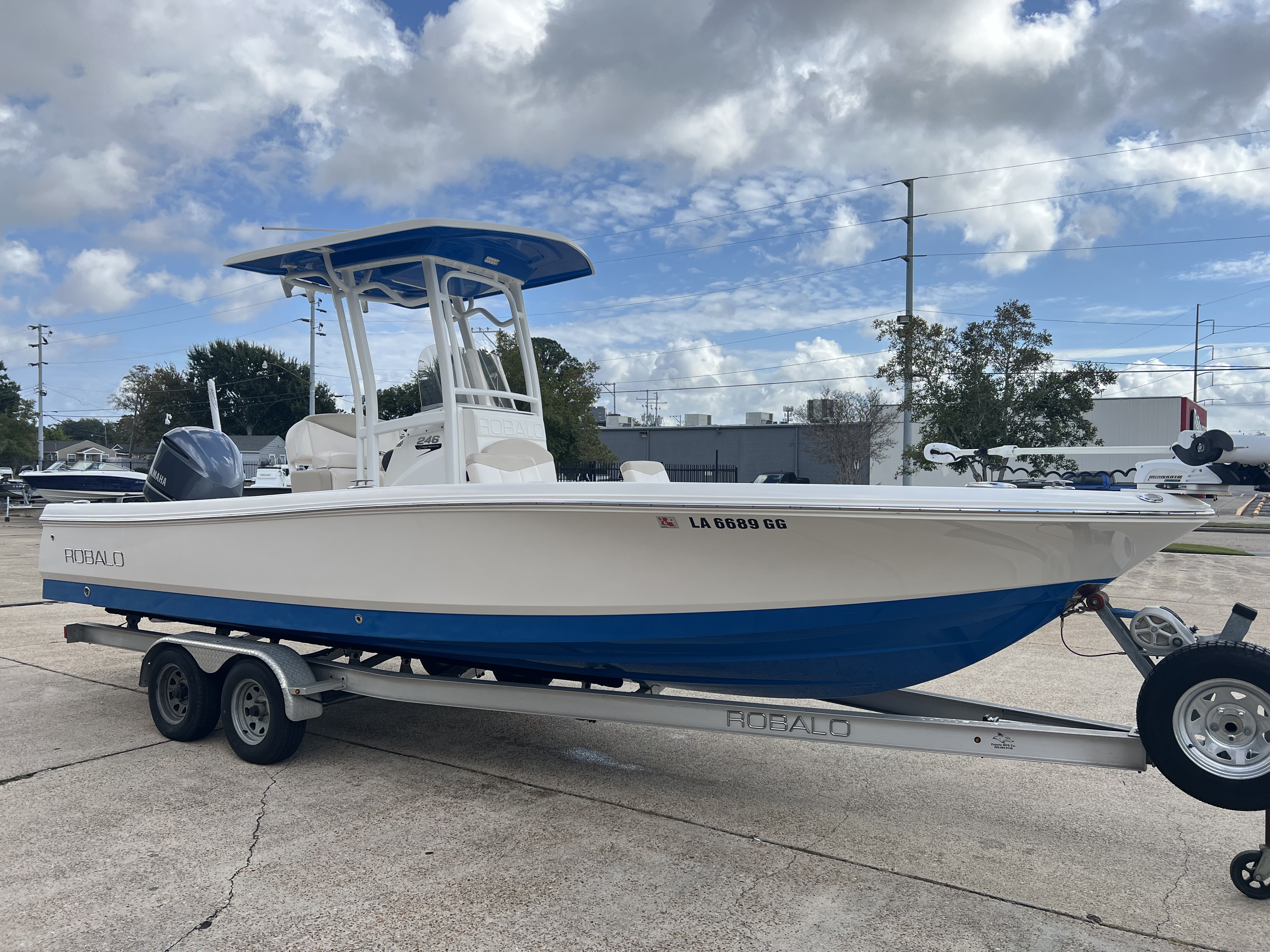This 2017 Robalo 246 Cayman is being offered for sale with the tandem axle aluminum trailer shown. This boat is powered to the max with a Yamaha 300 four stroke with only 199 hours! All service worked is up to date and the annual maintenance has just been done (11/18/25). This boat is well equipped with Garmin GPS and VHF and has Minn kota I -Pilot trolling motor with charger. It also includes trim tabs and power pole and everything is operational and ready for a fishing trip or family cruise this weekend! Financing available! 504-737-2722