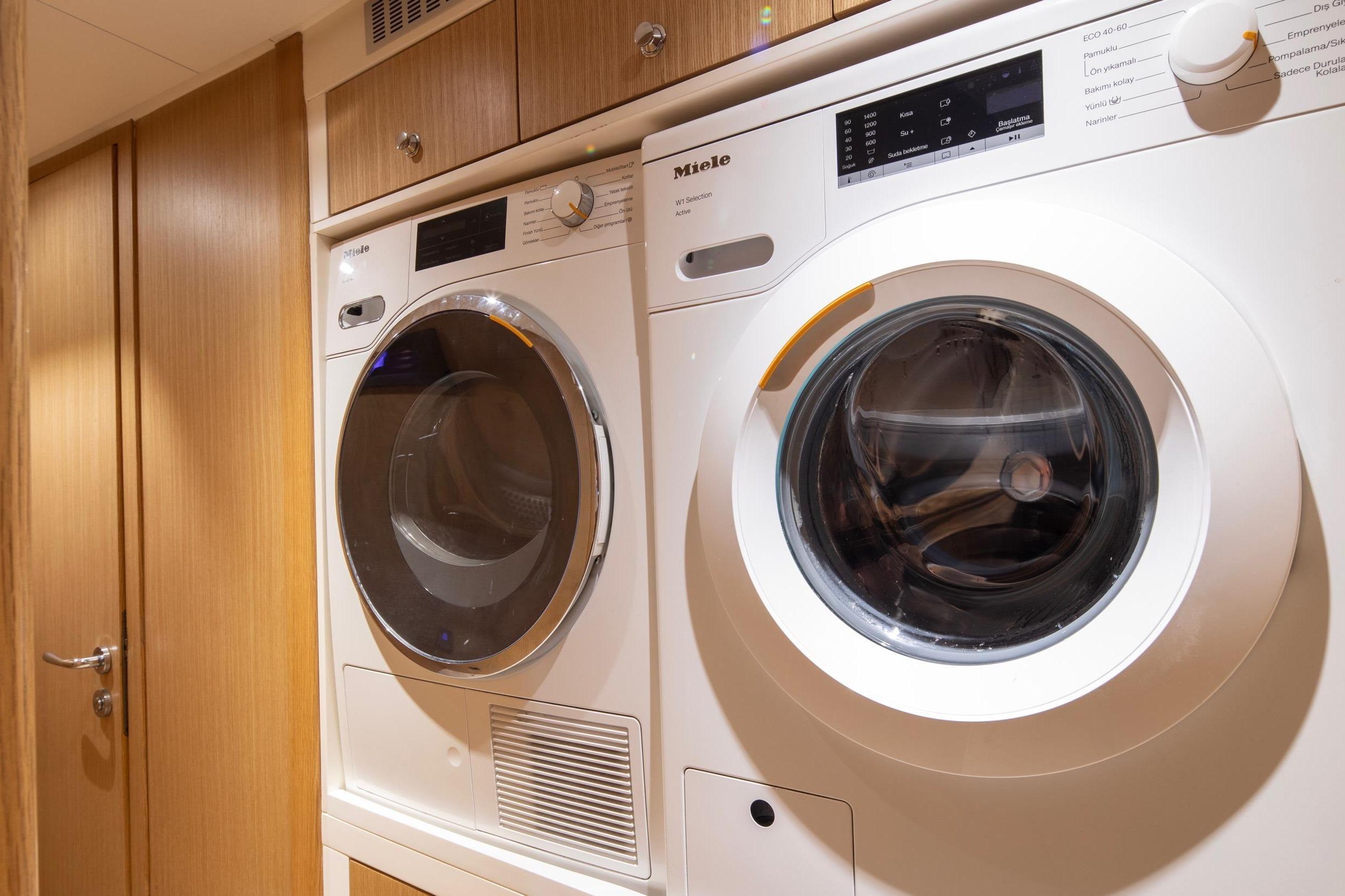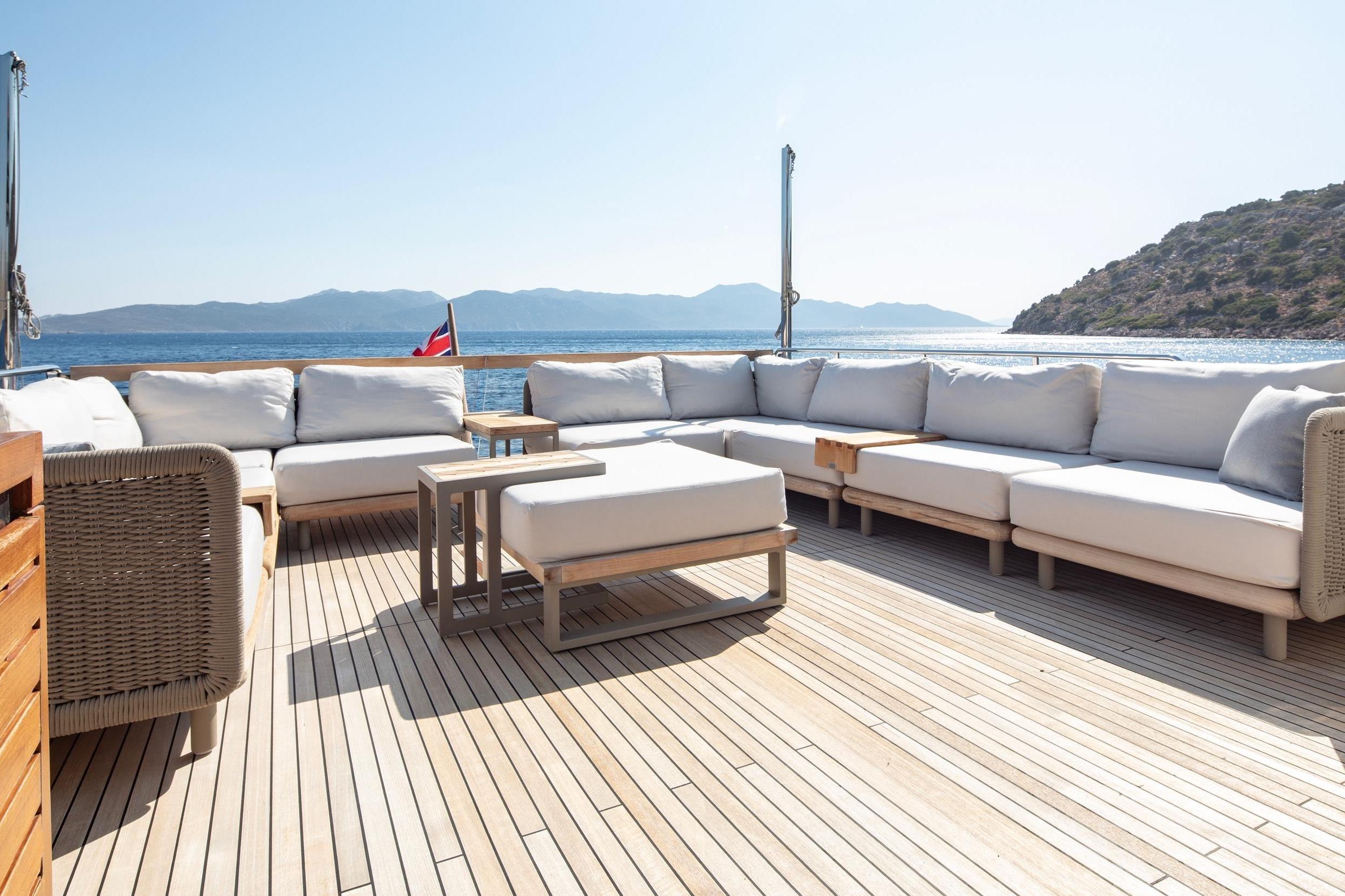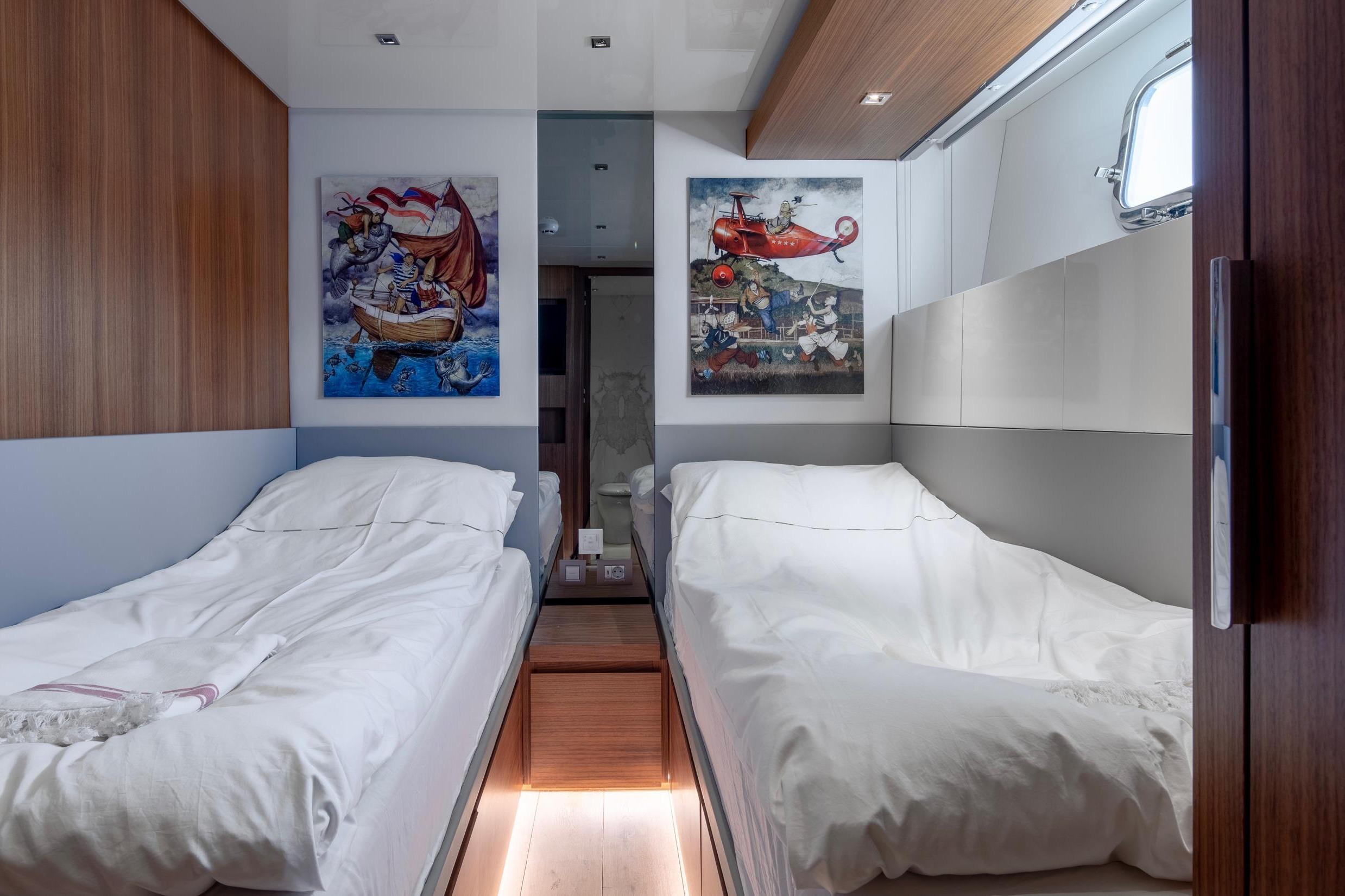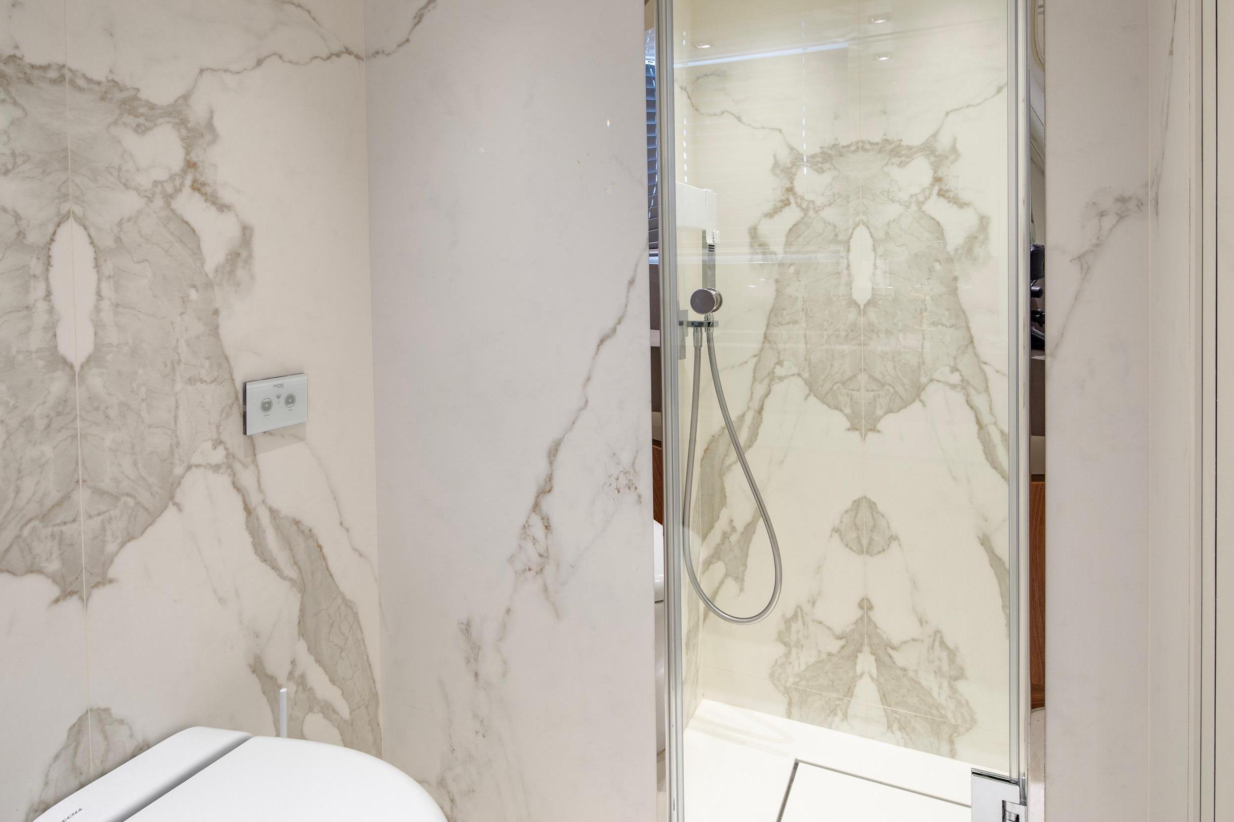 Sanlorenzo’s SL86 pairs unmistakable Italian lines with a fast, confident ride. Twin MTU shaft drives push her to 32 knots (27-knot cruise), while CMC fin stabilization and bow/stern thrusters keep motion composed and maneuvers precise. Power management and hotel loads are supported by twin 27 kW Onans, dual 600 L/h watermakers, and a Mastervolt battery suite, cruising infrastructure that’s built for extended time aboard.