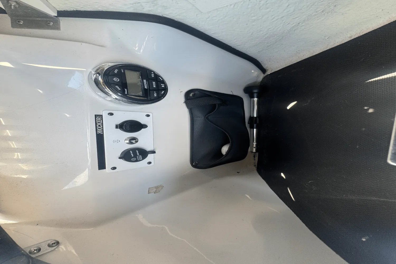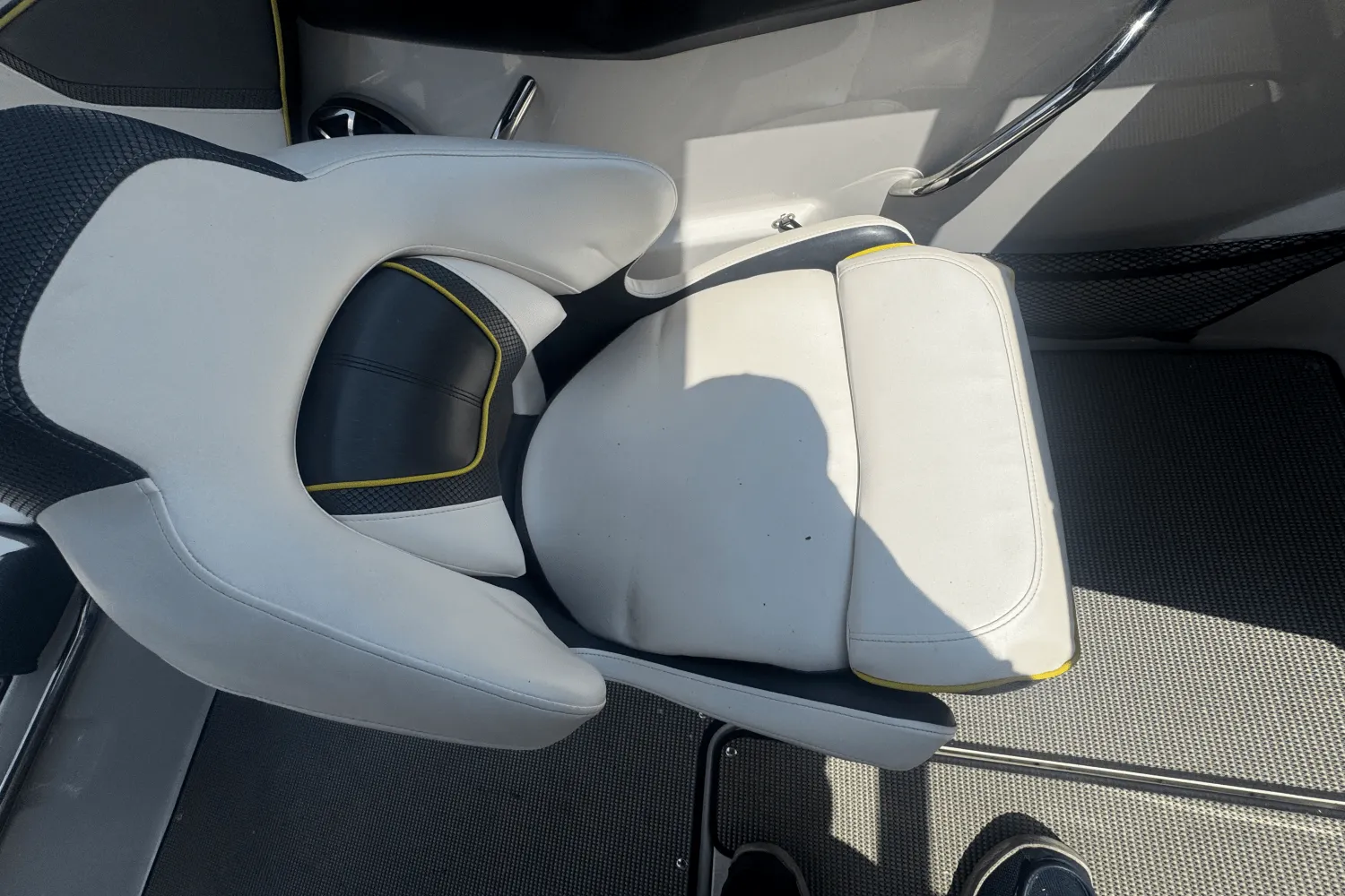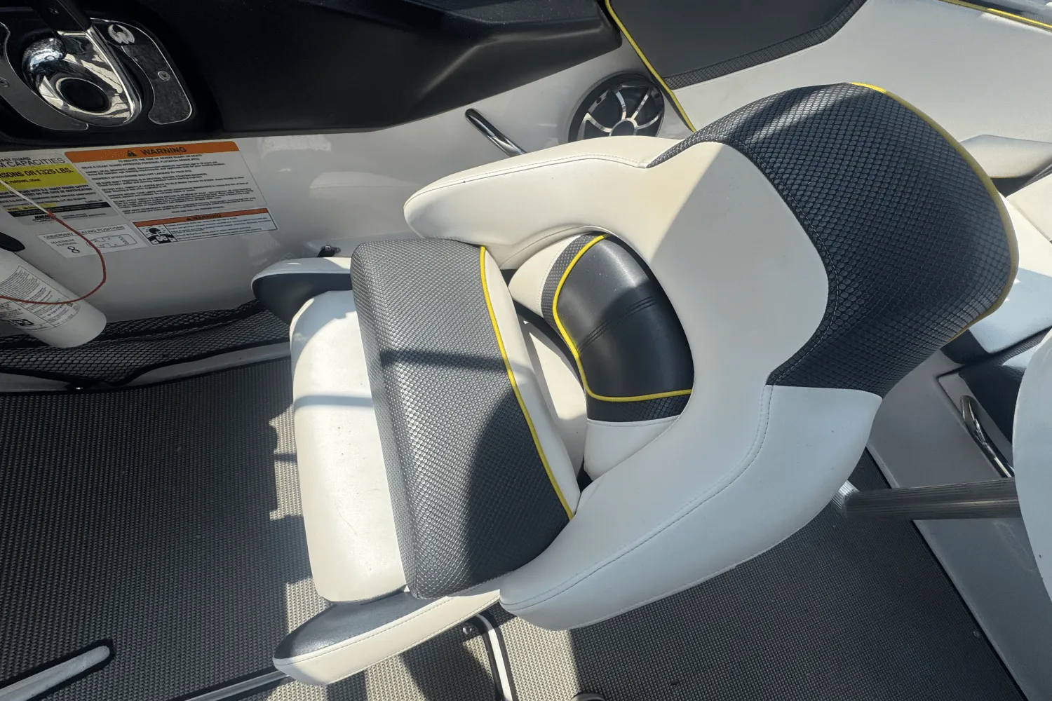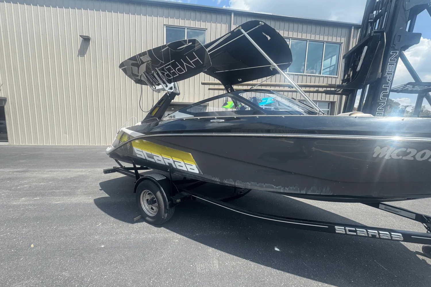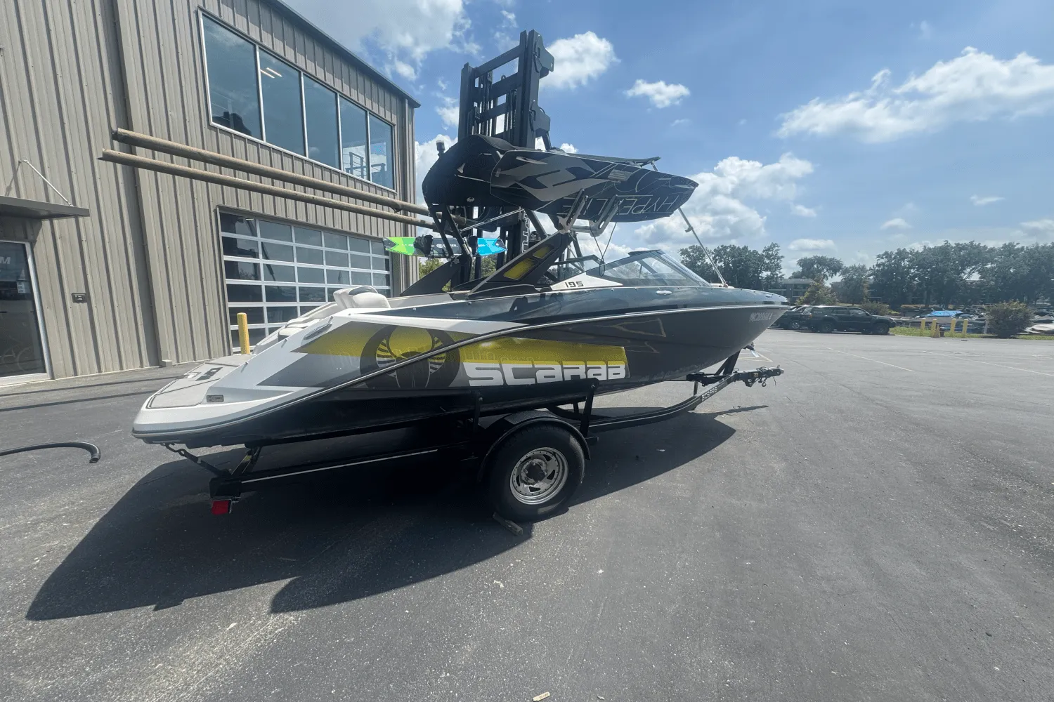 Enter the Scarab 195 featuring Premium upholstery with metallic accent and chrome logos. Get comfortable in the Scarab® exclusive Versa-Lounge and the Double ComfortRide captain’s chairs. Customize your color with black or blue color options, and hold on tight while cruising with the 200 HP Rotax® engine. Get the Scarab custom trailer with chrome wheels & swing-away tongue.