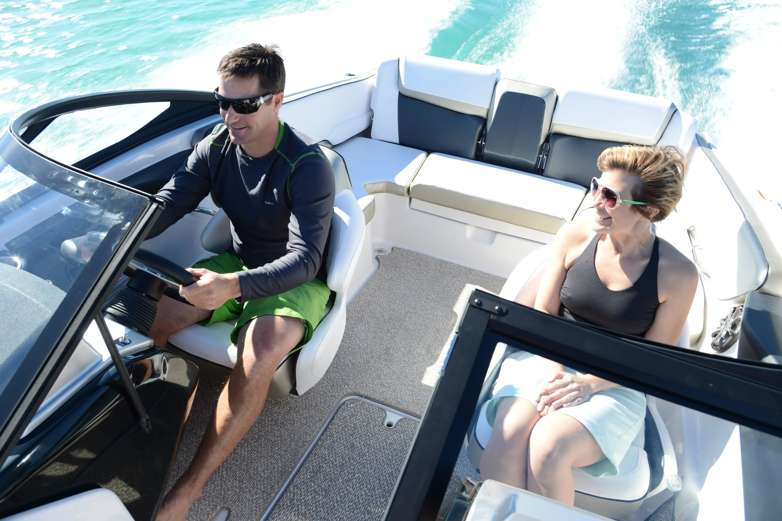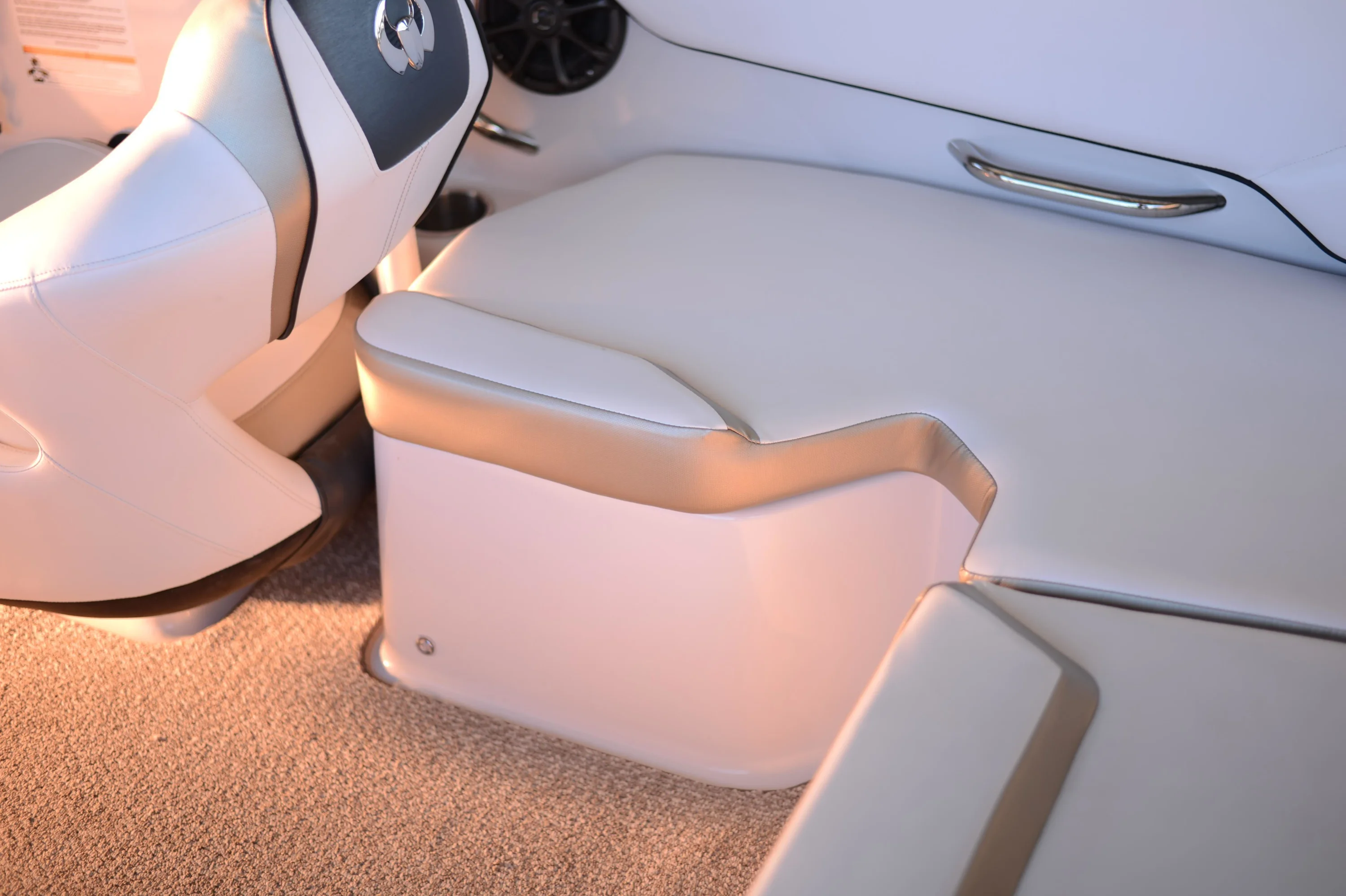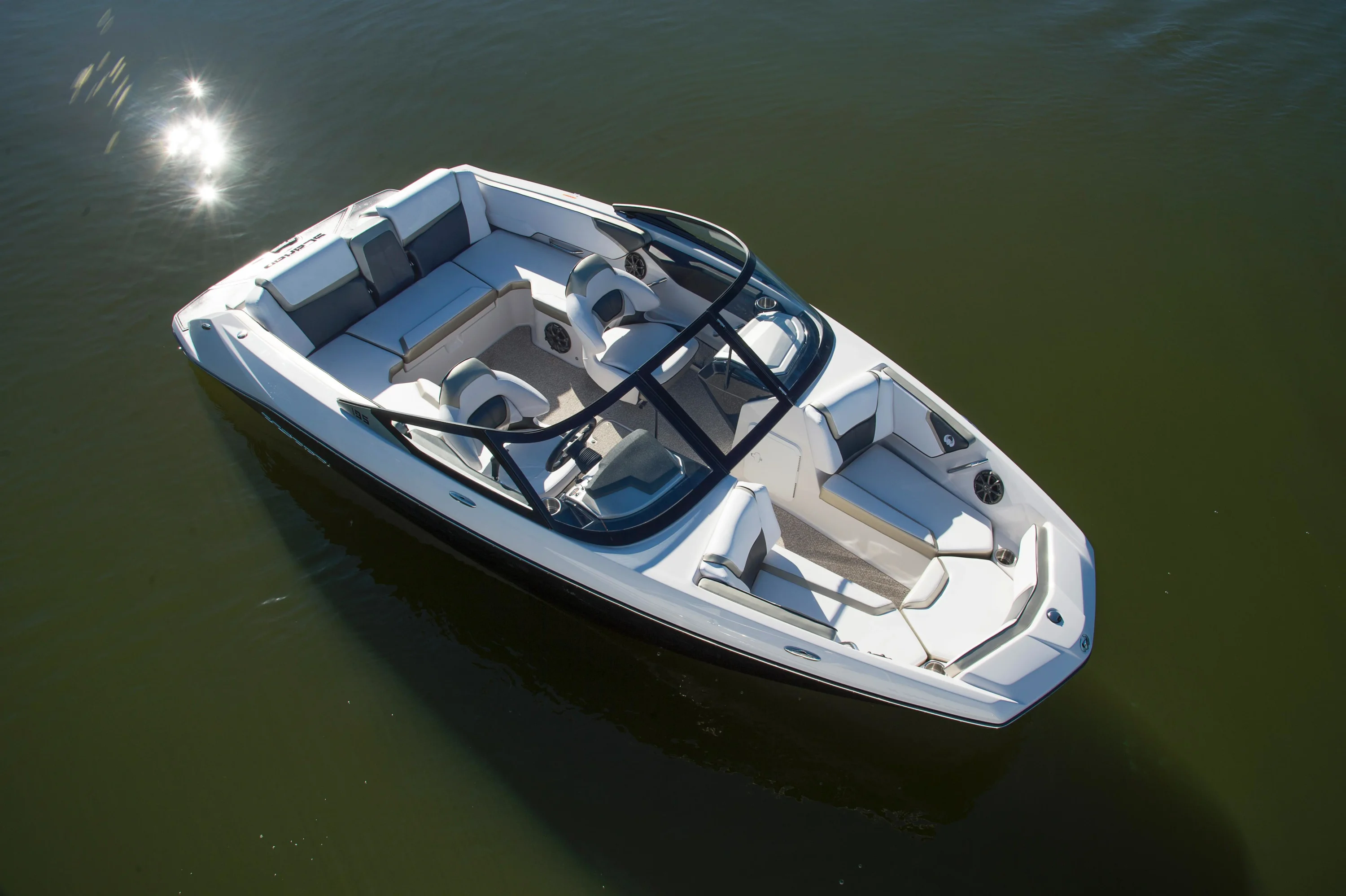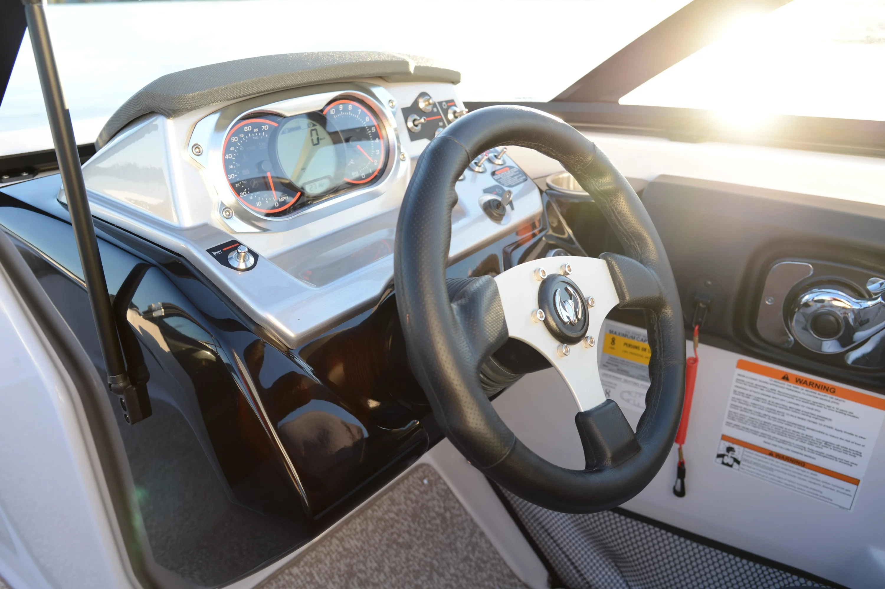 Includes features from 195 plus additional functionality with flip-up bolster seats, snap-in carpet, bimini top and stainless-steel cup holders and grab rails. Turn up the tunes with the stereo remote located on helm, and let the good times roll with an upgraded 250 HP Rotax engine! Explore new places with increased maneuverability and shallow water access. So whether you are new to boating or ready to kick your experience up a notch, the Scarab 195 HO is for you.