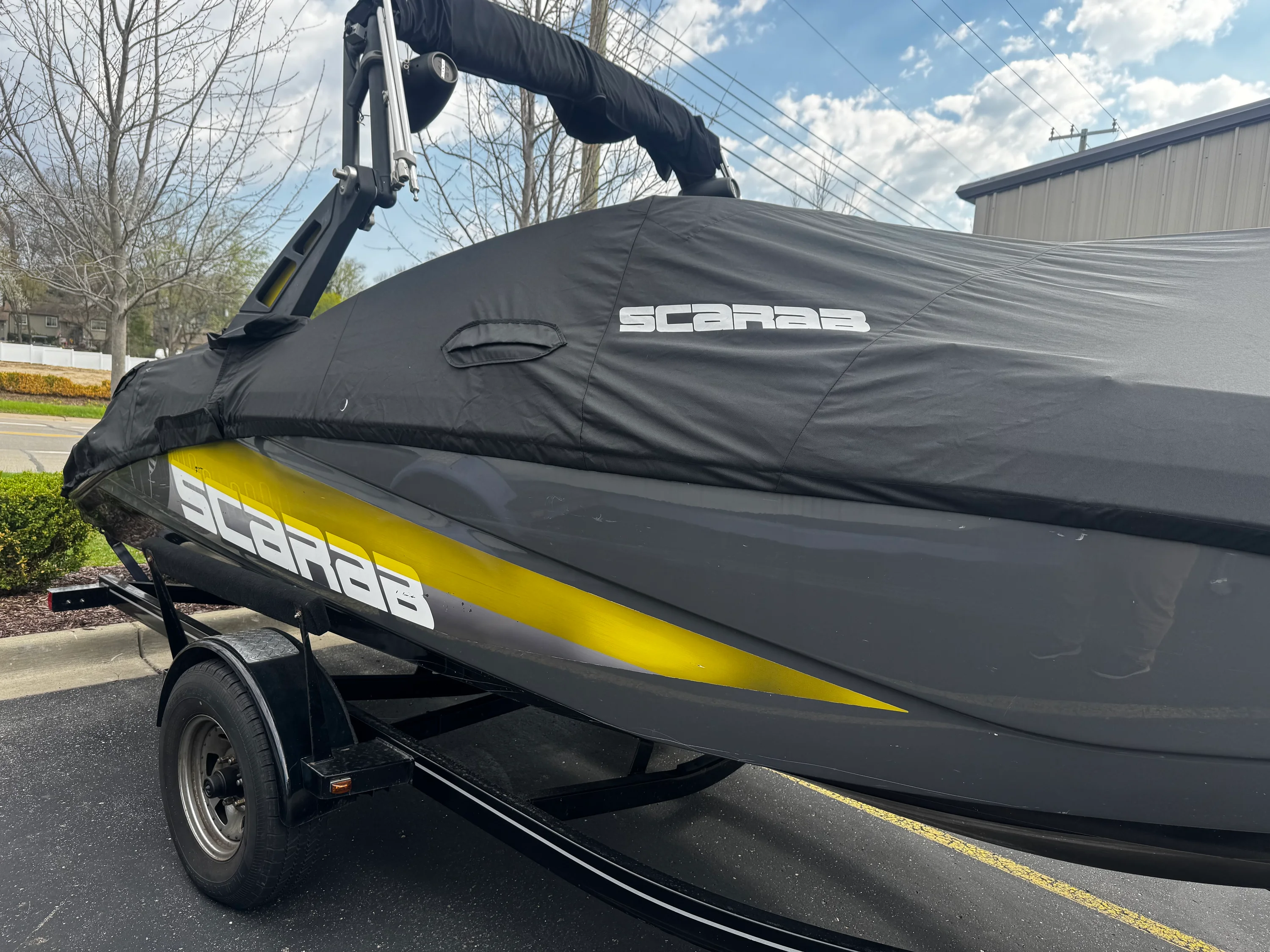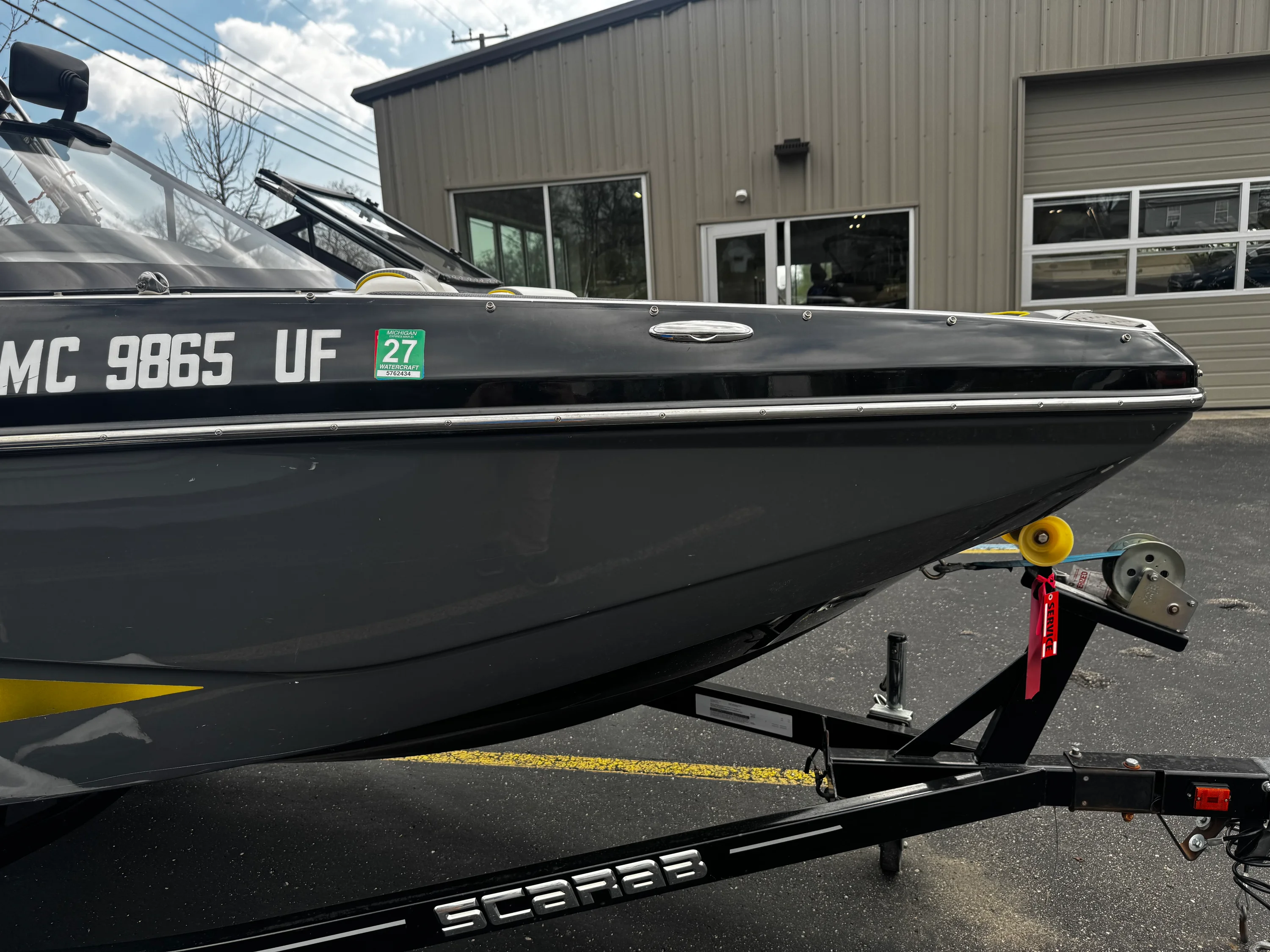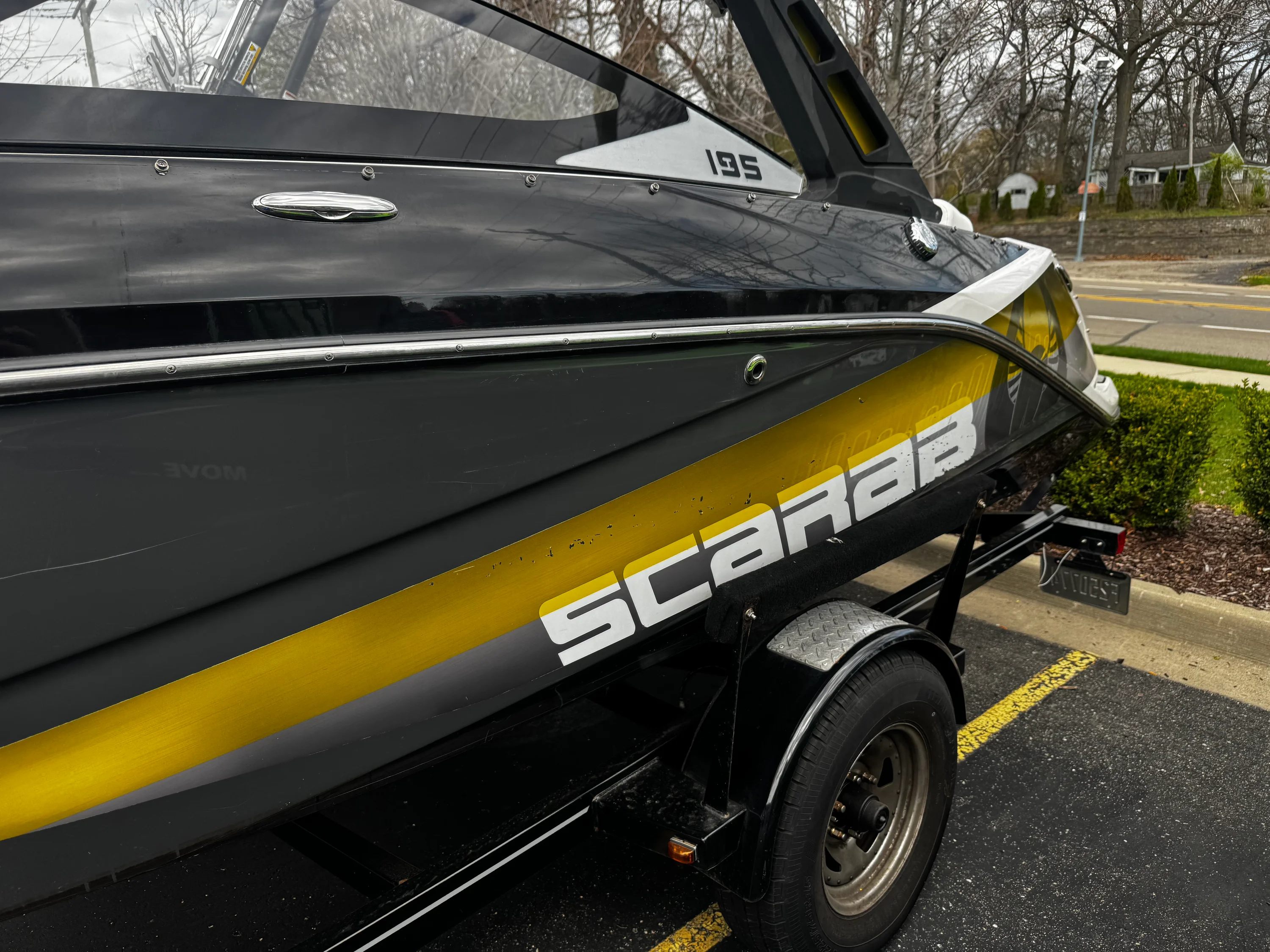Includes features from 195 plus additional functionality with flip-up bolster seats, snap-in carpet, bimini top and stainless-steel cup holders and grab rails. Turn up the tunes with the stereo remote located on helm, and let the good times roll with an upgraded 250 HP Rotax engine! Explore new places with increased maneuverability and shallow water access. So whether you are new to boating or ready to kick your experience up a notch, the Scarab 195 HO is for you. This boat is ready for new fun, fast, and exillirating experiences! Come check it out today at SkipperBud Cass Lake in Waterford, MI!