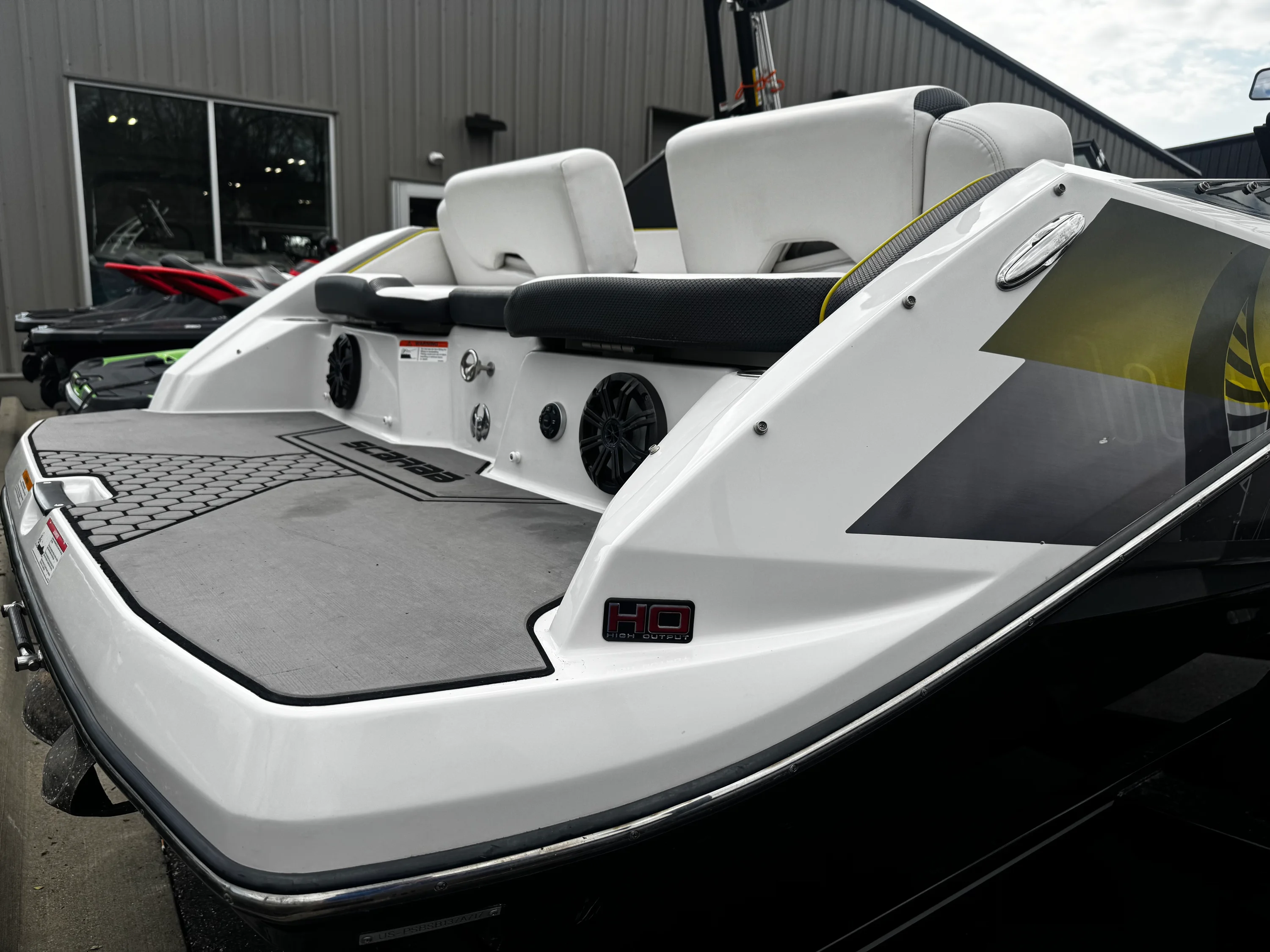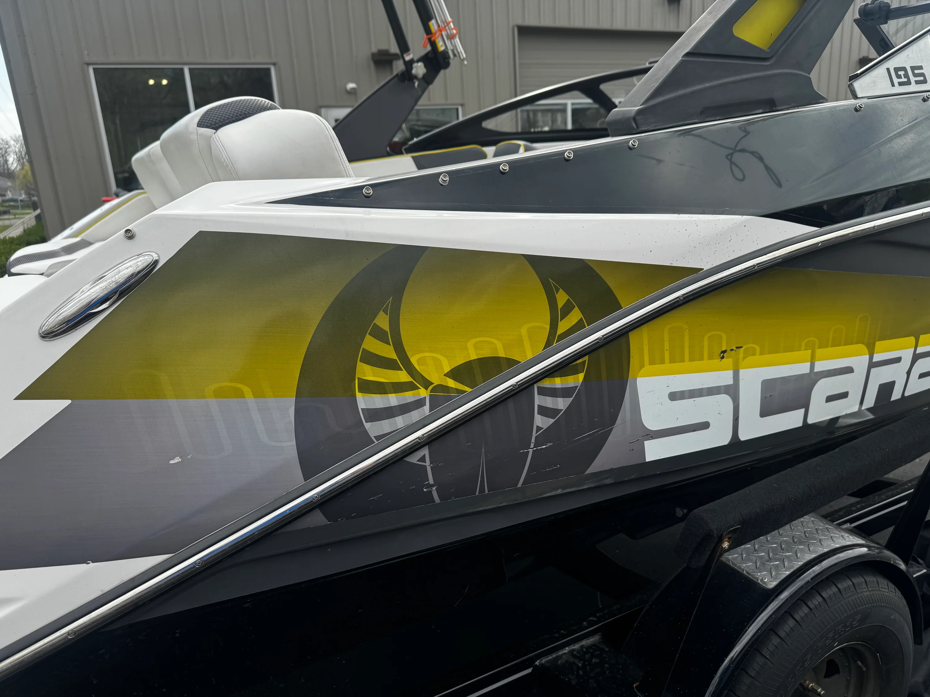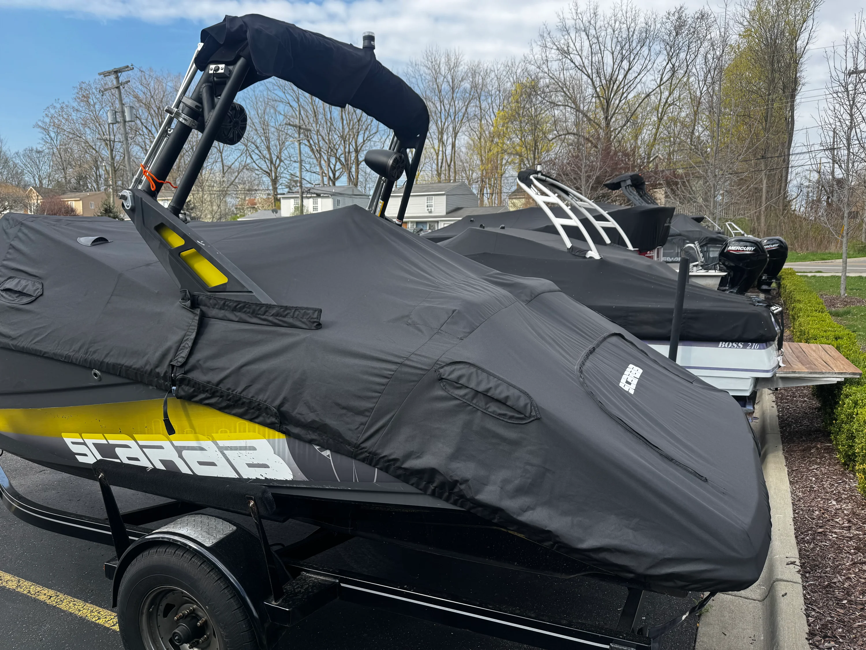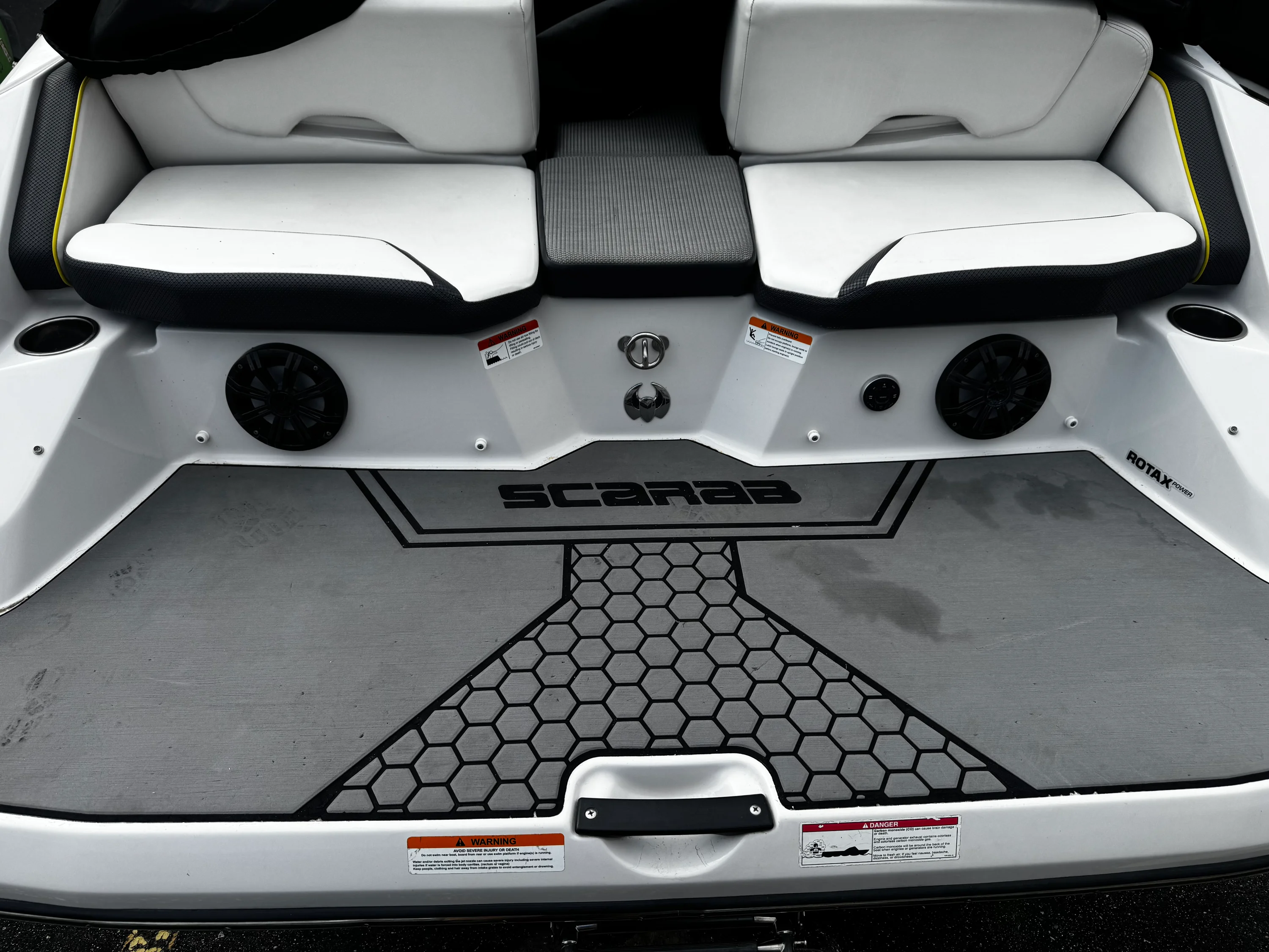 Includes features from 195 plus additional functionality with flip-up bolster seats, snap-in carpet, bimini top and stainless-steel cup holders and grab rails. Turn up the tunes with the stereo remote located on helm, and let the good times roll with an upgraded 250 HP Rotax engine! Explore new places with increased maneuverability and shallow water access. So whether you are new to boating or ready to kick your experience up a notch, the Scarab 195 HO is for you. This boat is ready for new fun, fast, and exillirating experiences! Come check it out today at SkipperBud Cass Lake in Waterford, MI!