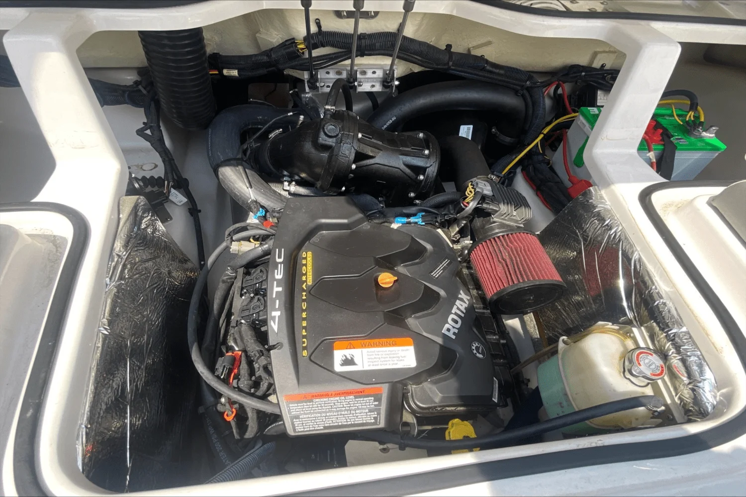 Includes features from 195 plus additional functionality with flip-up bolster seats, snap-in carpet, bimini top and stainless-steel cup holders and grab rails. Turn up the tunes with the stereo remote located on helm, and let the good times roll with an upgraded 250 HP Rotax engine! Explore new places with increased maneuverability and shallow water access. So whether you are new to boating or ready to kick your experience up a notch, the Scarab 195 HO is for you.
