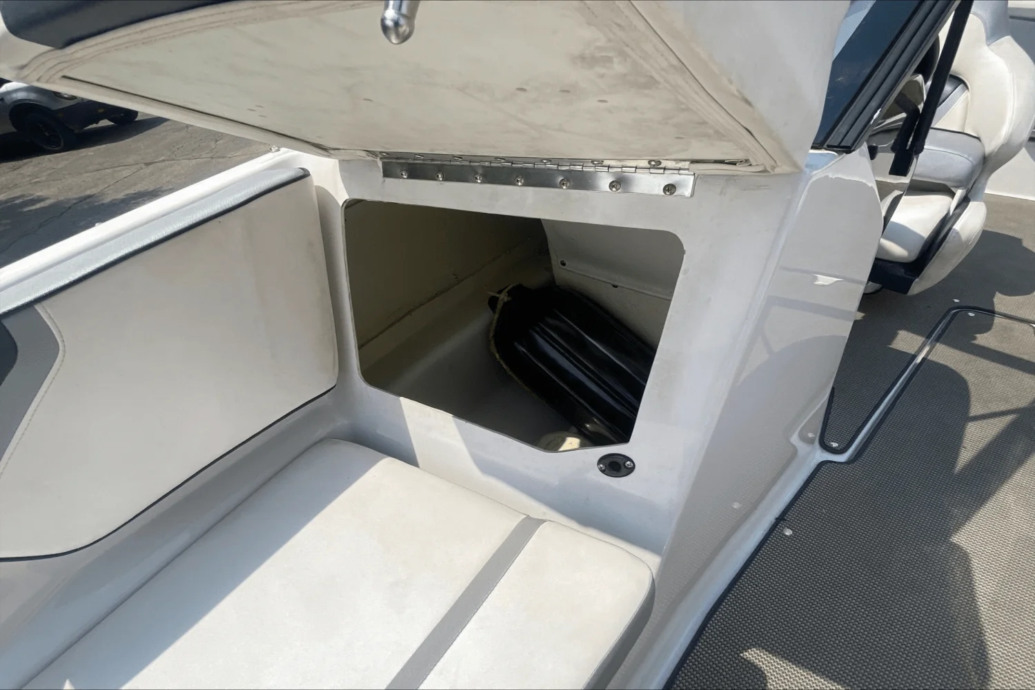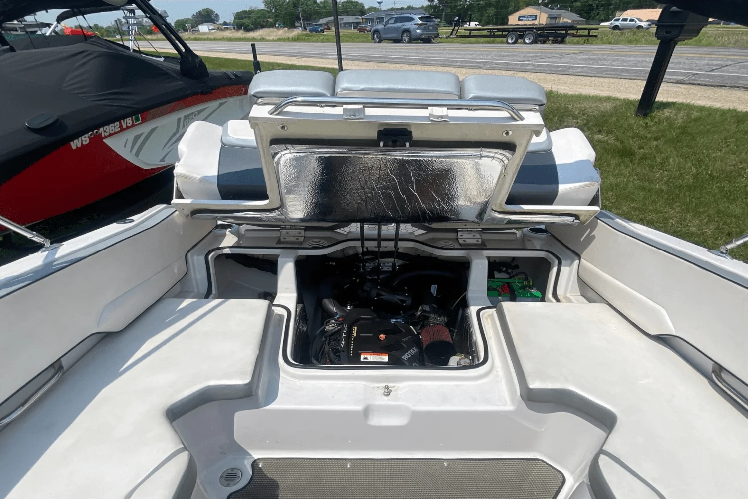 Includes features from 195 plus additional functionality with flip-up bolster seats, snap-in carpet, bimini top and stainless-steel cup holders and grab rails. Turn up the tunes with the stereo remote located on helm, and let the good times roll with an upgraded 250 HP Rotax engine! Explore new places with increased maneuverability and shallow water access. So whether you are new to boating or ready to kick your experience up a notch, the Scarab 195 HO is for you.