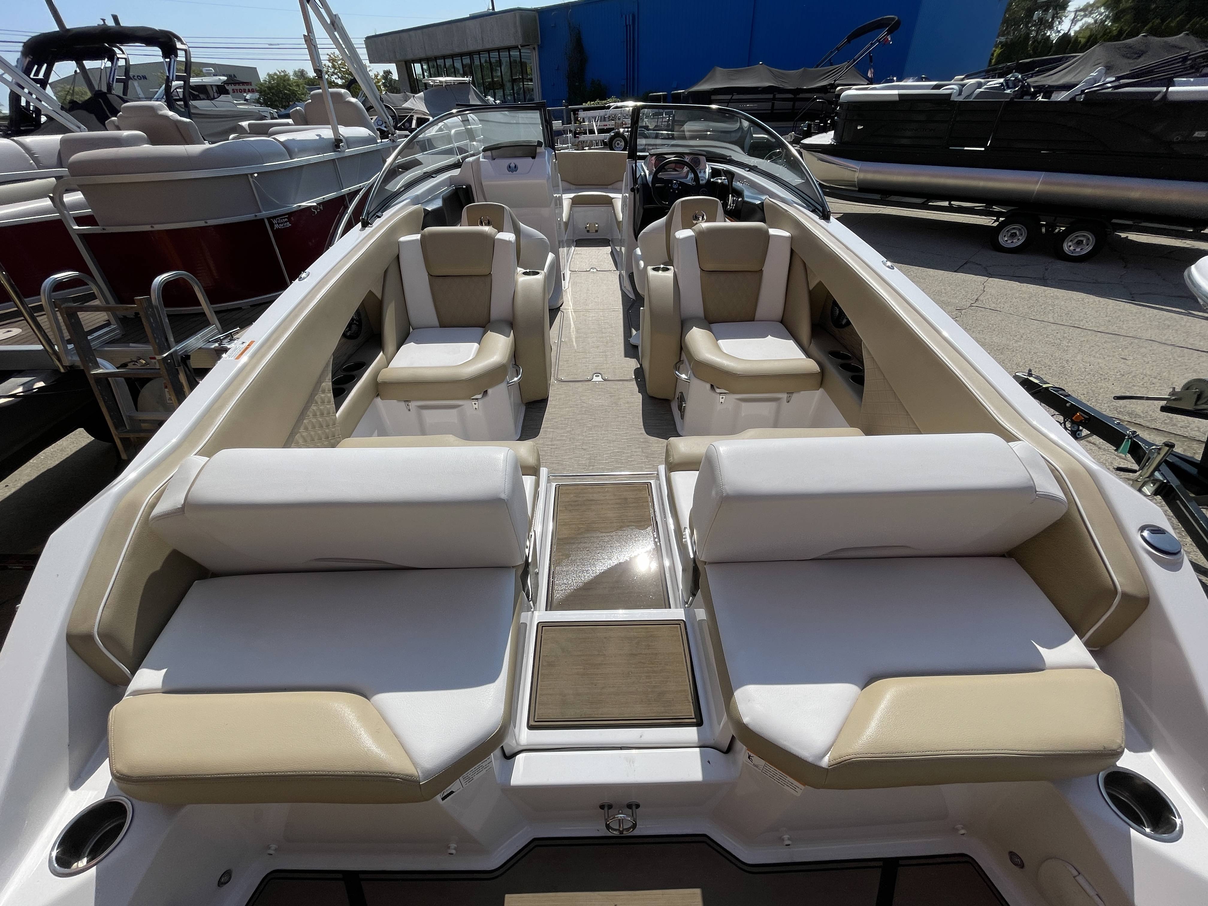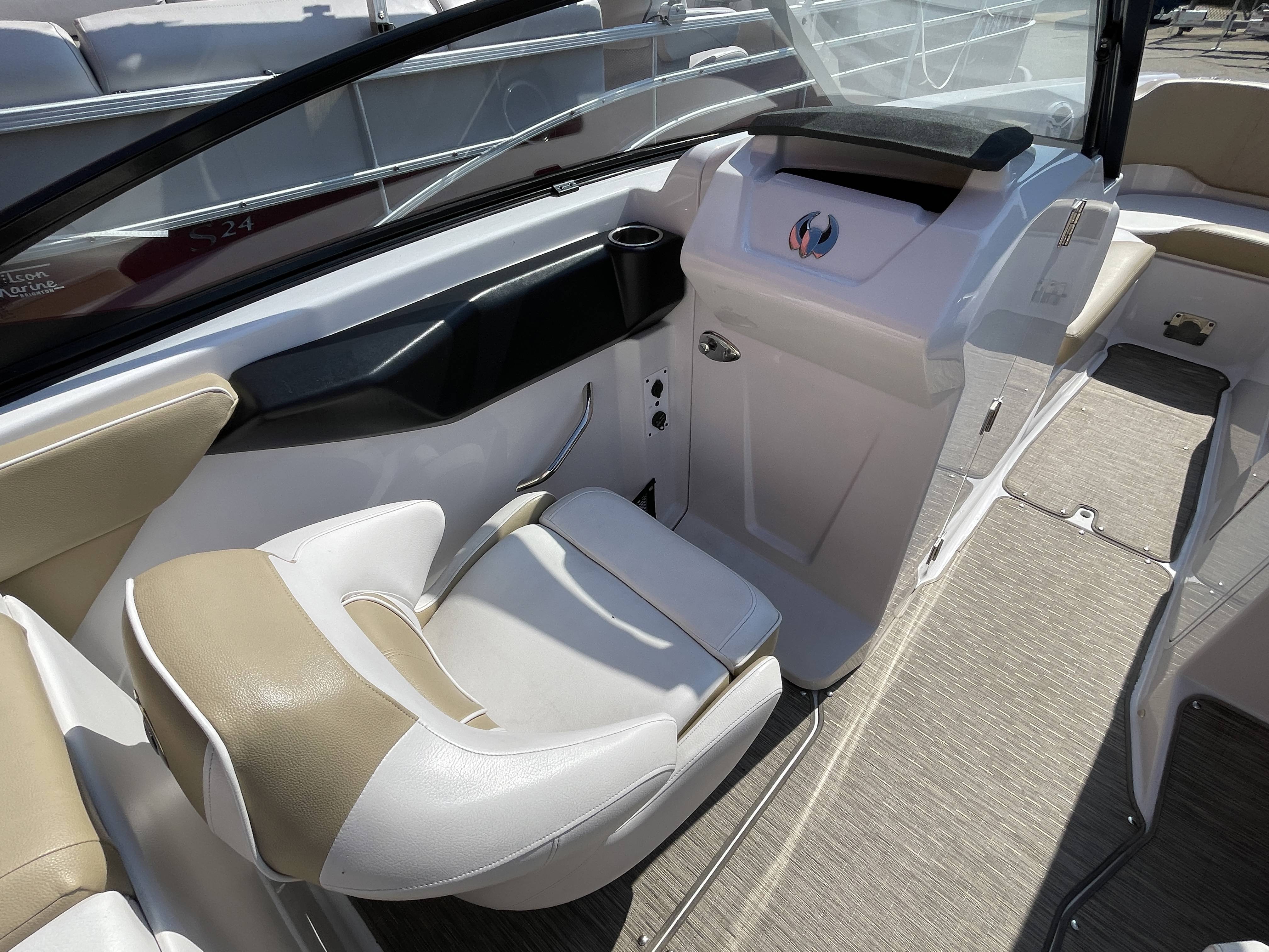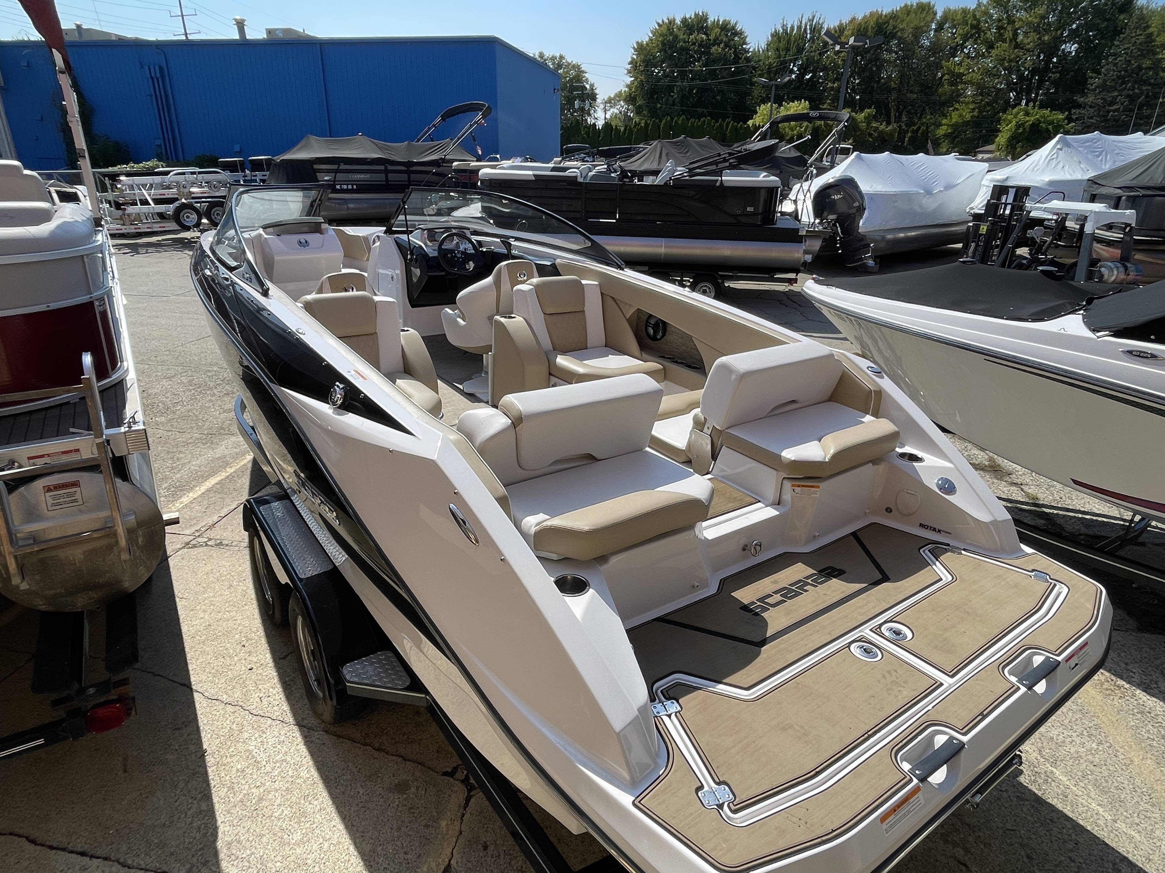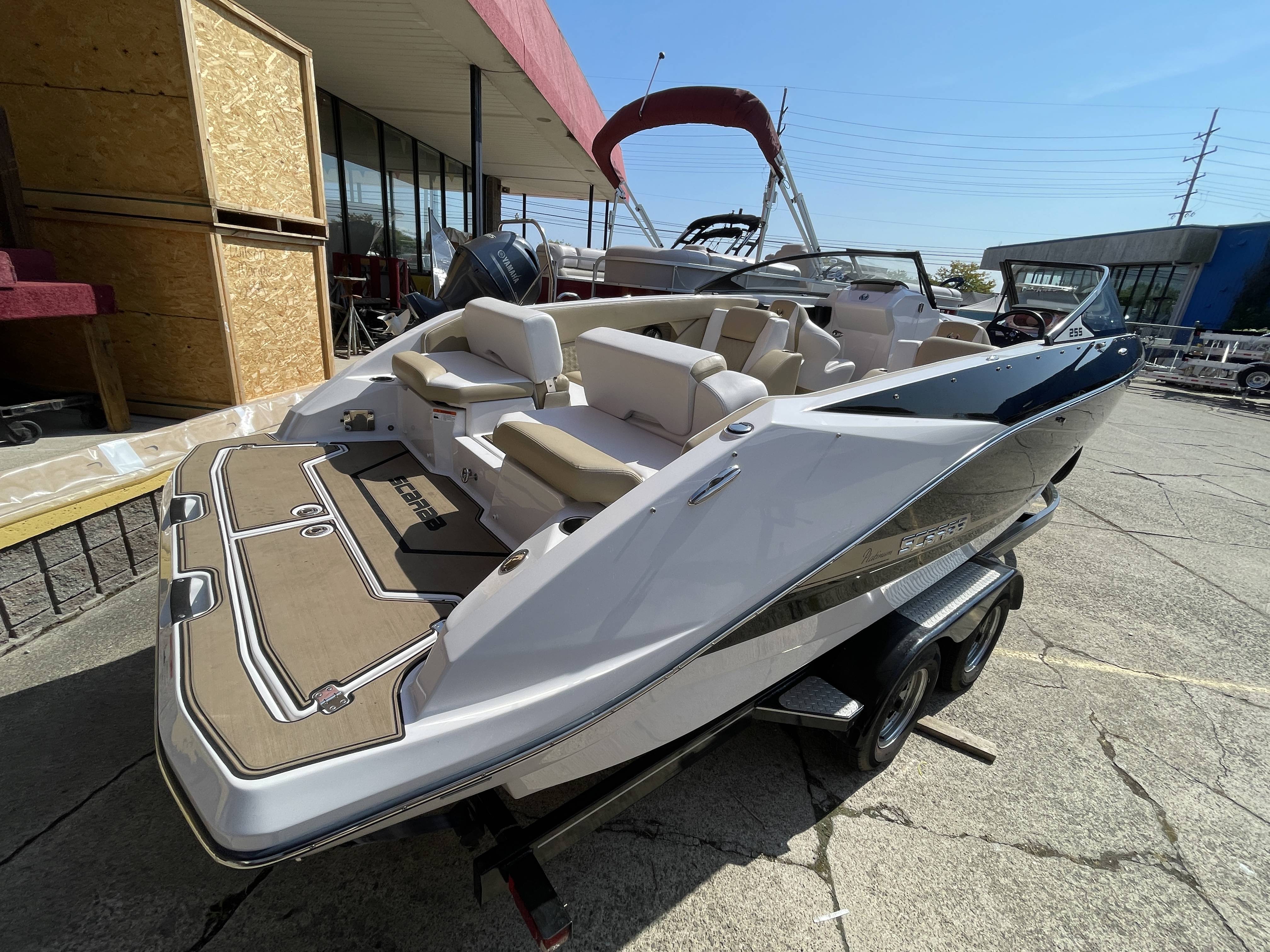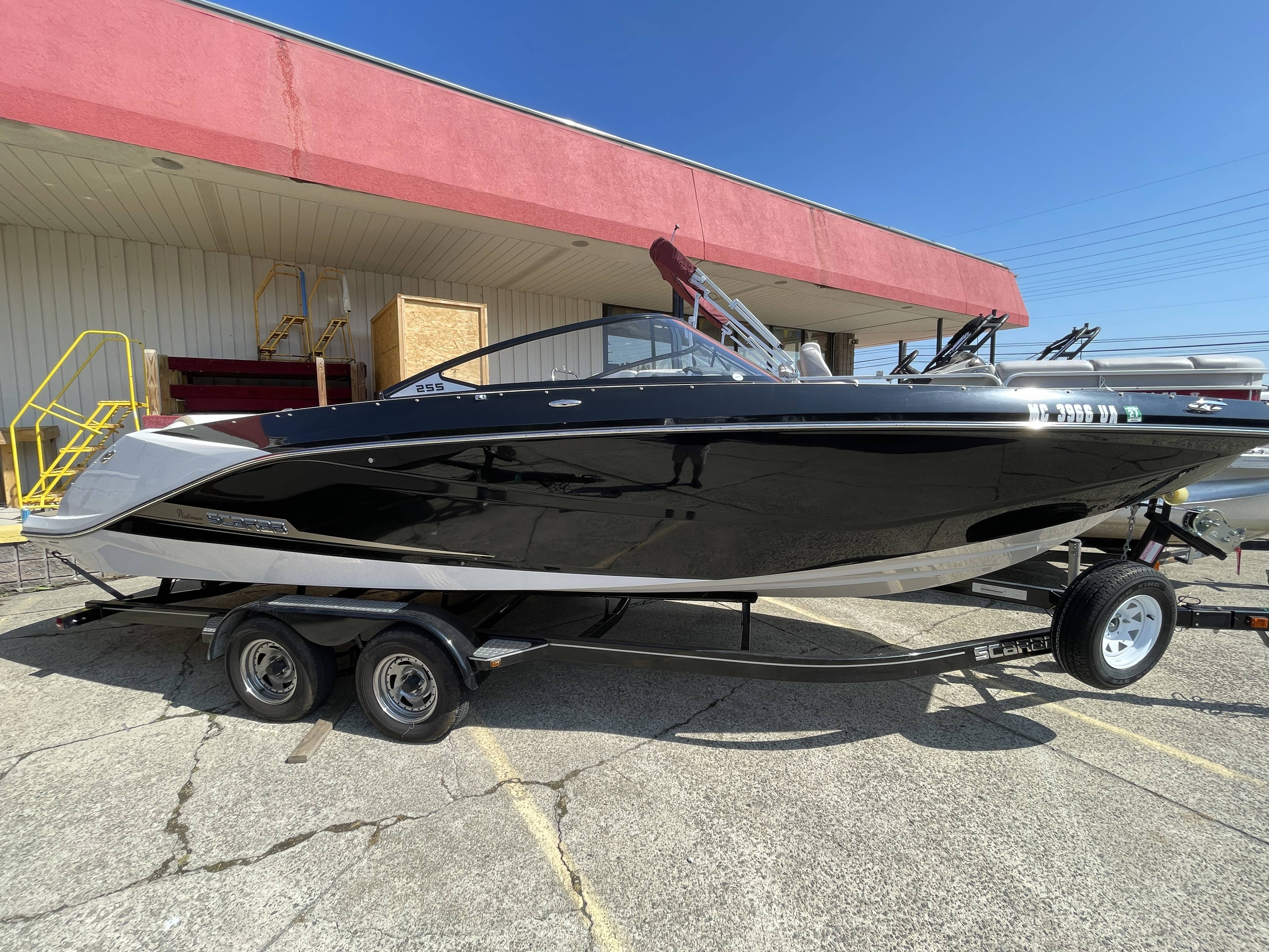 2017 Scarab 255 Platinum SE Jet boat with Twin Rotax 150 horsepower engines and tandem axle trailerBoat comes with bow and cockpit covers (not shown), bimini top (not shown), front and rear swim ladders, spare tire for trailer, head compartment with pump out toilet, snap-in marine woven flooring, bluetooth stereo with speakers and more!Call 800-875-2620 for additional information or to schedule an appointment to view the boat today!