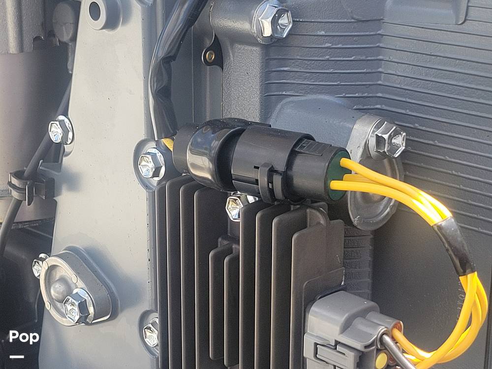 Aft, this particular boat comes with a removable backrest for the helm, ideal to enjoy the ride when cruising. All of the switches are well-labeled, and easy to operate. The gauges are easy to read as well as the GPS. There is also a battery charger to keep you full and ready.