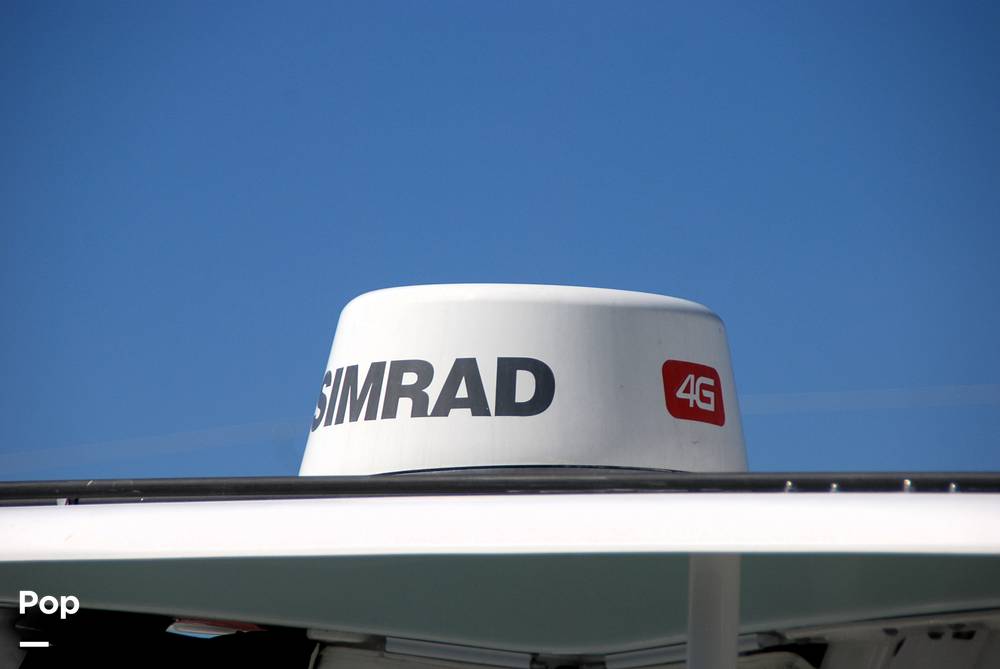 Features include a Fiberglass T-top. Minn Kota Ulterra trolling motor with iPilot and 112lbs thrust. Lewmar anchor windlass. Recessed trim-tabs. Dual SIMRAD GPS fishfinder/plotter, Auto Pilot, and SIMRAD 4g Radar. Lots of rod and tackle storage.