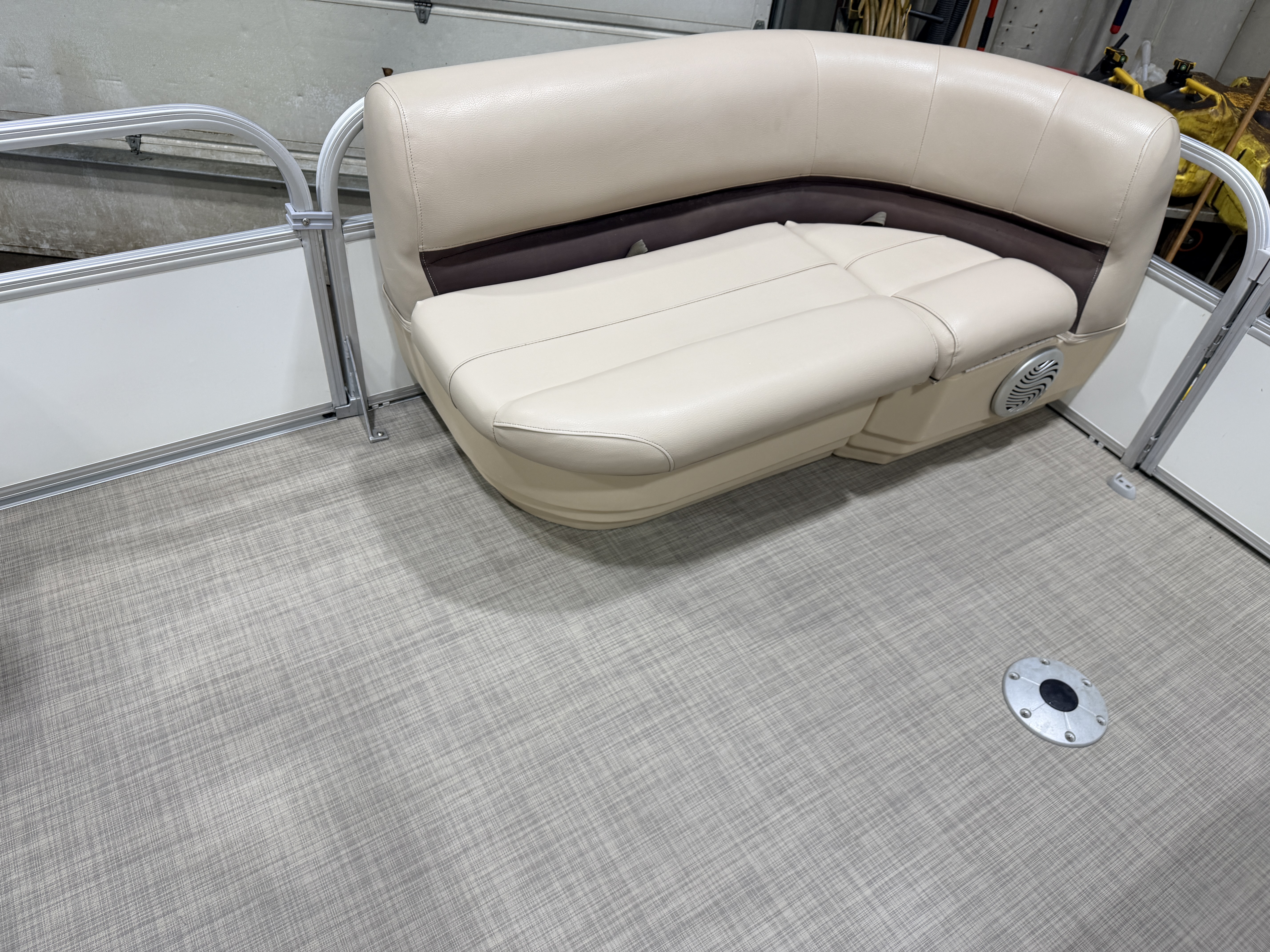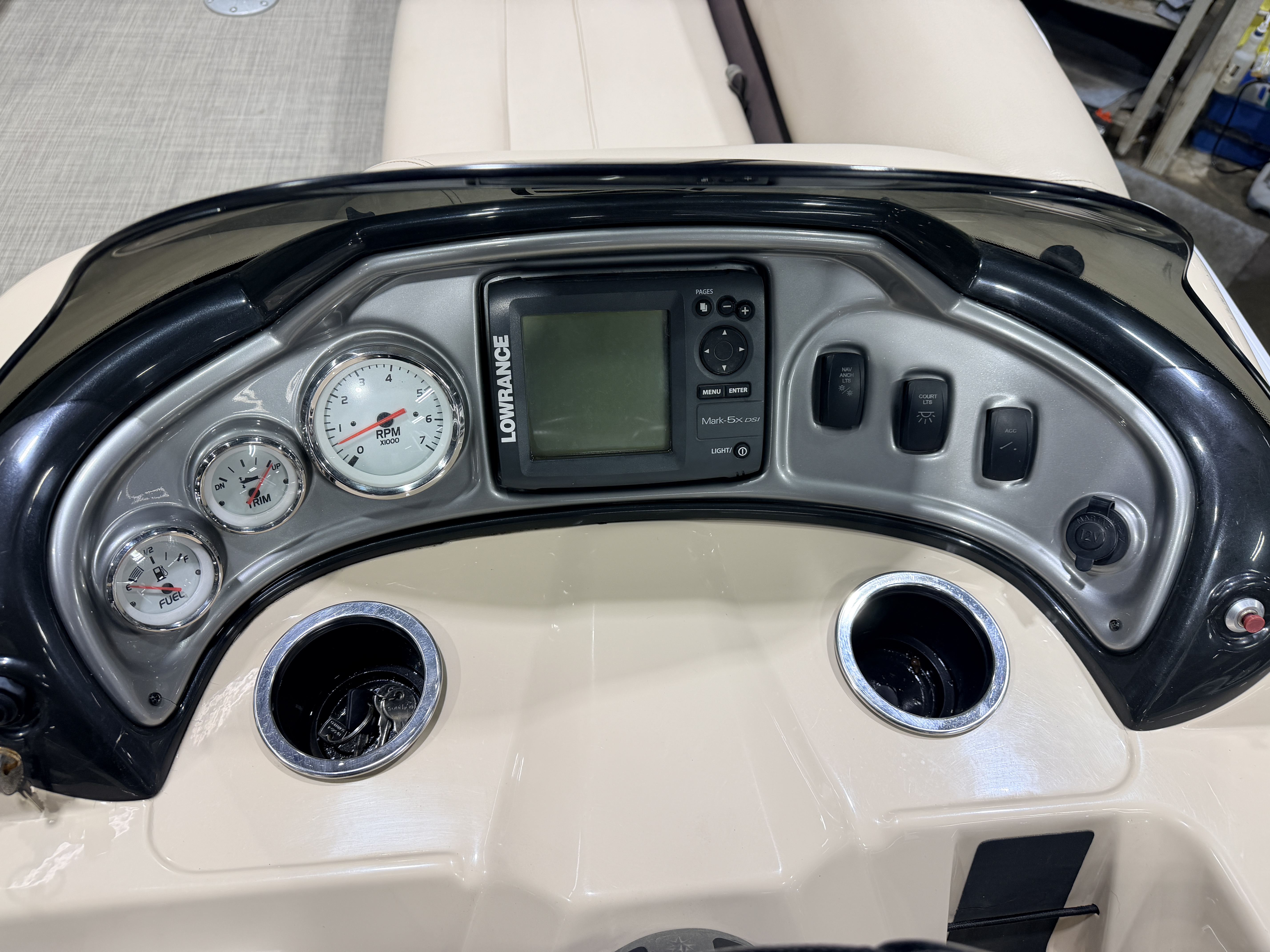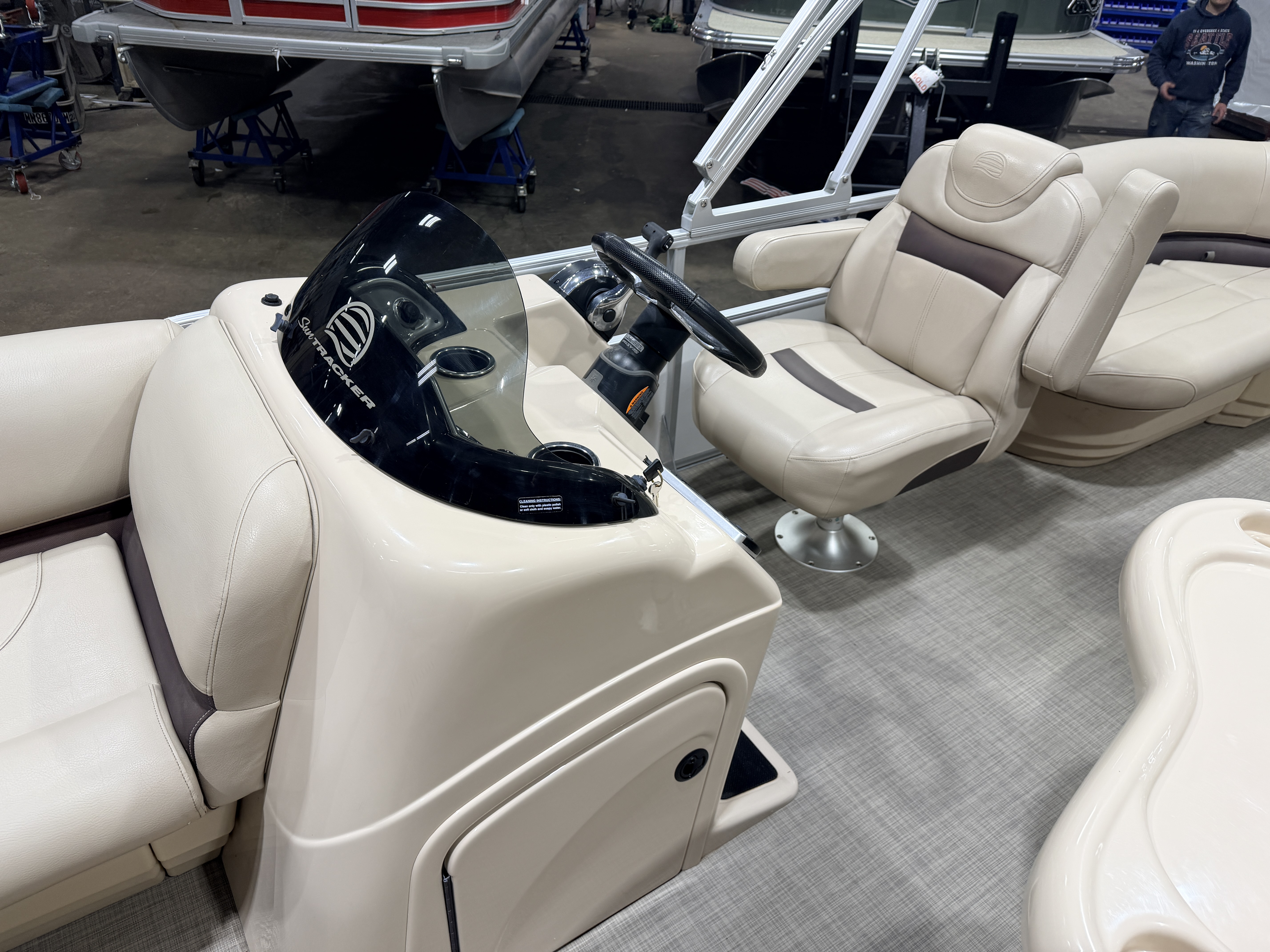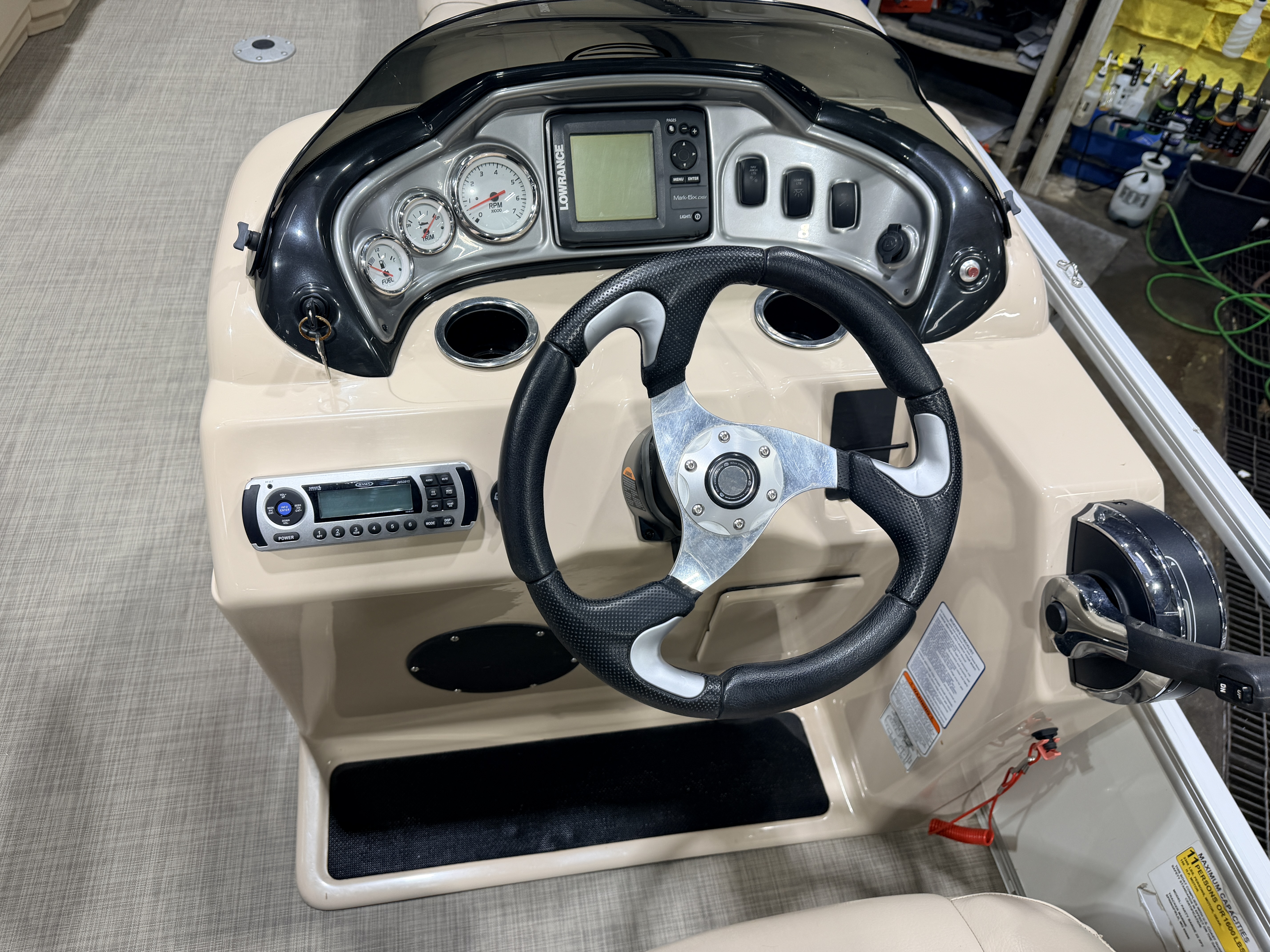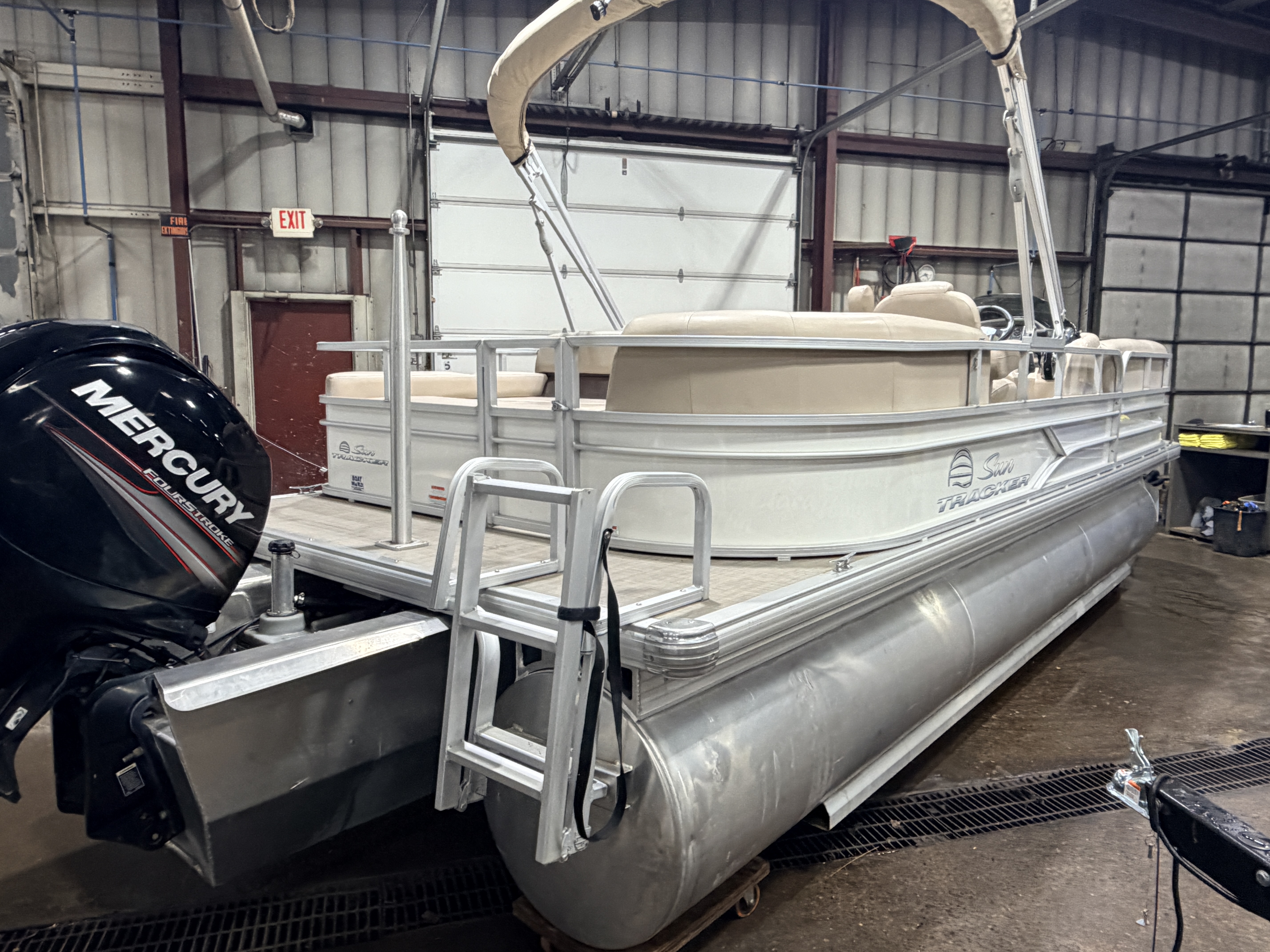2017 Sun Tracker Party Barge DLX XP3 Tritoon & 150HP Mercury 4-stroke. Layout has 2 chaise lounge in front, L-shaped & wrap around couch in rear and a rear lounge, captain's chair. Features. Vinyl flooring, Table with dual mounts, bimini top, under seat storage, Jensen Stereo, Tachometer, Fuel and Trim gauges, Lowrance GPS depth/fish finder, privacy/changing station, built-in ski/tow pylon, swim ladder, Performance lifting strakes. Rated for 11 people. Warranty & Mooring Cover Included.