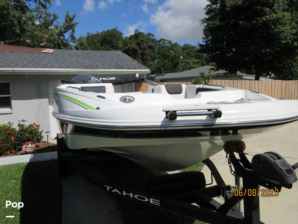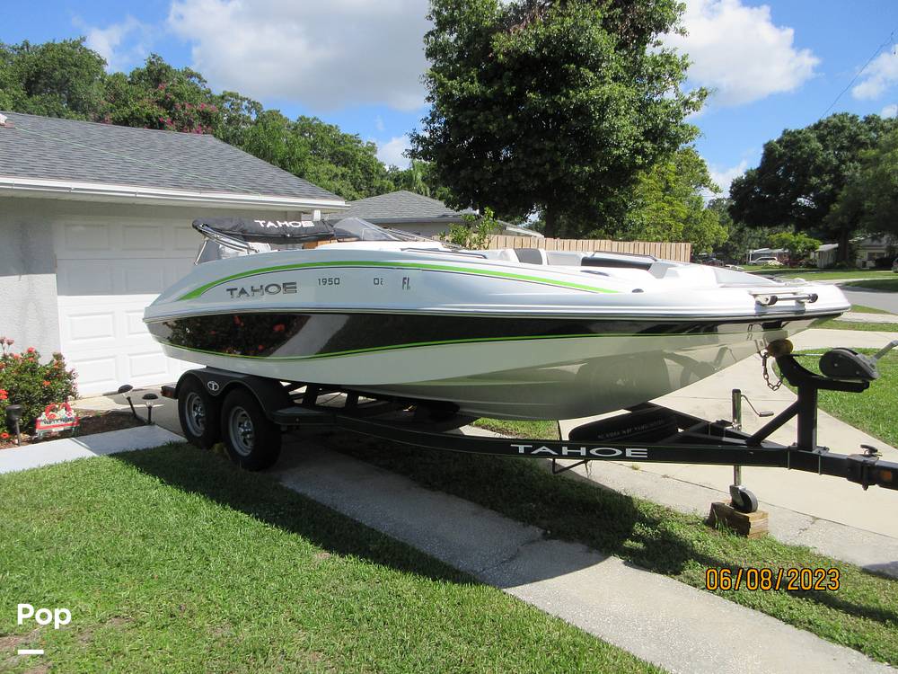 This 2017 Tahoe deck boat is powered by a Mercury 150 four-stroke outboard that provides comfortable cruising at 3500 RPM and 27 MPH and a top speed of 46 MPH. Ready for some fun with a very large layout for a 19' boat!