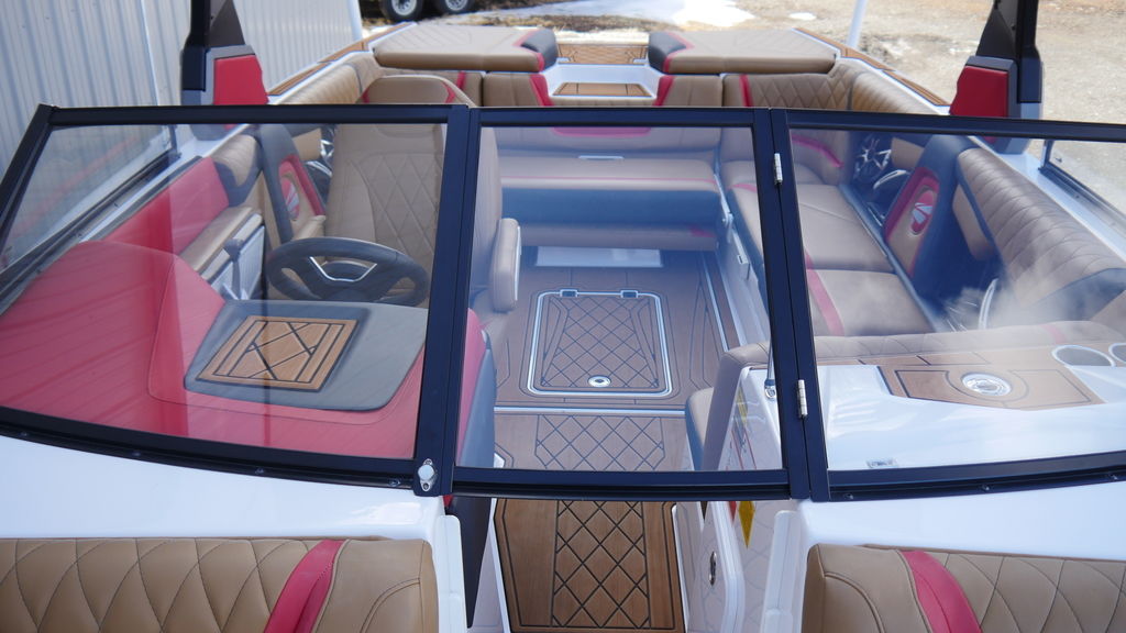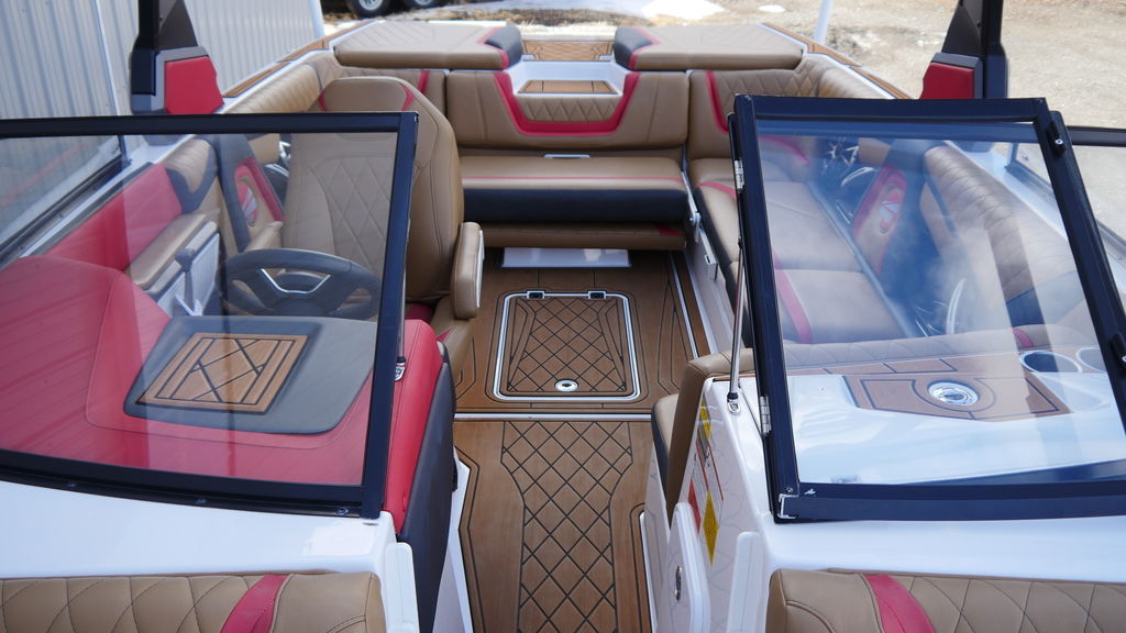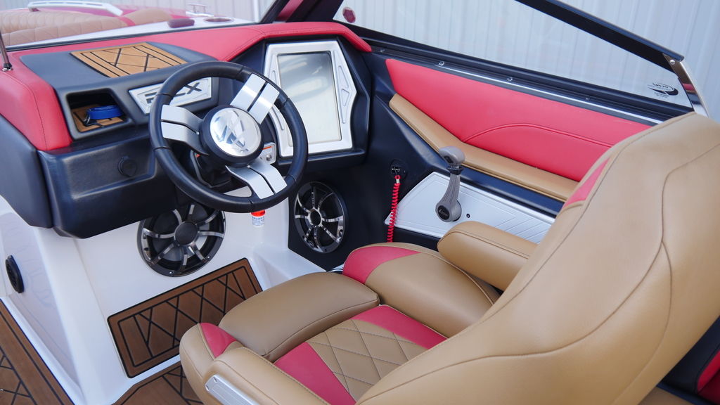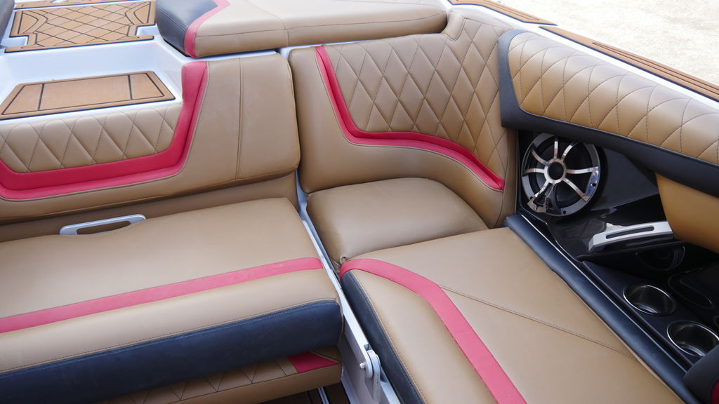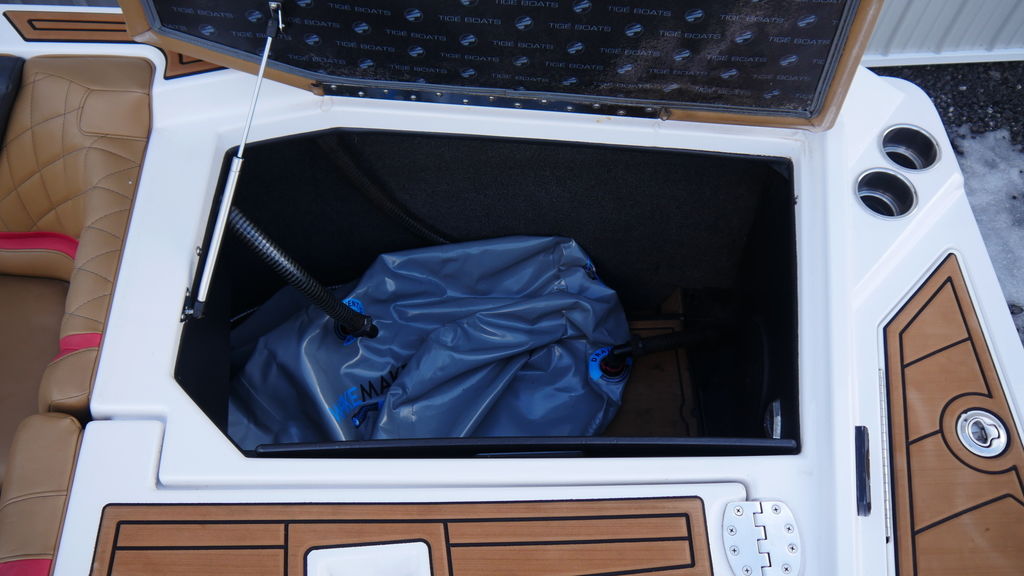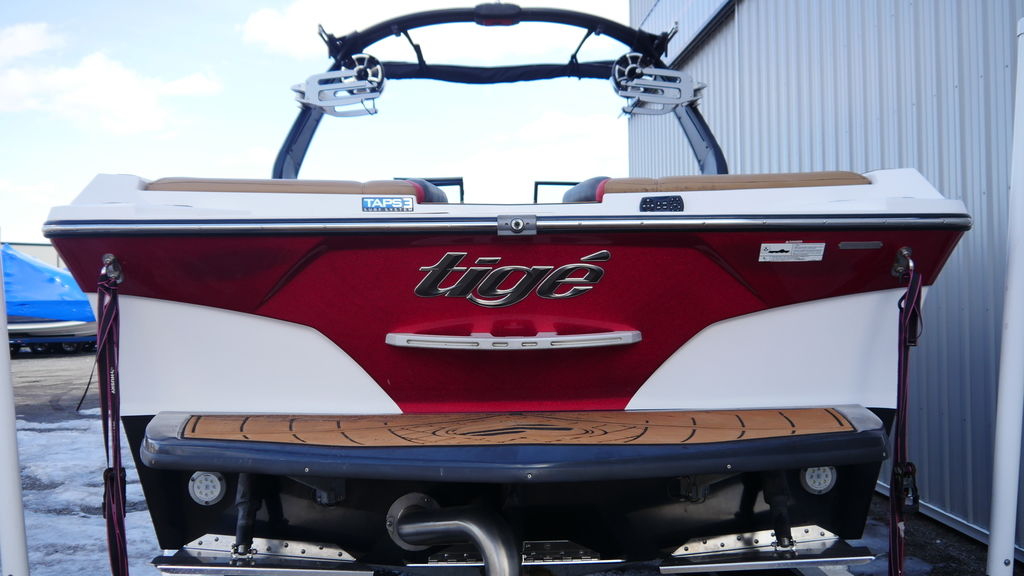 Included with the boat is a wetsounds stereo system, full boat cover, gator step flooring, surf pipe (installed by our team), fiberglass platform, Tige TAPS surf system, and 3000 lbs of ballast.