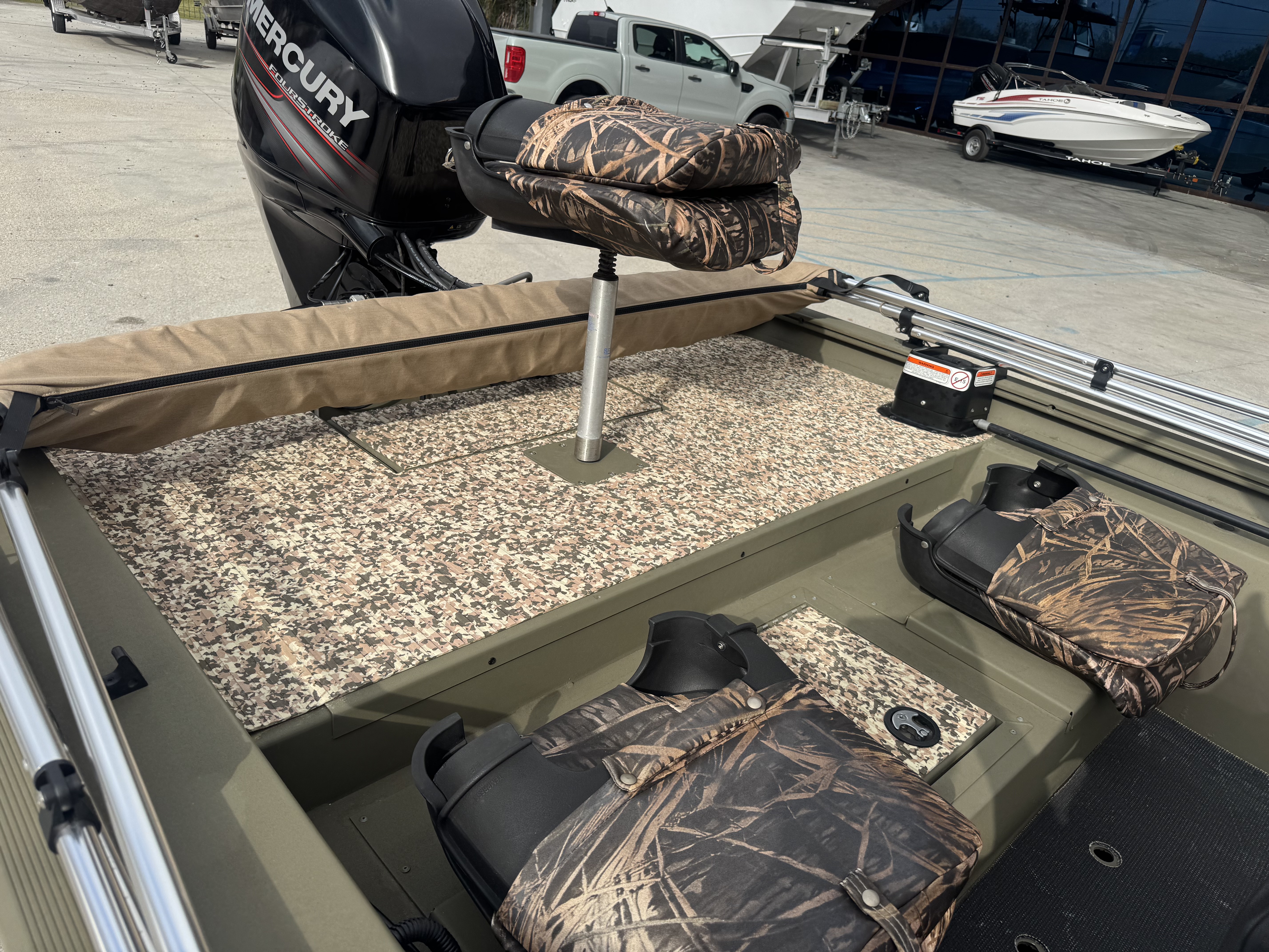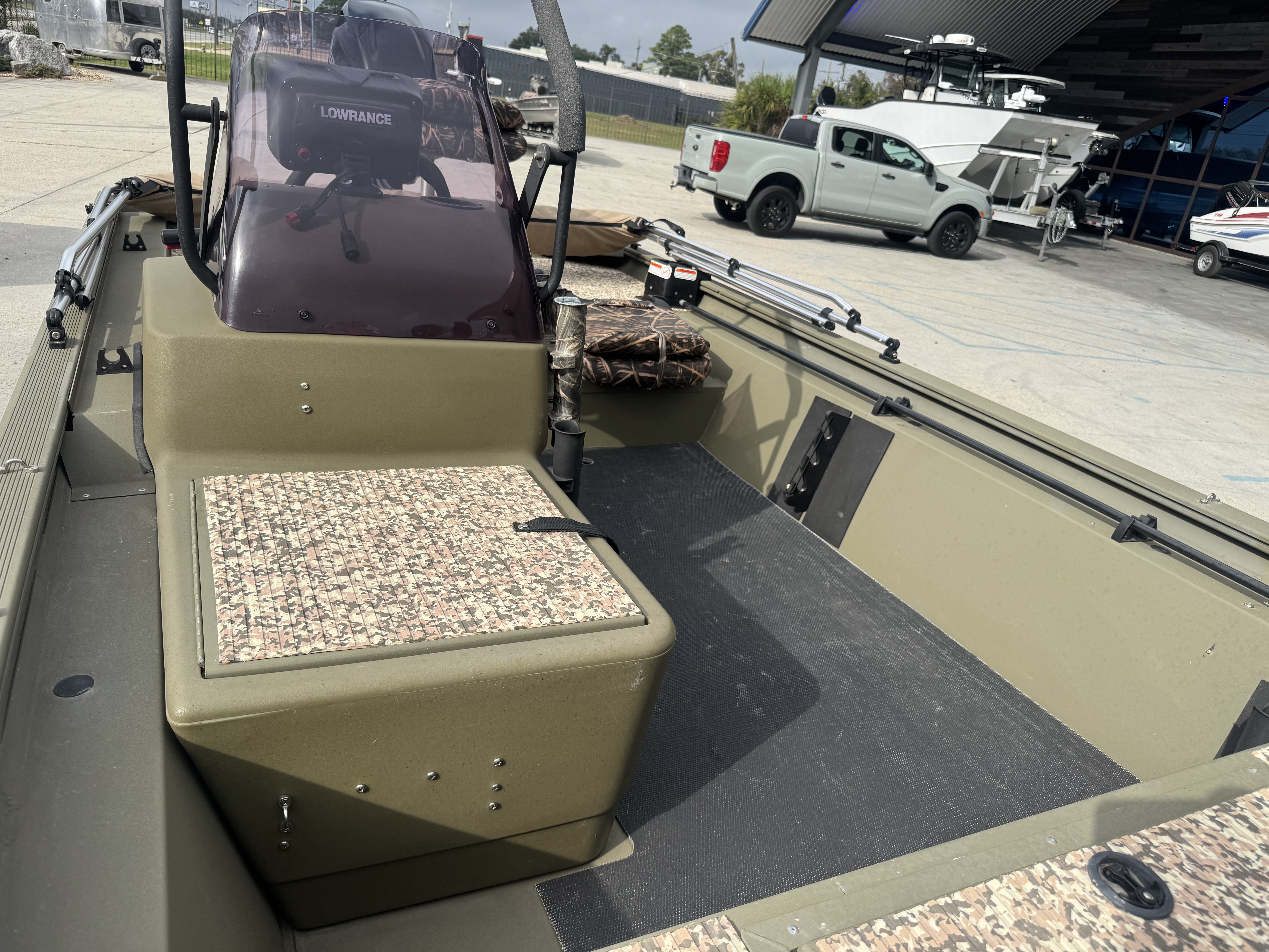 Step aboard the TRACKER® GRIZZLY® 1754 SC, a roomy and steady aluminum jon boat measuring 17' 1" in length and 6' 6" wide, offering ample space for your fishing or recreational outings. Capable of accommodating up to a 75HP motor, this versatile boat is equipped with a lockable bow deck storage compartment, ensuring that your gear stays secure and organized during your adventures on the water. The 1754 SC features a 7° deadrise hull design, providing a smooth and dry ride even in choppy waters. With a solid .190 aluminum floor and welded-in, foam-filled sides, this boat offers increased structural integrity and reduced hull noise, enhancing your overall boating experience. The fully welded hull, unitized to the all-aluminum box-beam transom via the full-length longitudinal stringer system, ensures exceptional durability and reliability in various water conditions. Backed by the TRACKER PROMISE, the GRIZZLY 1754 SC offers the best factory warranty in aluminum boats, providing you with the assurance and confidence to enjoy your time on the water worry-free. Experience the power, versatility, and dependability of the TRACKER GRIZZLY 1754 SC, your ideal companion for exciting and memorable boating experiences. Max HP: 75 HP