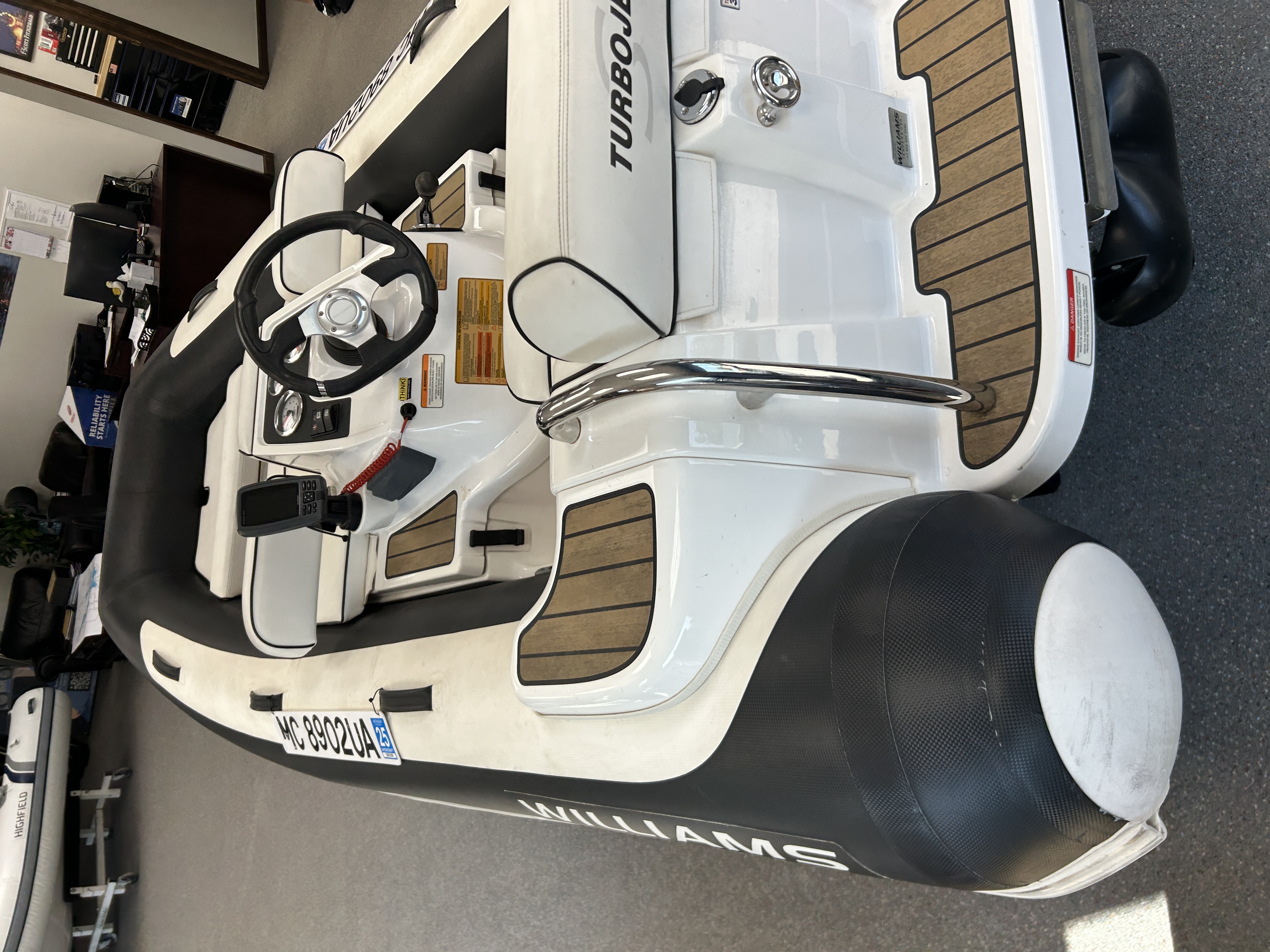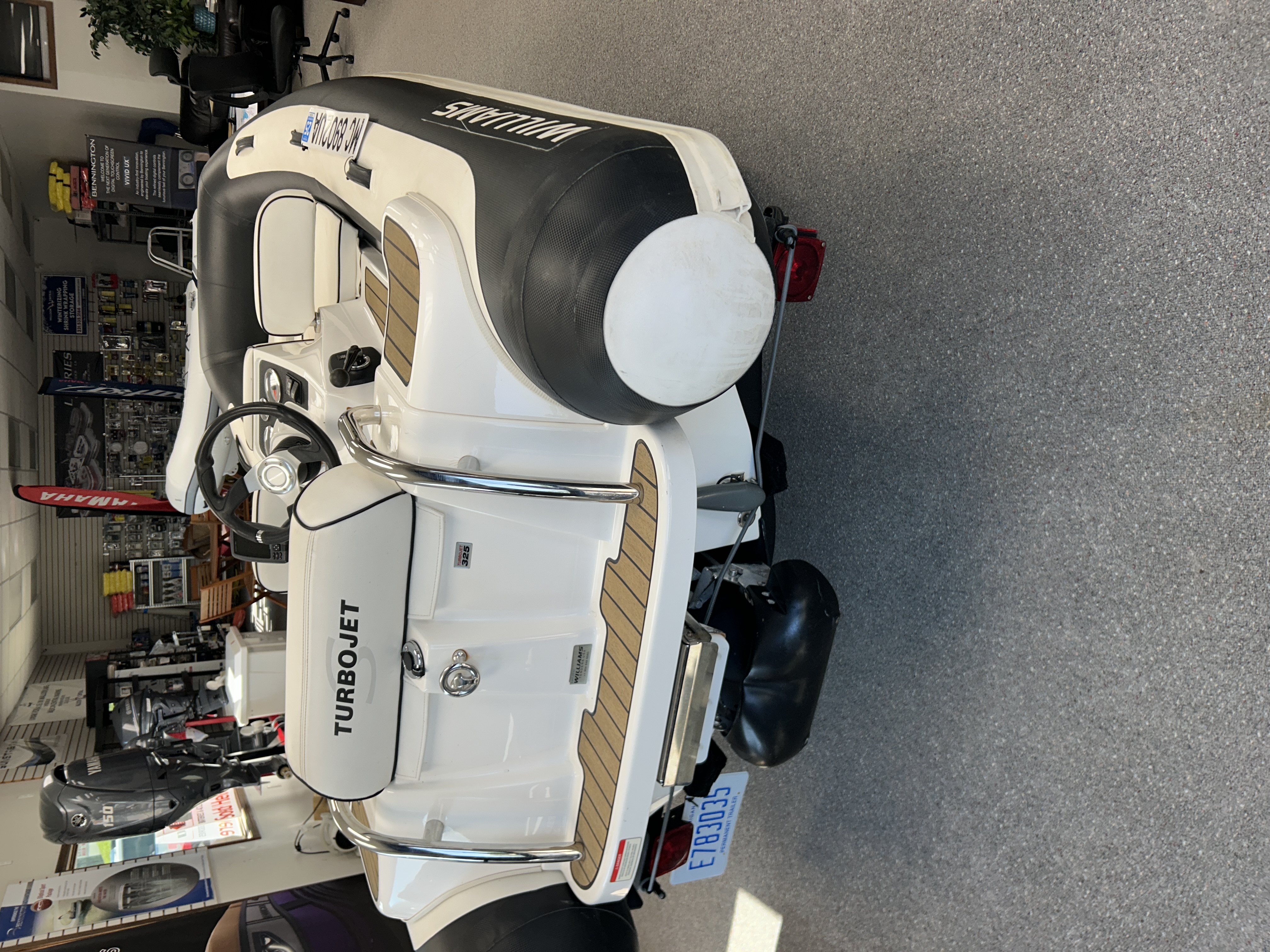 The TurboJet 325 has a 90HP engine that moves up to 48 MPH. Rated for 4 passengers, plus the driver. It is the perfect tender for any larger boat. It is also a great boat for getting around inland lakes and into shallow areas. Comes with trailer.