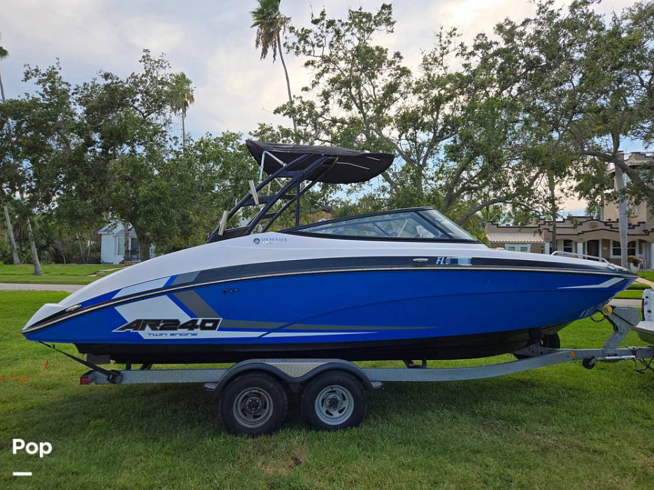 The helm features Yamaha's Connext screen and joystick selector for complete control of all onboard systems.