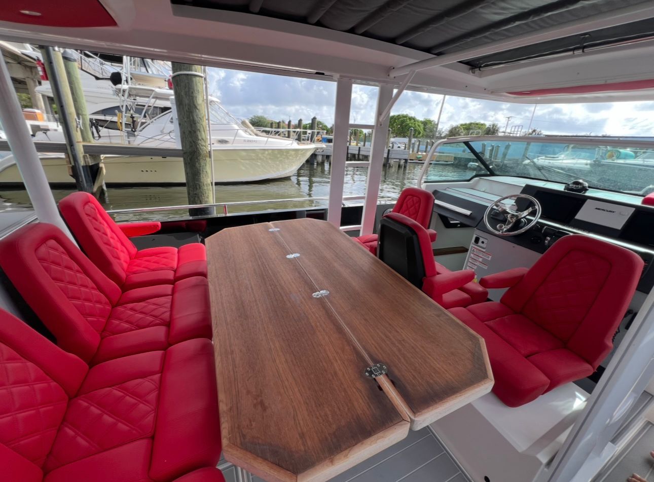 - Custom red upholstery & premium SeaDek flooring