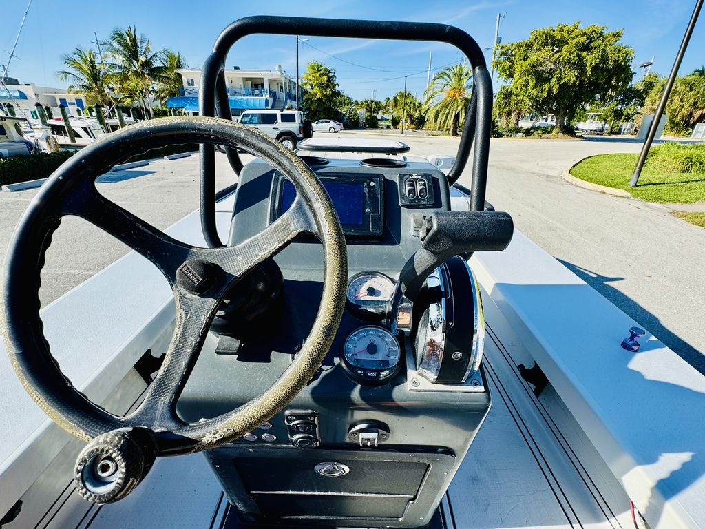 -Hydraulic steering for precise control, 12V power access, and integrated switch panel.