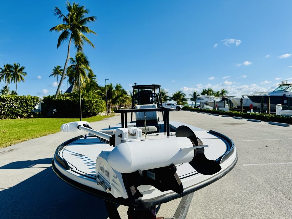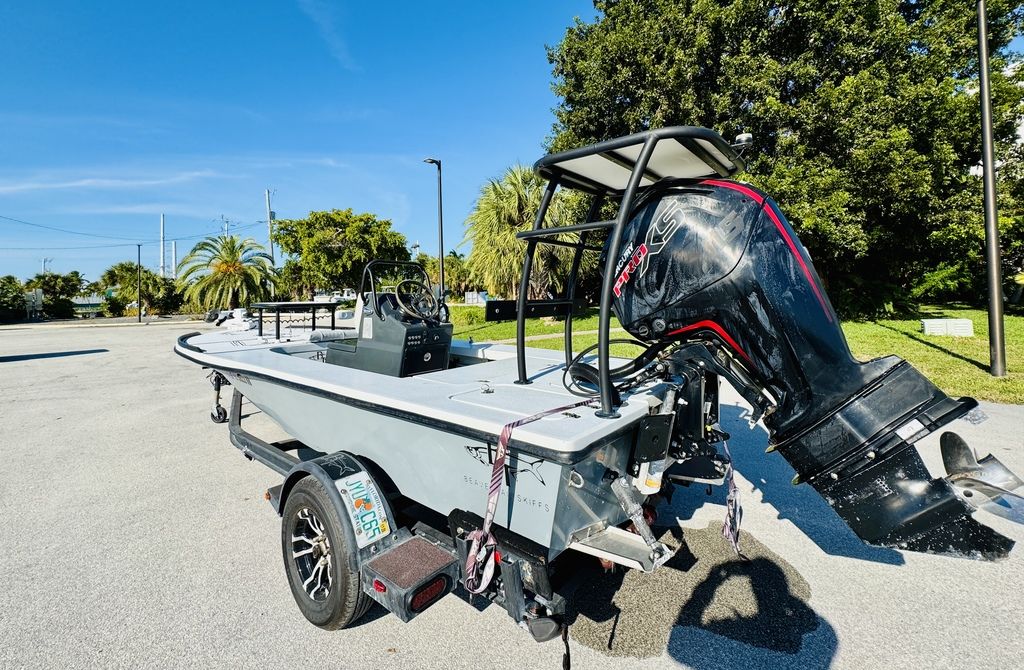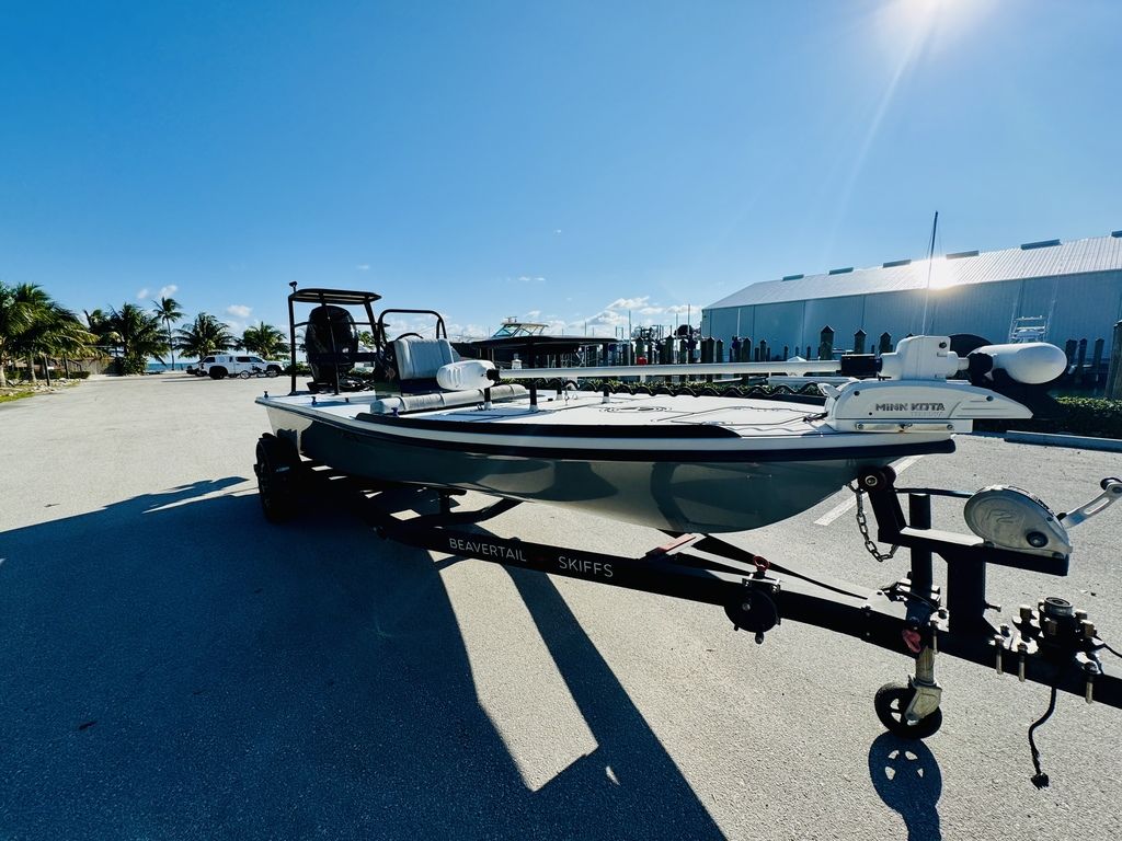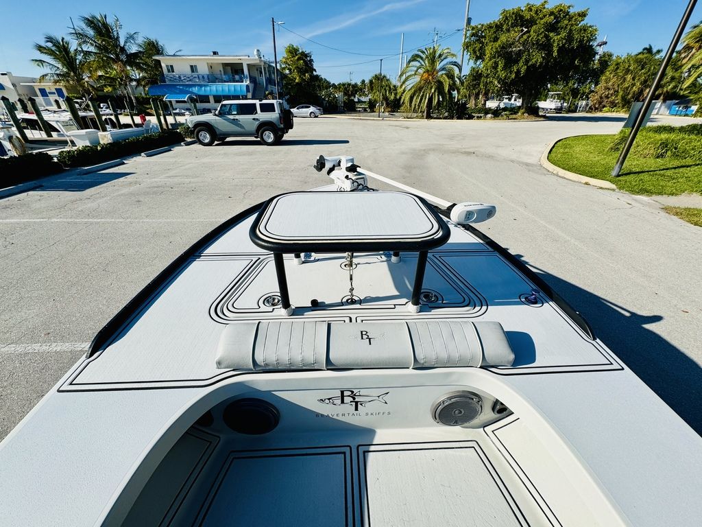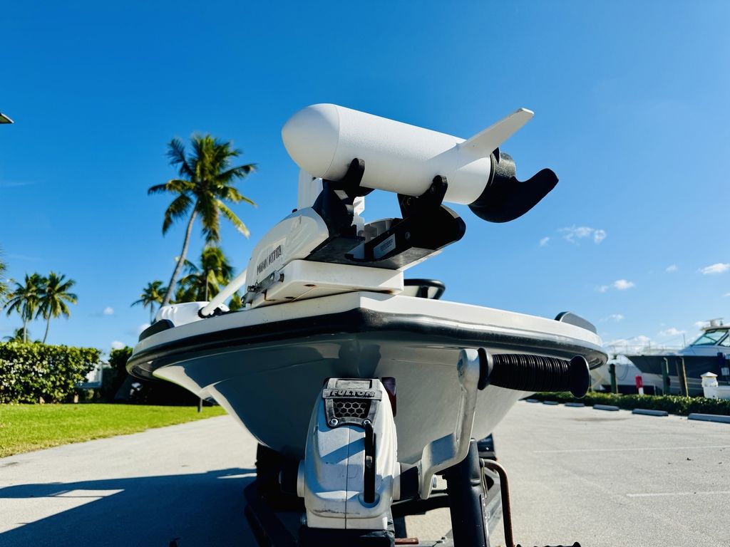 The Air 18 is a purpose-built technical skiff engineered for anglers who demand shallow-water access, exceptional stability, and confident performance in open bays. From stalking redfish across quiet flats at sunrise to crossing breezy channels on the way to your favorite beach or sandbar, this skiff performs with poise and efficiency. Powered by a Mercury 115 HP outboard with approximately 350 hours, the Air 18 delivers quick hole-shot, responsive trim control, and efficient cruising for long days on the water. At a hull length of 18’3” and a beam of 77”, the skiff is light, nimble, and easy to trailer, yet built with Beavertail’s vacuum-infused carbon/Kevlar construction for strength, rigidity, and a remarkably quiet ride. Every detail — from its sealed dry-storage hatches to its stainless hardware and clean deck layout — reflects a commitment to quality and long-term durability. Whether you’re poling the flats, running the shoreline, or relaxing in open water, this boat adapts seamlessly to your day’s plans.