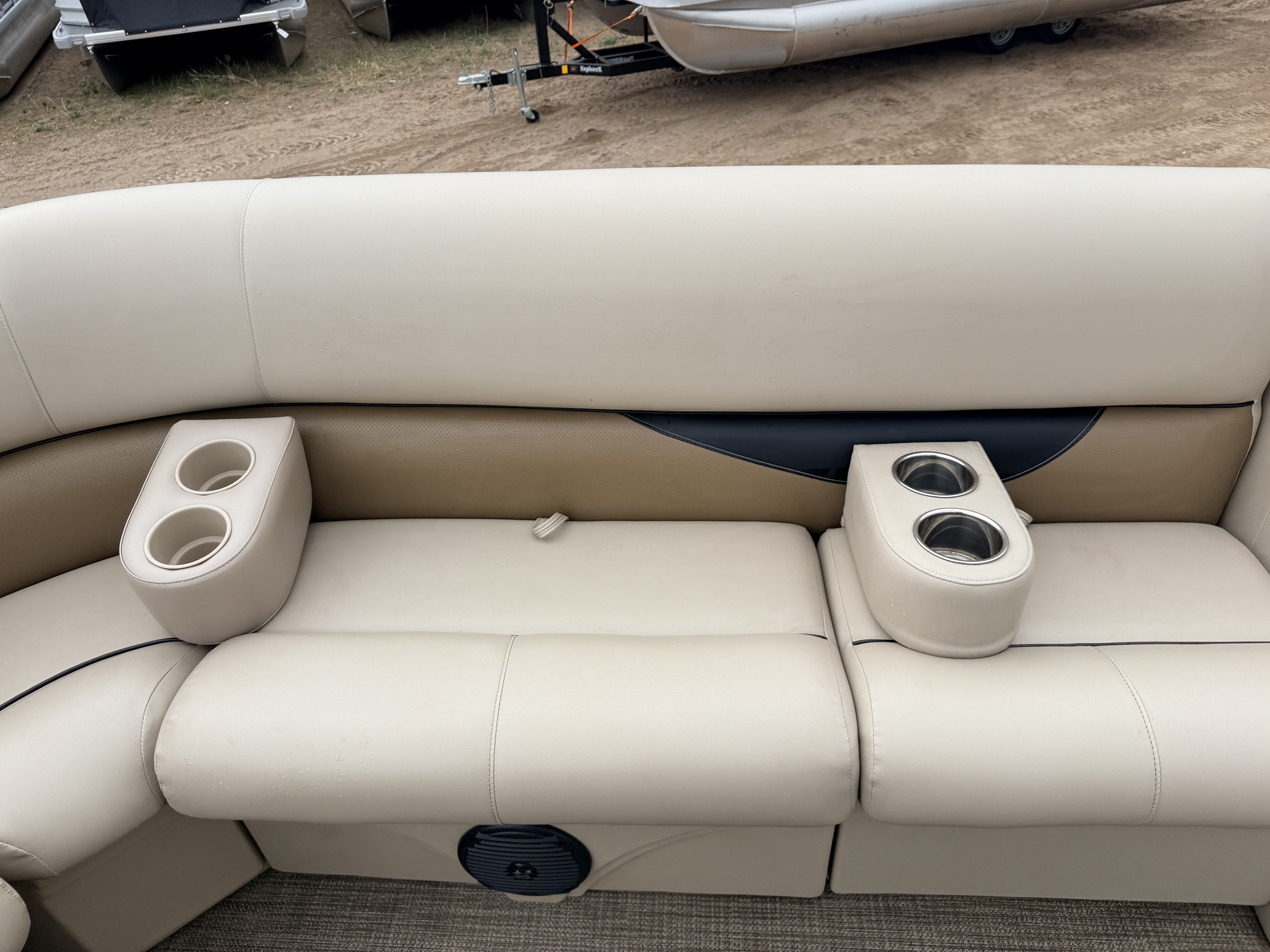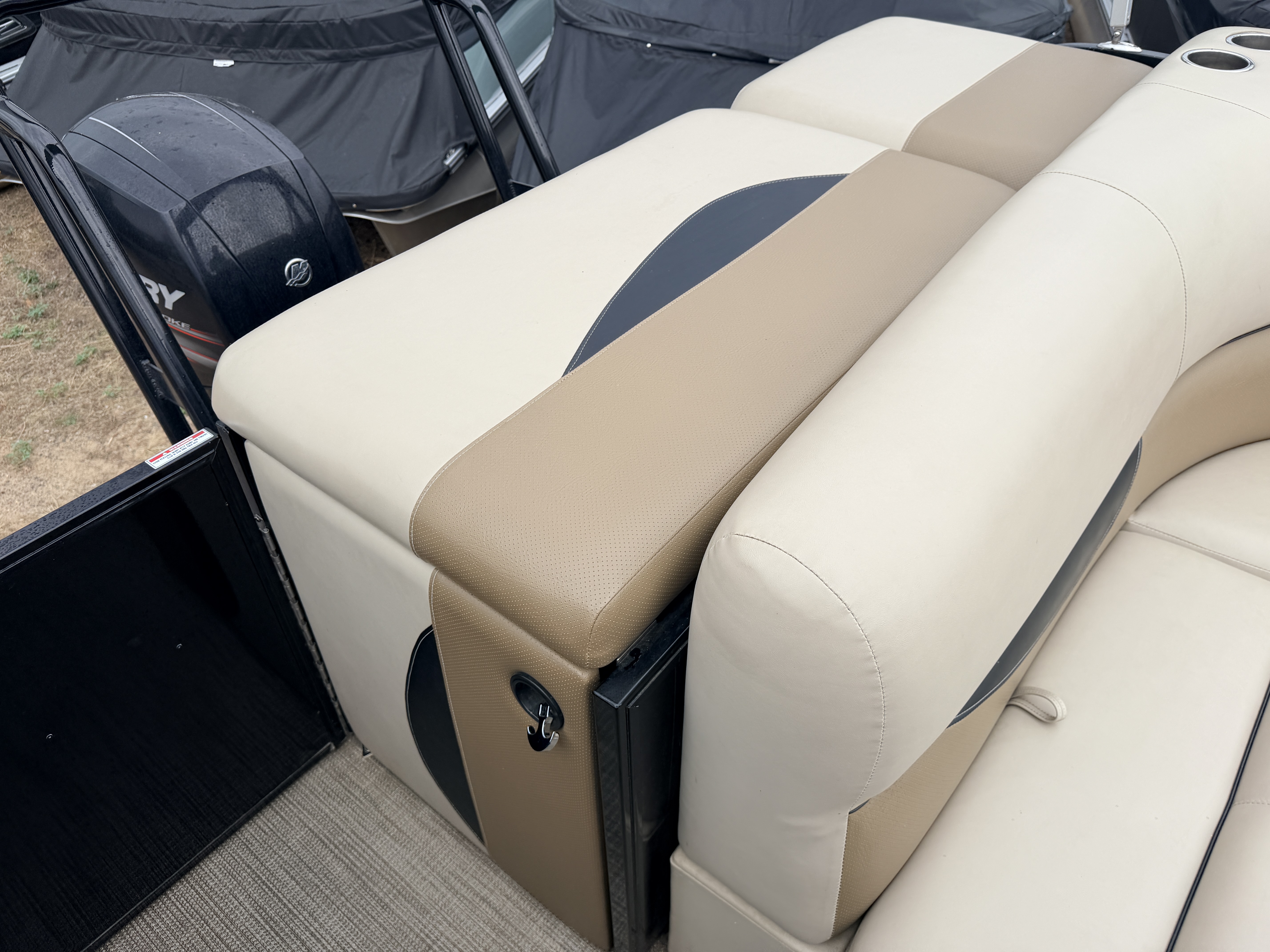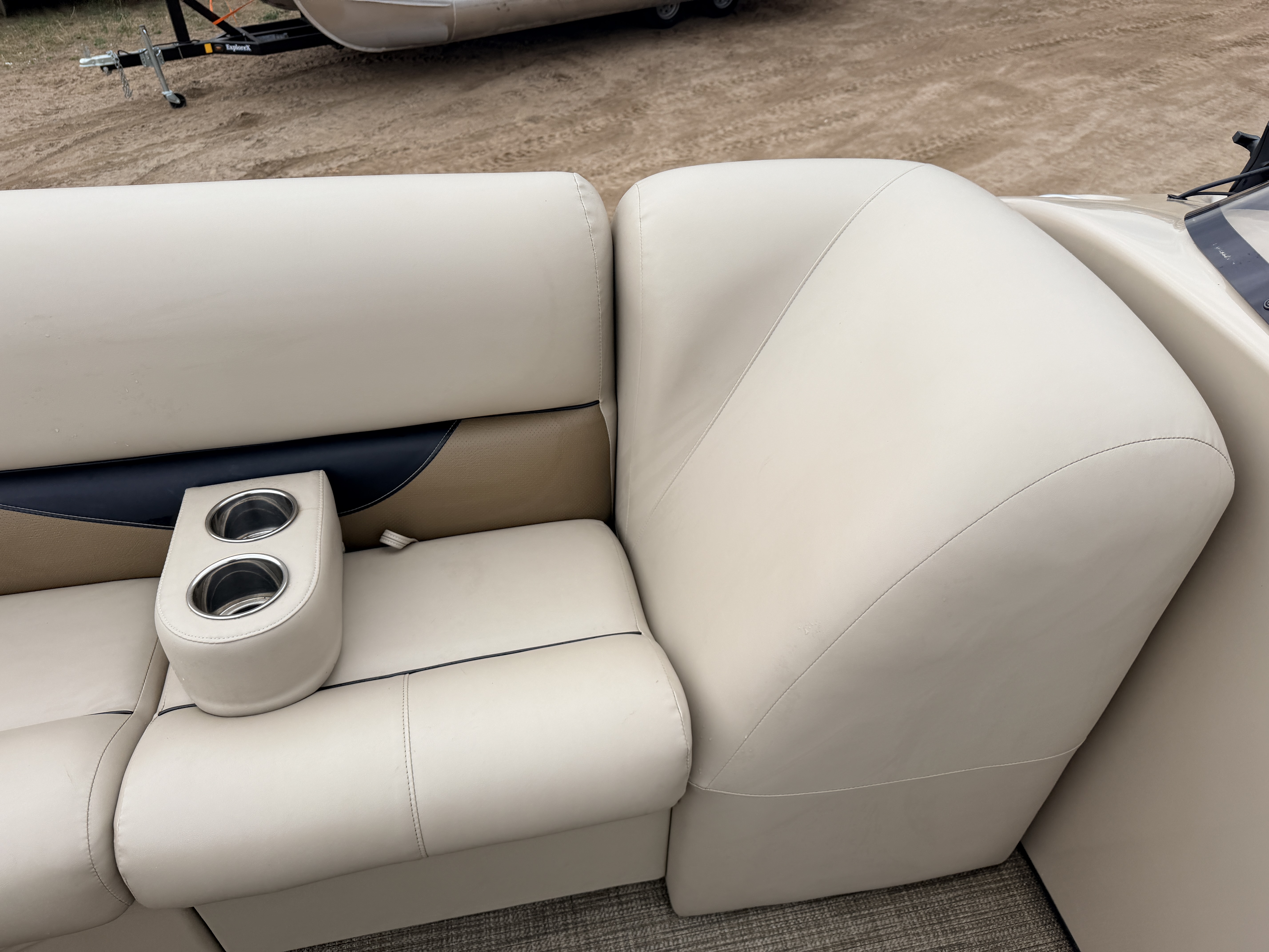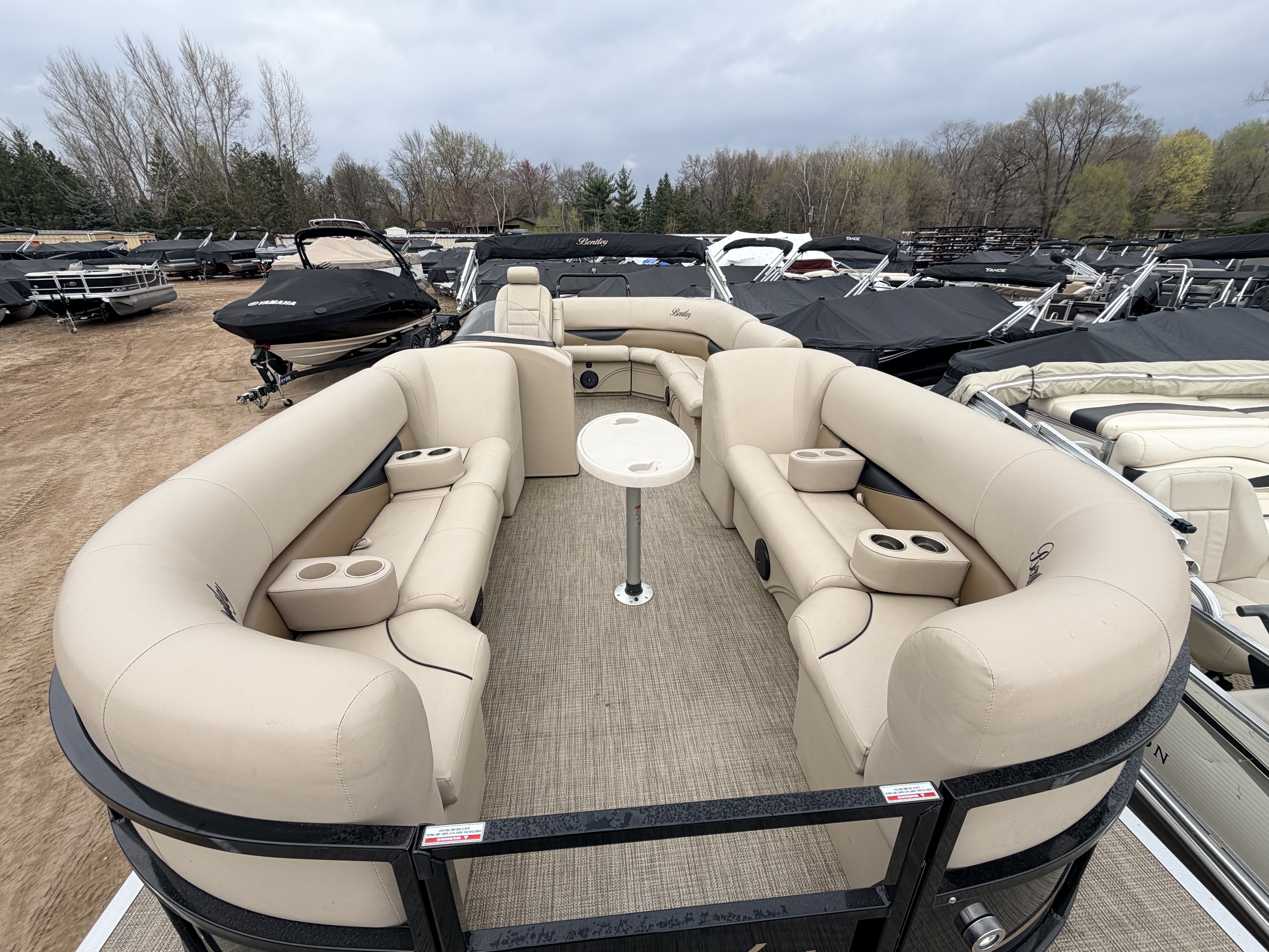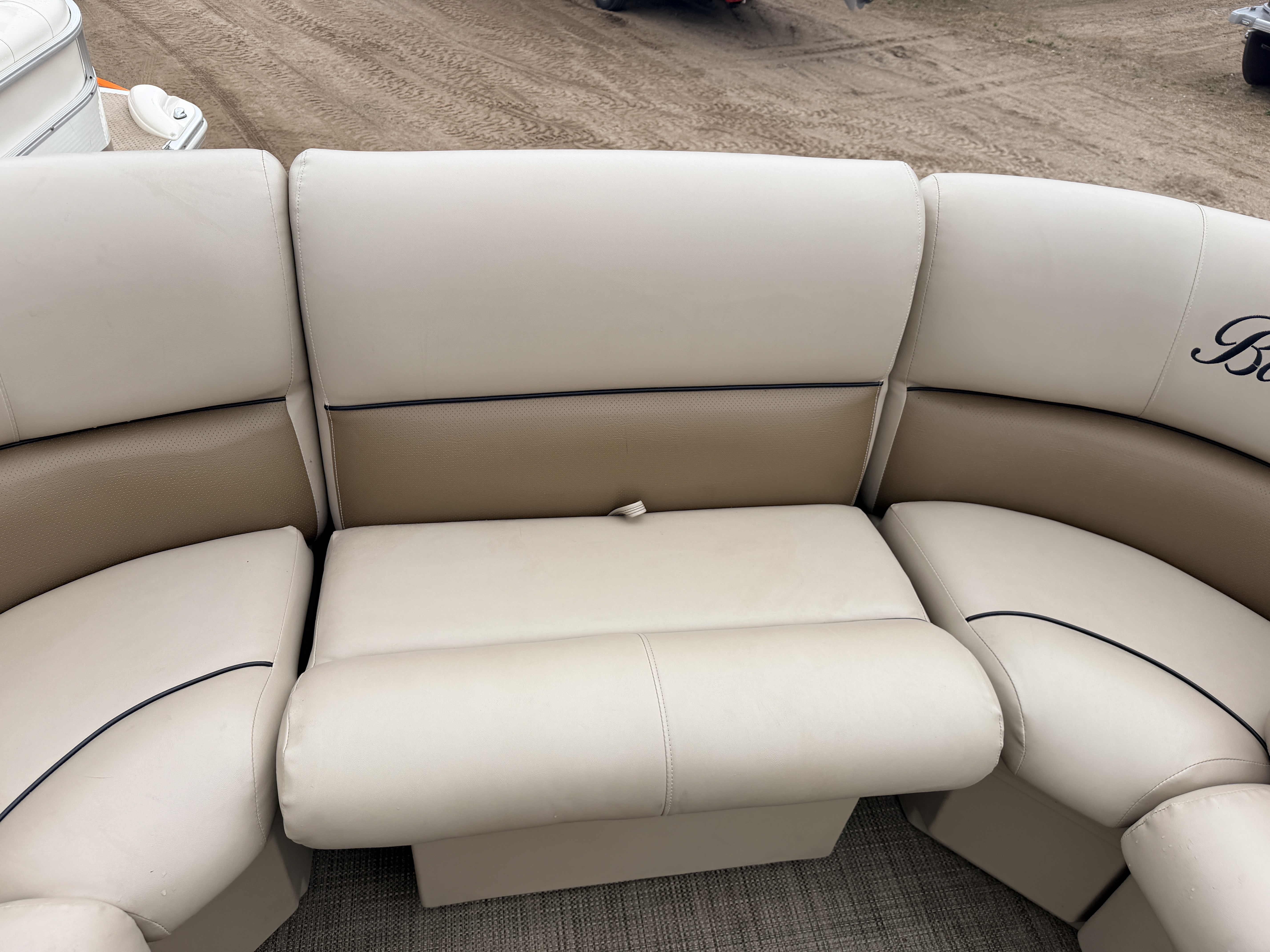 2018 Bentley Encore 240 Cruise SE Pontoon & 150HP Mercury Fourstroke. Seating includes Dual Lounge Couches with movable Bow Filler, L-shaped Couch, Captain's Chair and Sun Deck. Features include Bimini Top, Table, In-Seat Storage, Speedometer, Tachometer and Fuel Gauges, Jensen MS2A Bluetooth Stereo, Courtesy Lights, and LED Navigation & Docking Lights. Additional features include Built-In Ski/Tow Bar, 4 Movable Cup Holders, Built-In Cooler, Livewell, Humminbird Helix 5 Depth/Fish Finder, and Privacy/Changing Station.