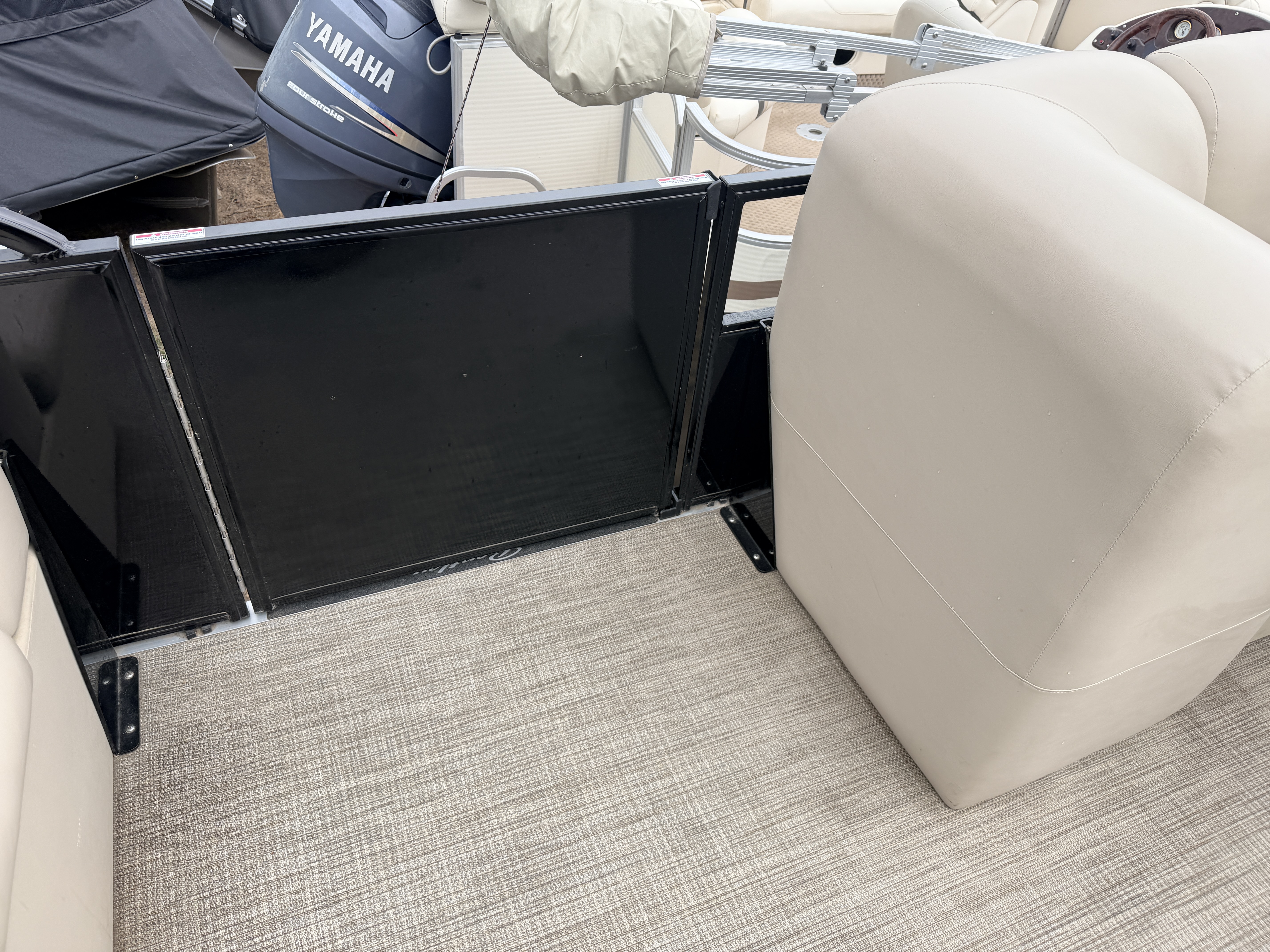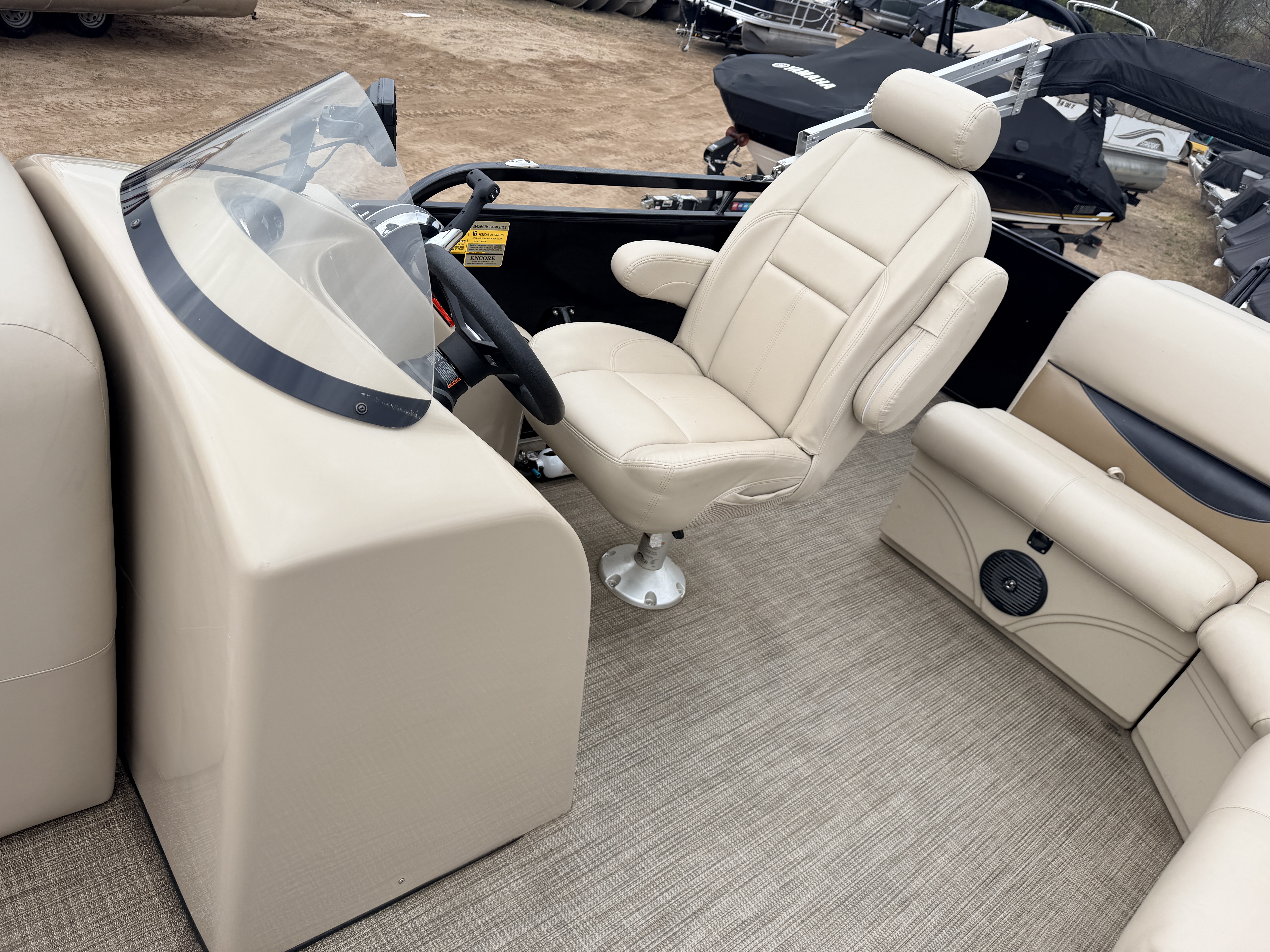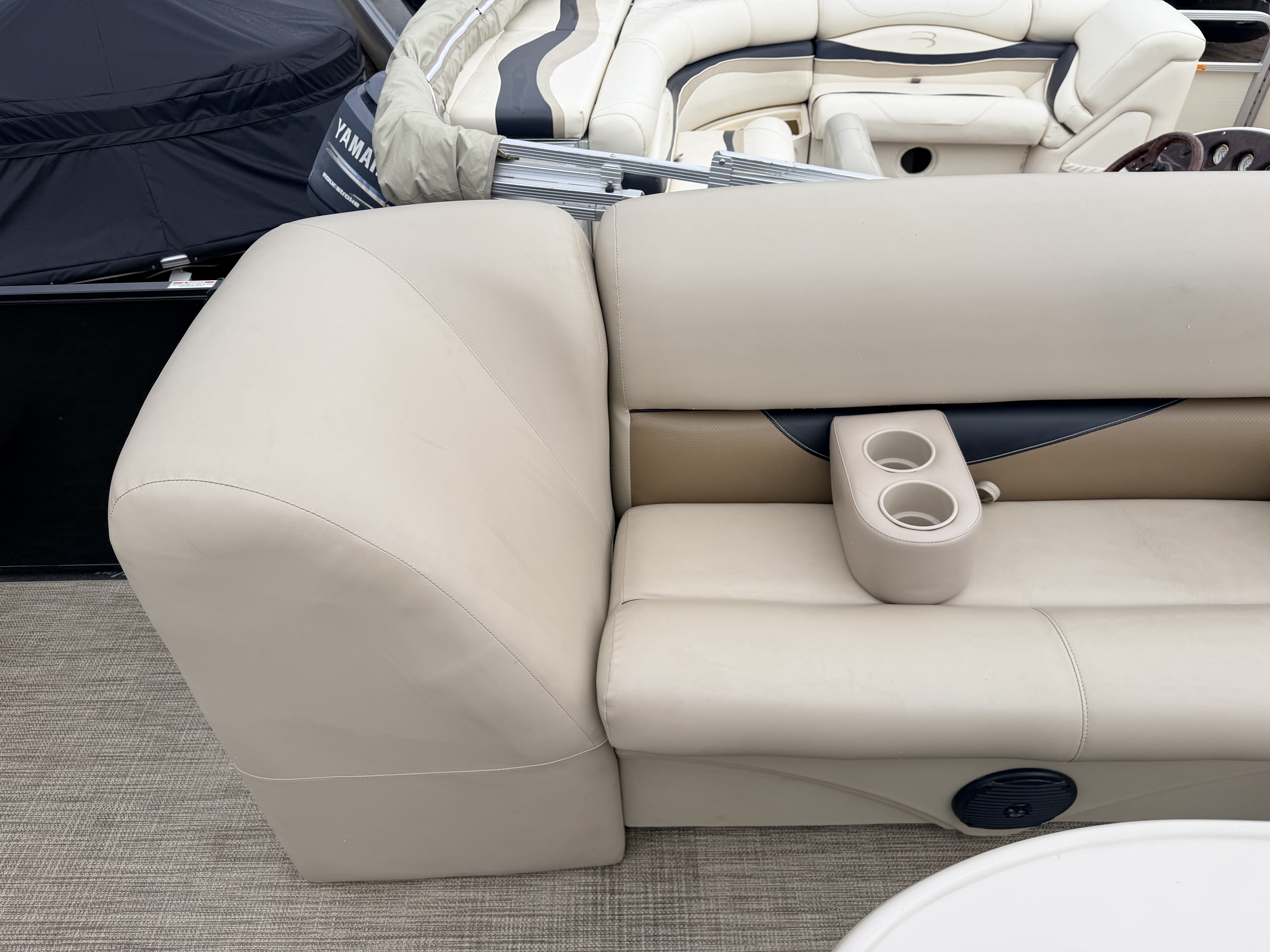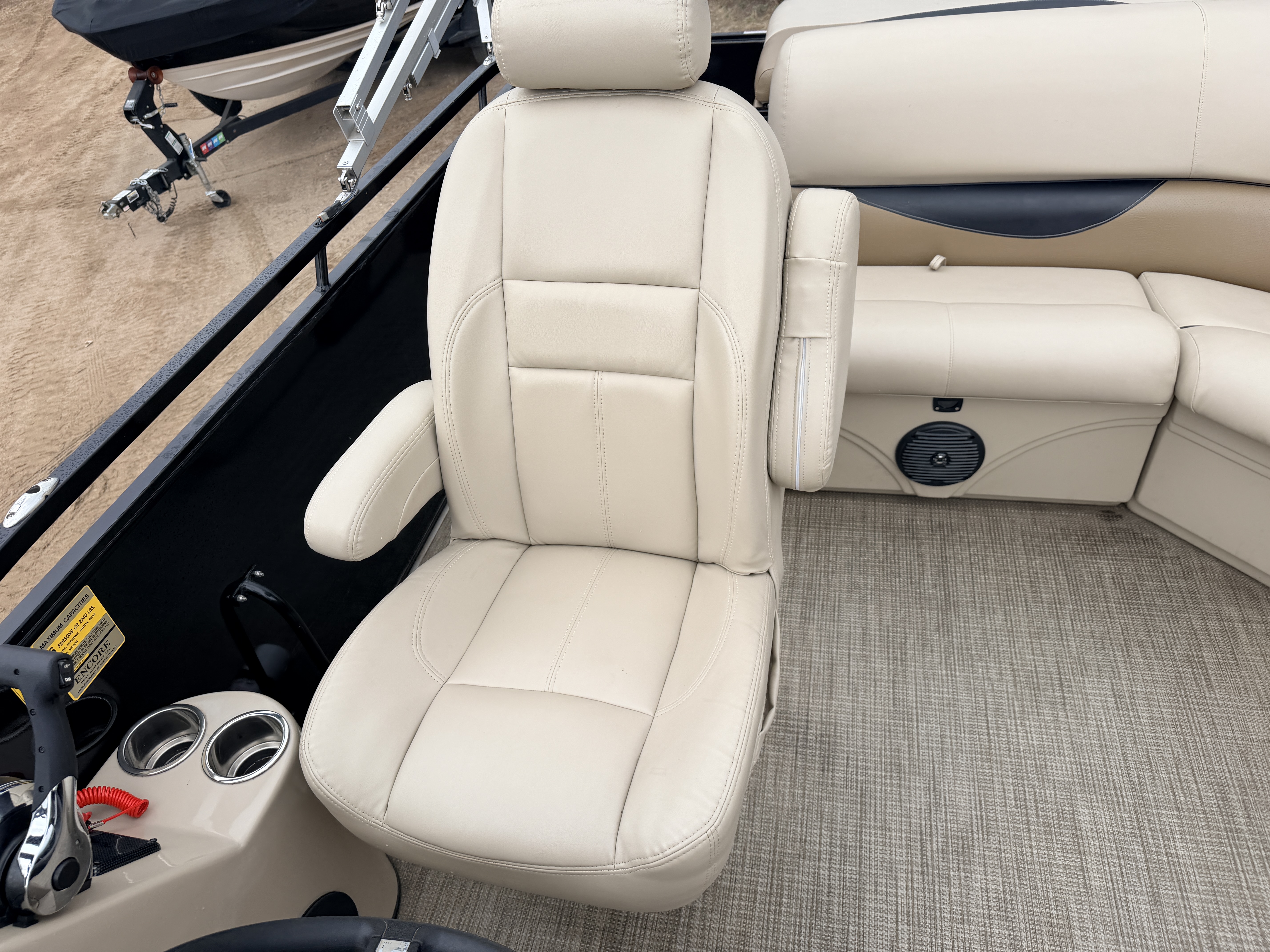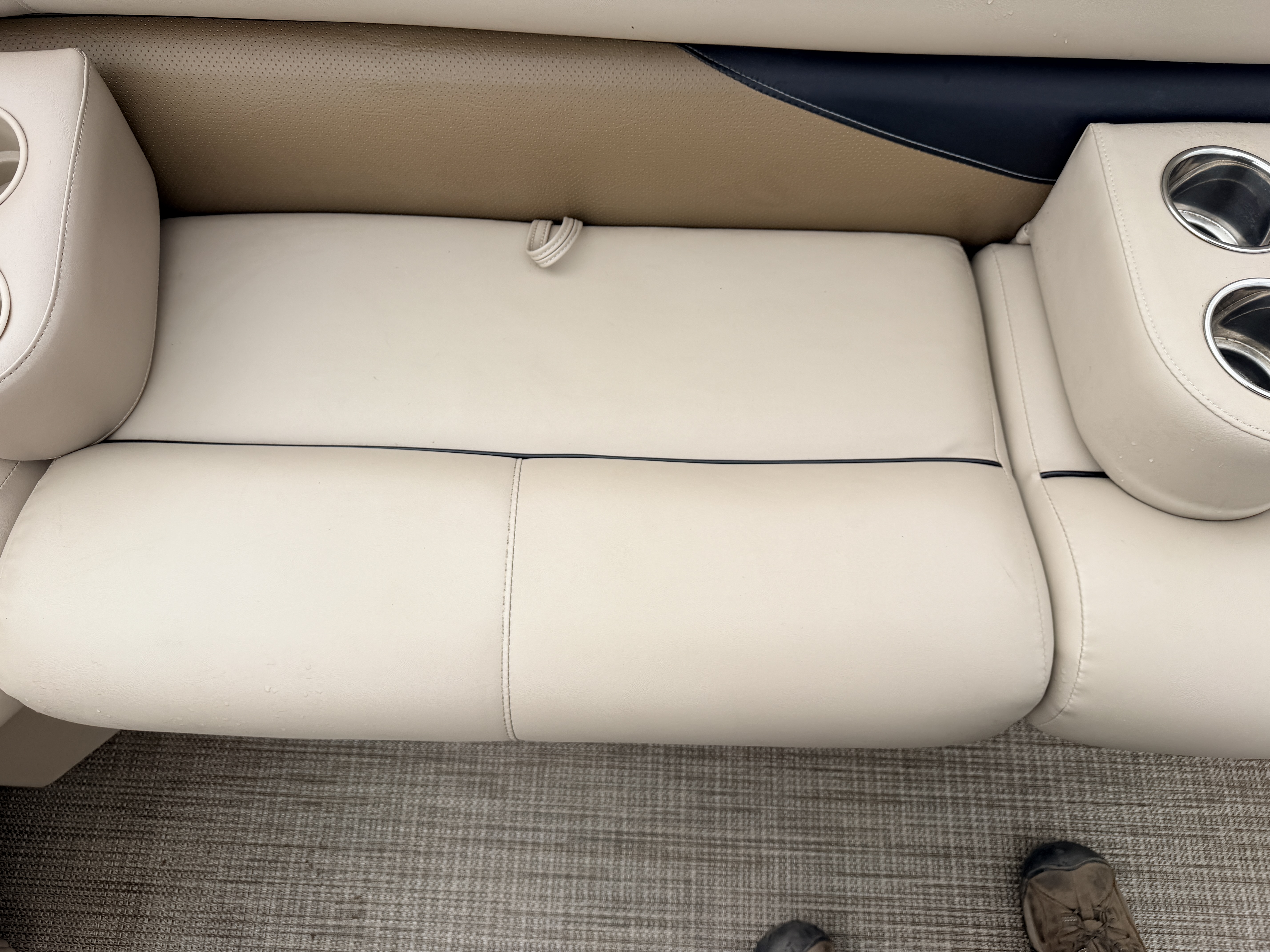 2018 Bentley Encore 240 Cruise SE Pontoon & 150HP Mercury Fourstroke. Seating includes Dual Lounge Couches with movable Bow Filler, L-shaped Couch, Captain's Chair and Sun Deck. Features include Bimini Top, Table, In-Seat Storage, Speedometer, Tachometer and Fuel Gauges, Jensen MS2A Bluetooth Stereo, Courtesy Lights, and LED Navigation & Docking Lights. Additional features include Built-In Ski/Tow Bar, 4 Movable Cup Holders, Built-In Cooler, Livewell, Humminbird Helix 5 Depth/Fish Finder, and Privacy/Changing Station.