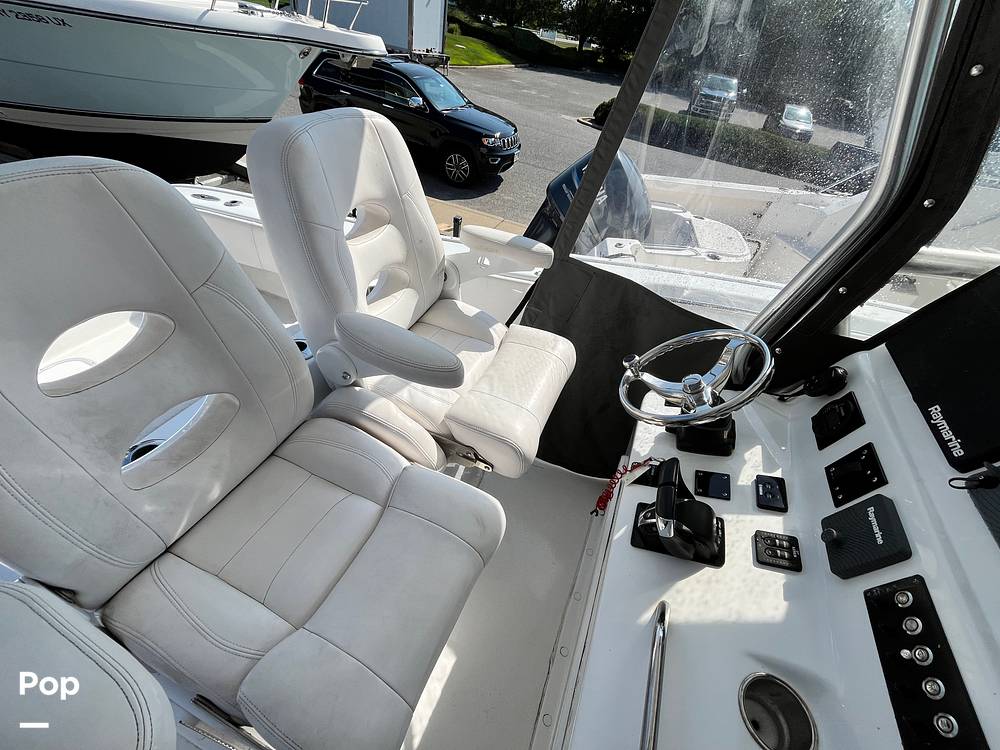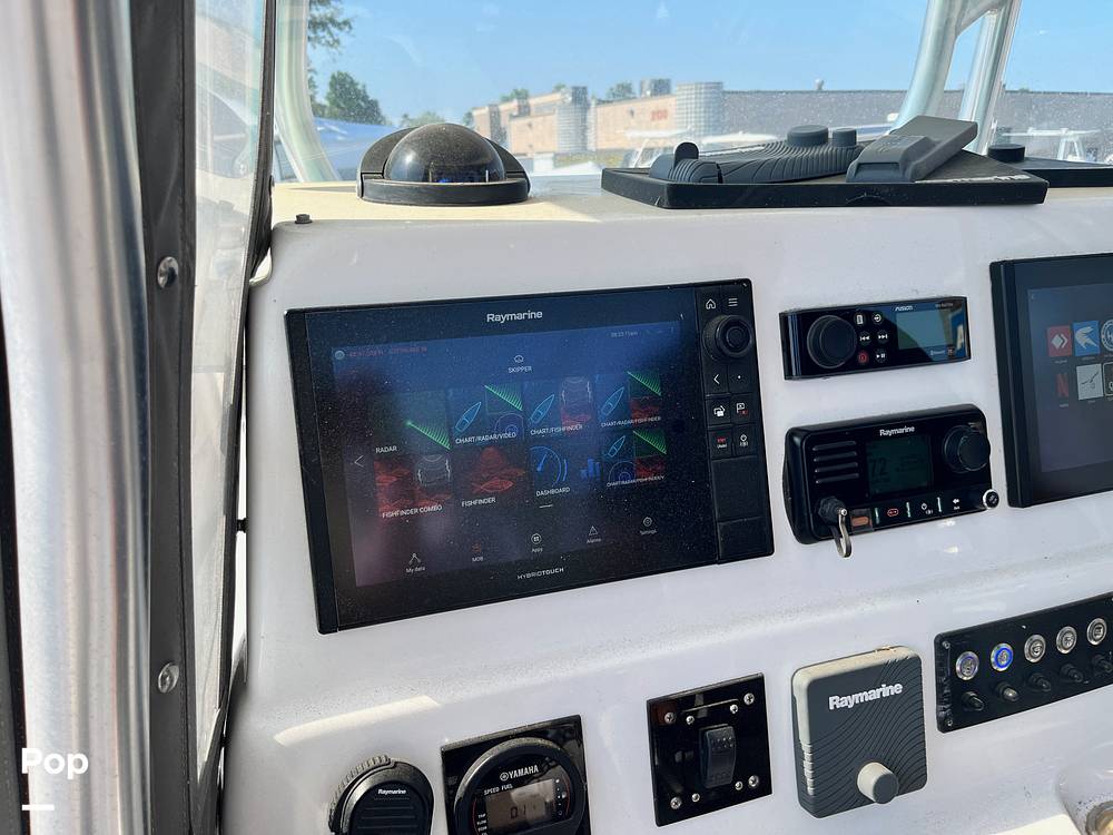 Electronics include dual Raymarine GPS-fishfinders for precise navigation and fishing opportunities, a Raymarine autopilot for hands-free steering, Raymarine radar for confident operation in all conditions, and a fixed-mount marine thermal camera.