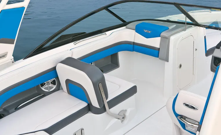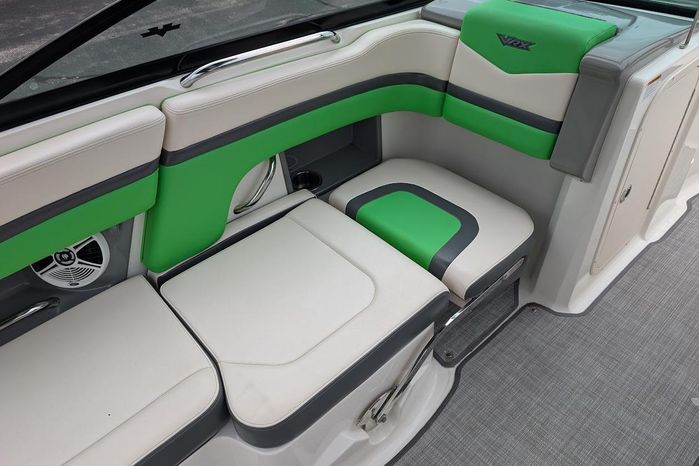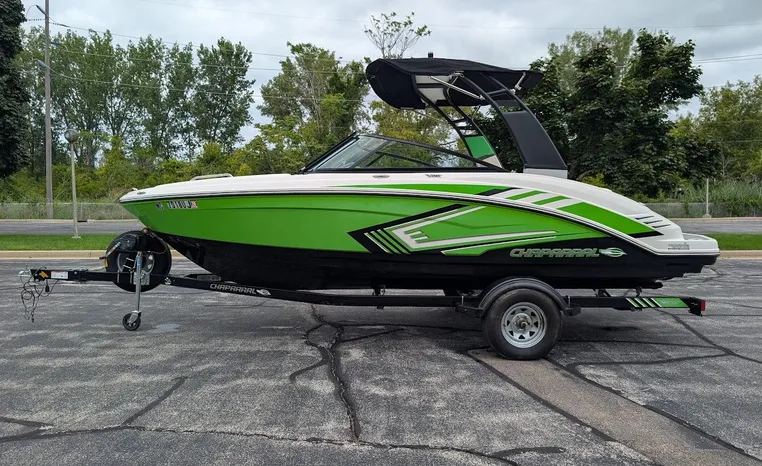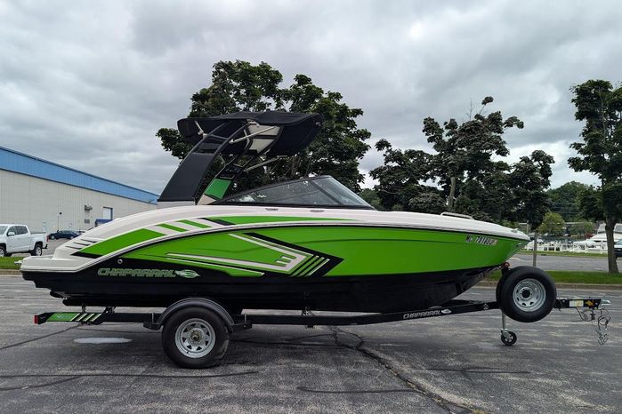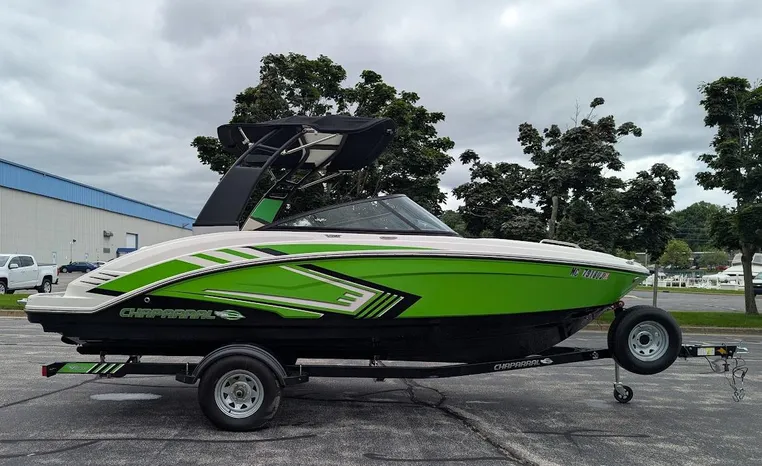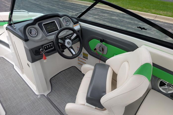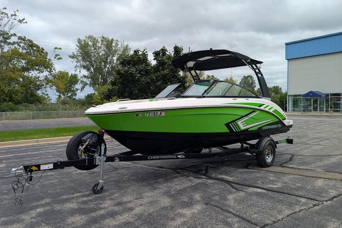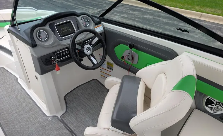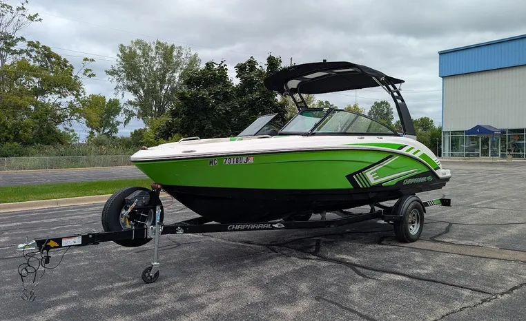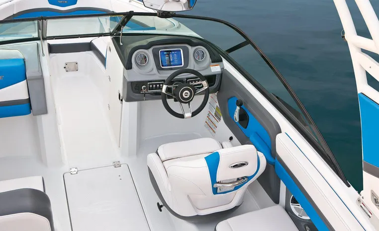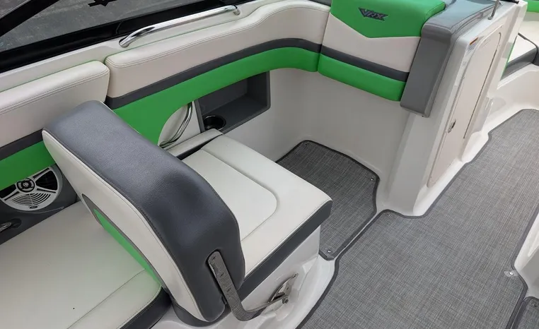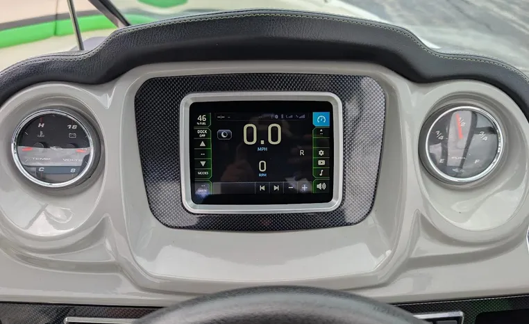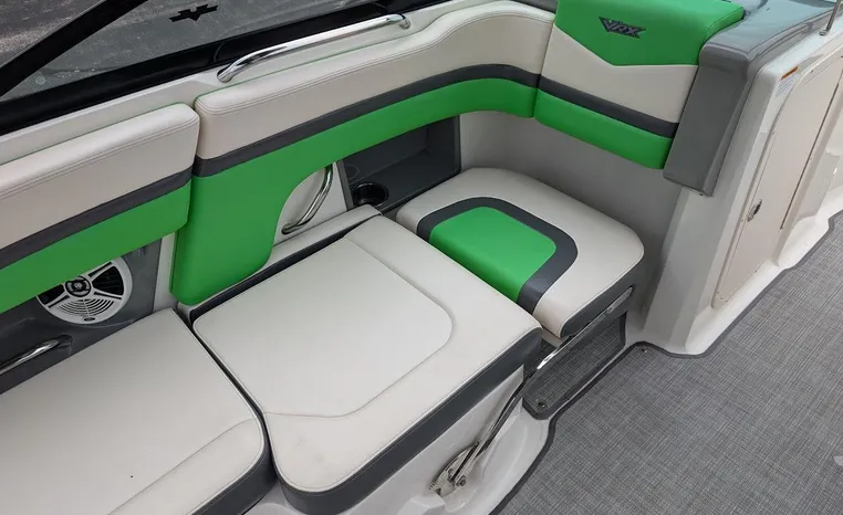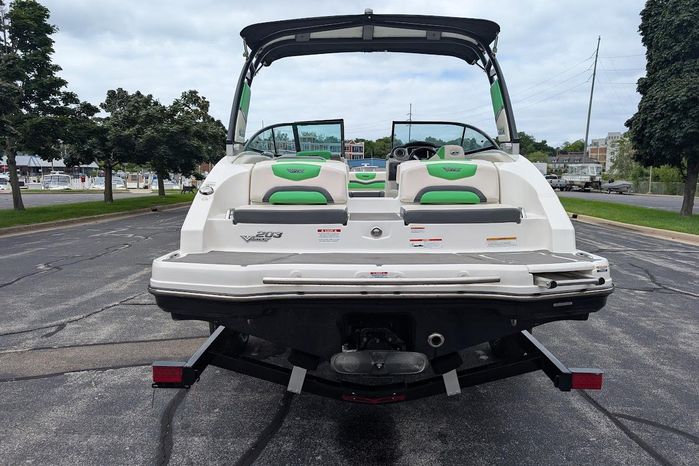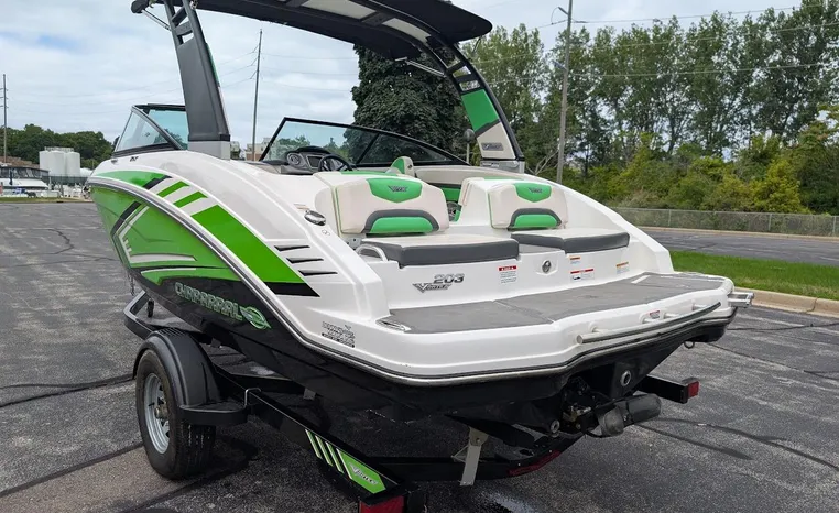 The 203 VRX features the hull design, interior layout and high quality construction Chaparral is known for. In addition to the head-turning style, the VRX includes a black folding arch tower with a ski mirror standard. Everything you've come to expect from Chaparral is standard on the 203 VRX. Snap-in cockpit carpet feels good underfoot and is easily removed for cleanup. U-shaped cockpit seating with a multi-purpose Oasis port side lounge is an open invitation for family fun. You'll be amazed at the comfort and expanded capacity. The dash features a hand-stitched vinyl finish that exudes quality in every way. Power is supplied via a Rotax high output powertrain that ties into the most advanced dashboard electronics you'll find at this length and price point. This Chaparral 203 VRX also comes with a black powder coated Coyote trailer.