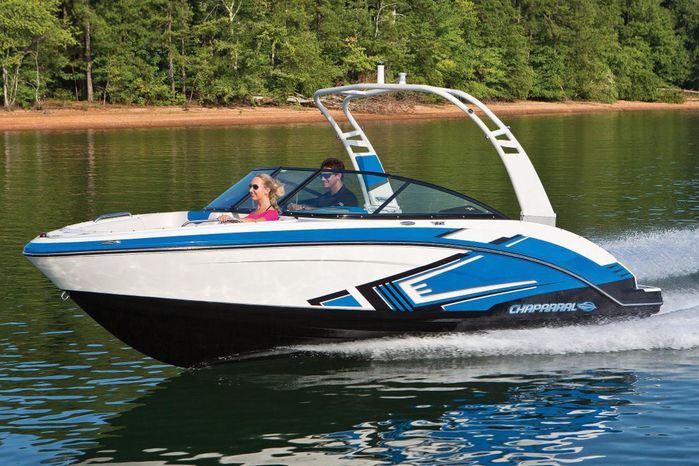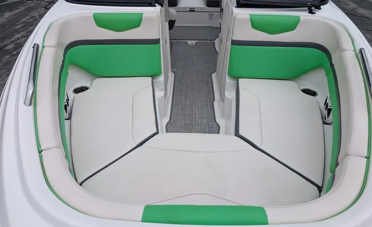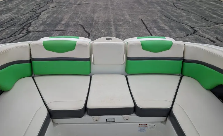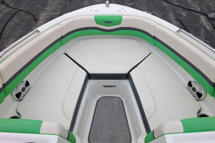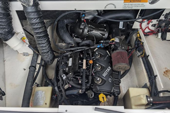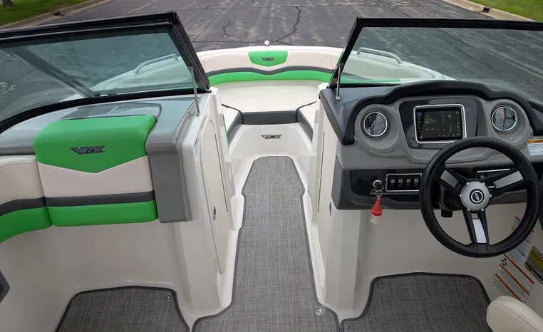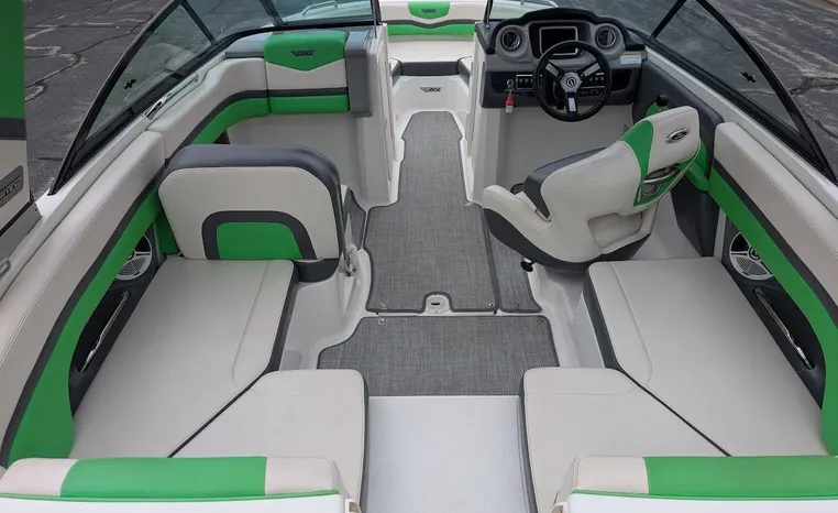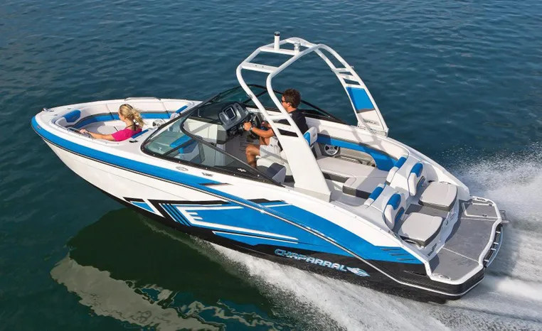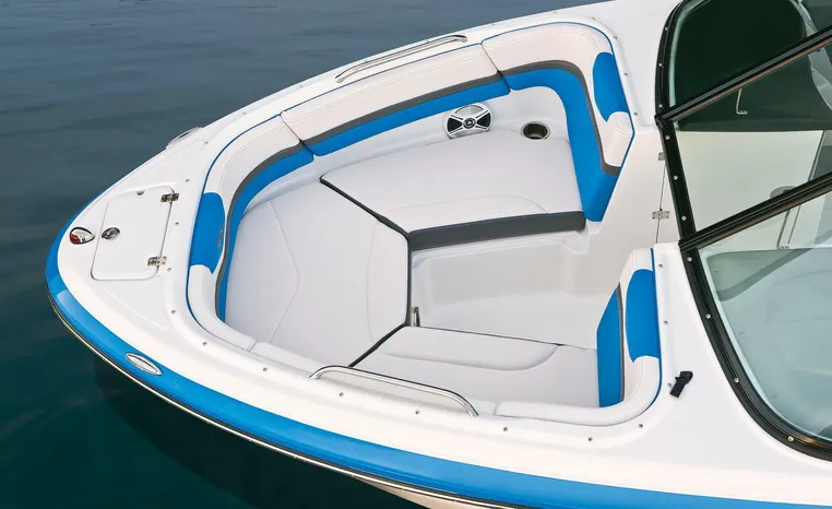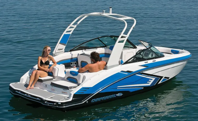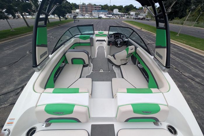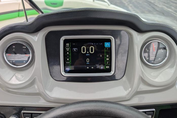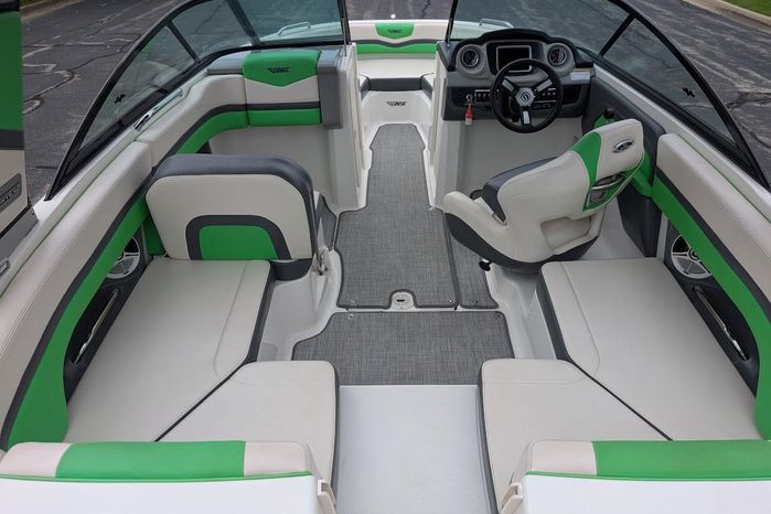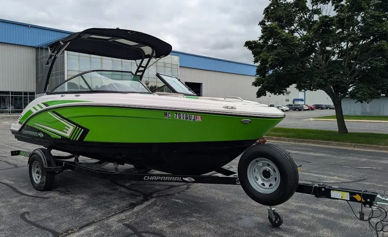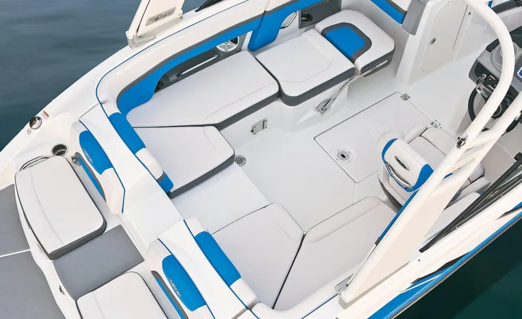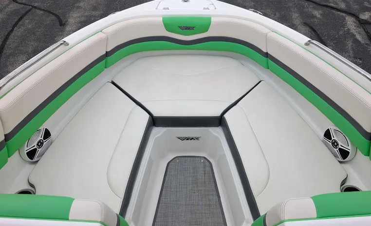 The 203 VRX features the hull design, interior layout and high quality construction Chaparral is known for. In addition to the head-turning style, the VRX includes a black folding arch tower with a ski mirror standard. Everything you've come to expect from Chaparral is standard on the 203 VRX. Snap-in cockpit carpet feels good underfoot and is easily removed for cleanup. U-shaped cockpit seating with a multi-purpose Oasis port side lounge is an open invitation for family fun. You'll be amazed at the comfort and expanded capacity. The dash features a hand-stitched vinyl finish that exudes quality in every way. Power is supplied via a Rotax high output powertrain that ties into the most advanced dashboard electronics you'll find at this length and price point. This Chaparral 203 VRX also comes with a black powder coated Coyote trailer.