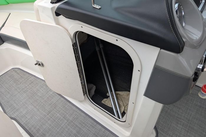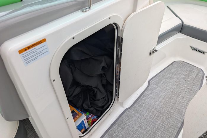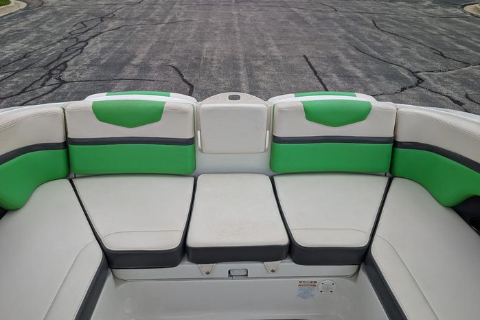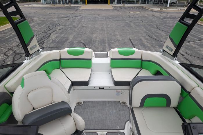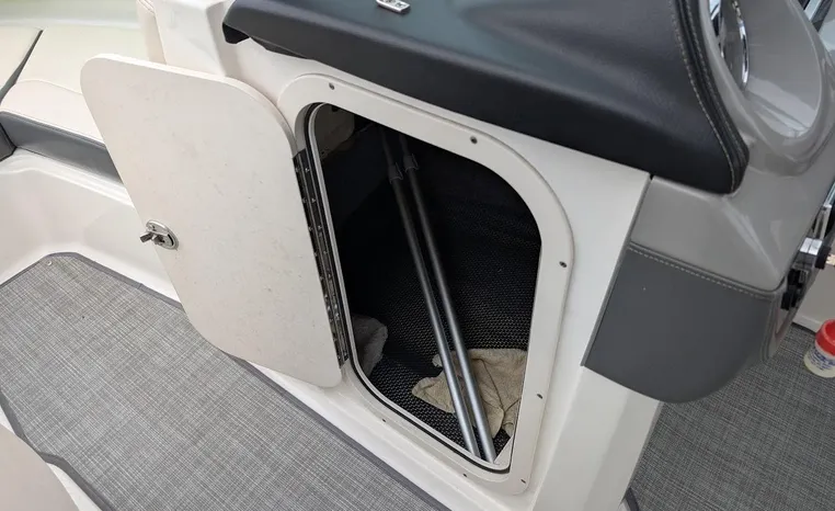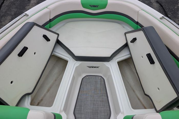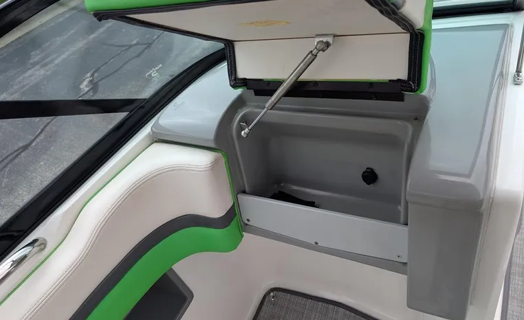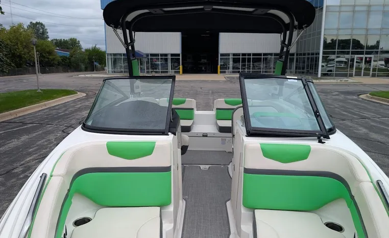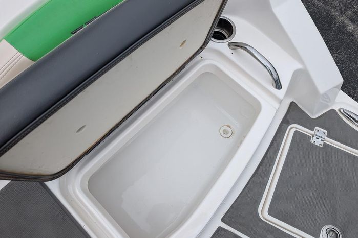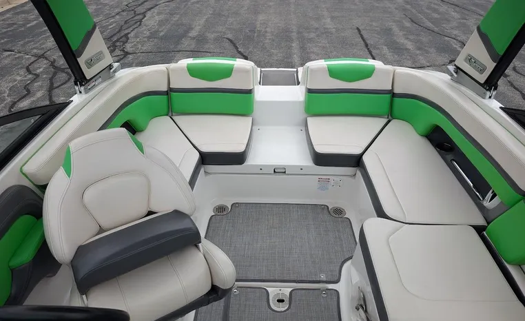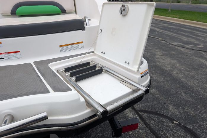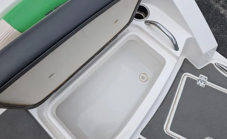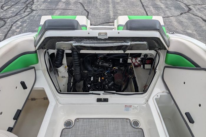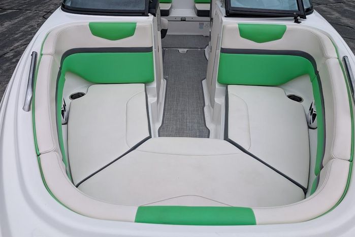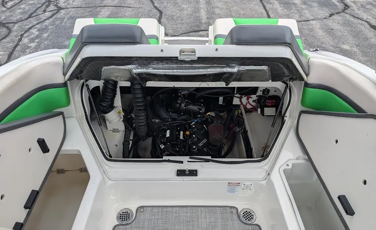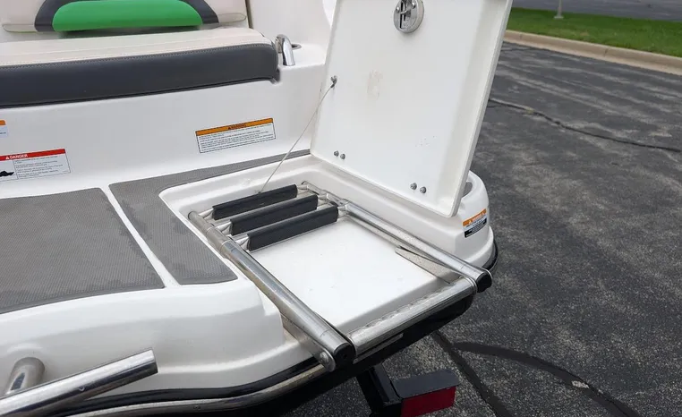The 203 VRX features the hull design, interior layout and high quality construction Chaparral is known for. In addition to the head-turning style, the VRX includes a black folding arch tower with a ski mirror standard. Everything you've come to expect from Chaparral is standard on the 203 VRX. Snap-in cockpit carpet feels good underfoot and is easily removed for cleanup. U-shaped cockpit seating with a multi-purpose Oasis port side lounge is an open invitation for family fun. You'll be amazed at the comfort and expanded capacity. The dash features a hand-stitched vinyl finish that exudes quality in every way. Power is supplied via a Rotax high output powertrain that ties into the most advanced dashboard electronics you'll find at this length and price point. This Chaparral 203 VRX also comes with a black powder coated Coyote trailer.