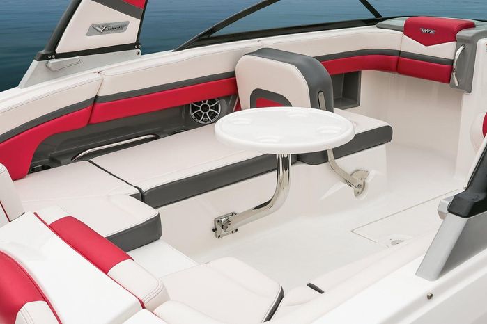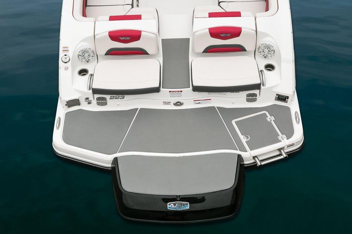 Chaparral put all the knowledge we've learned about boat building in the last 50 years into the 223 VRX. The end result is a family jet boat that's priced right, built right and exactly right for you. Twin engine performance creates a quick to plane, agile and solid ride. An open concept bow area allows you to sit, dine or recline. At the opposite end of the spectrum, swim platform area is designed for the kids to enjoy no matter what water sport is on the agenda. An integrated platform features hinged aft-facing seats, a slip-resistant non-skid mat surface and a three step boarding ladder that stows in a hideaway compartment. Standard equipment includes an arch tower and a wide assortment of color options that offer a wide variety of options.