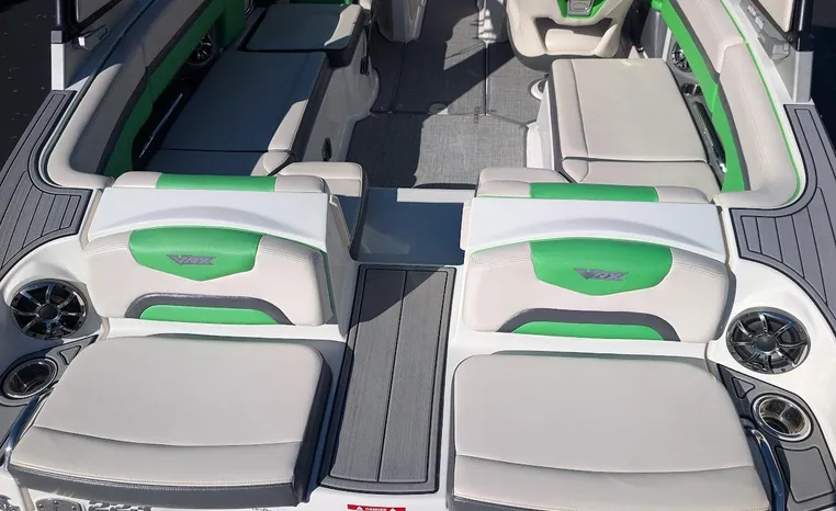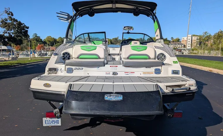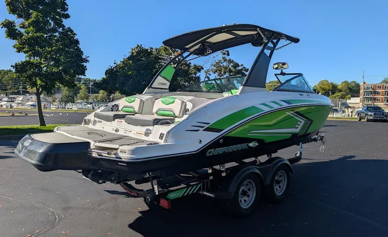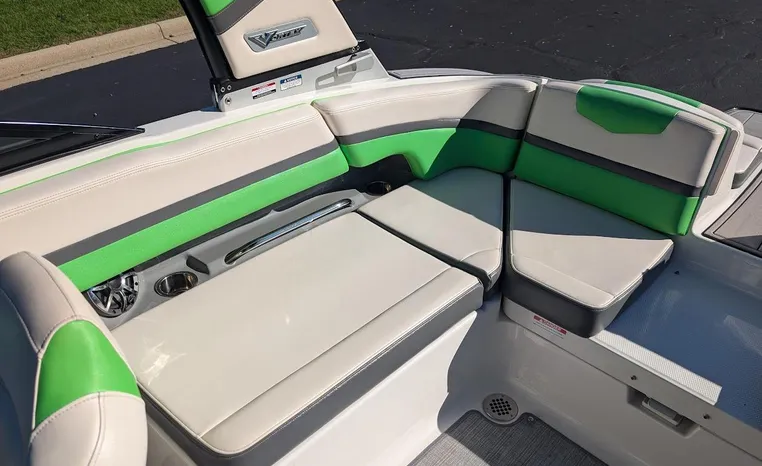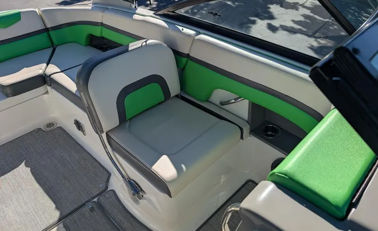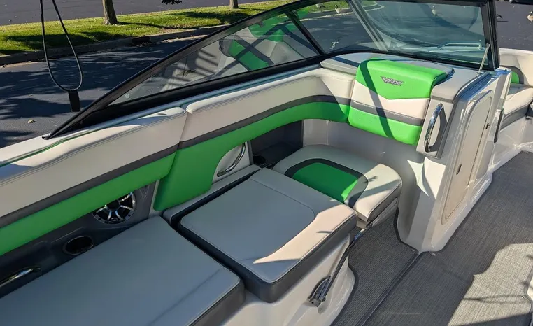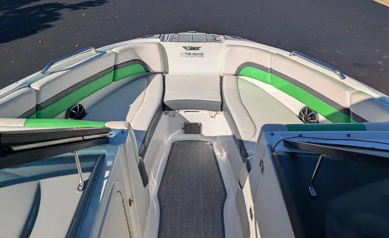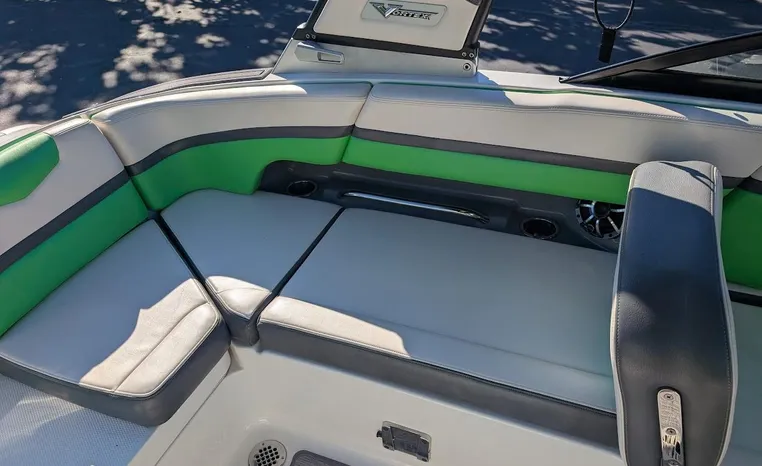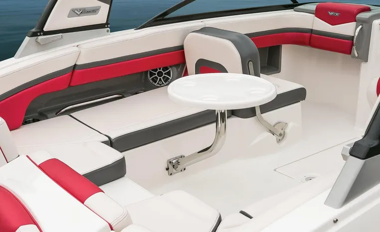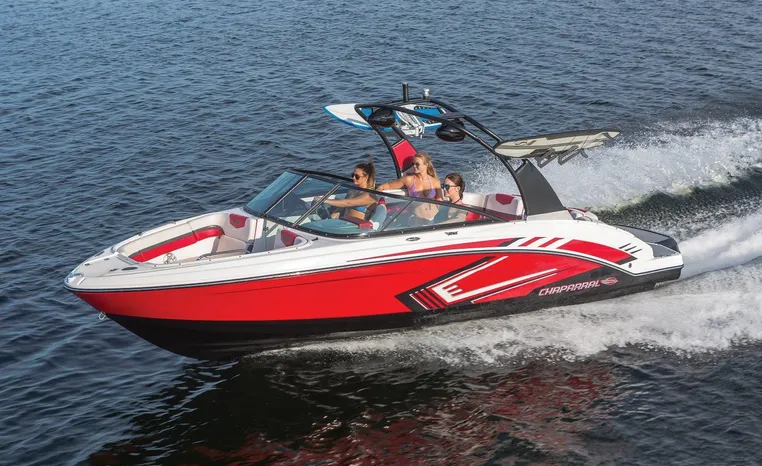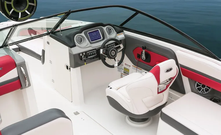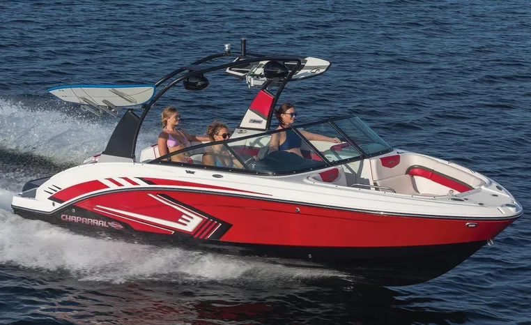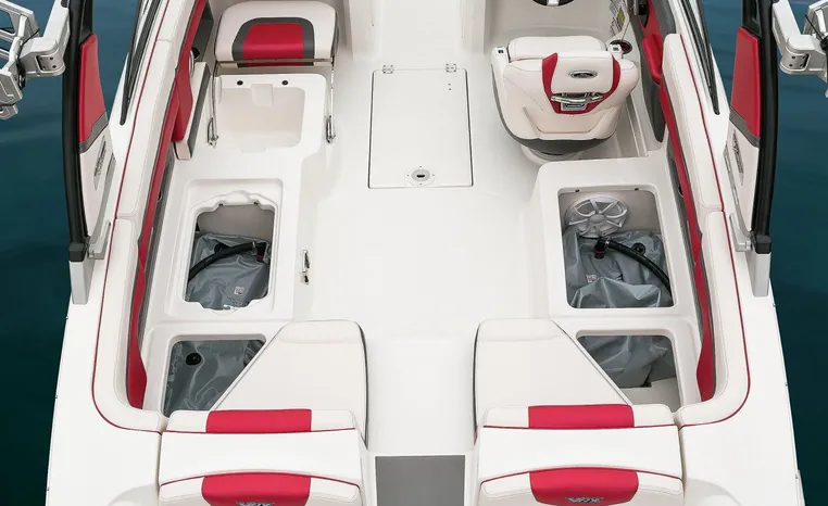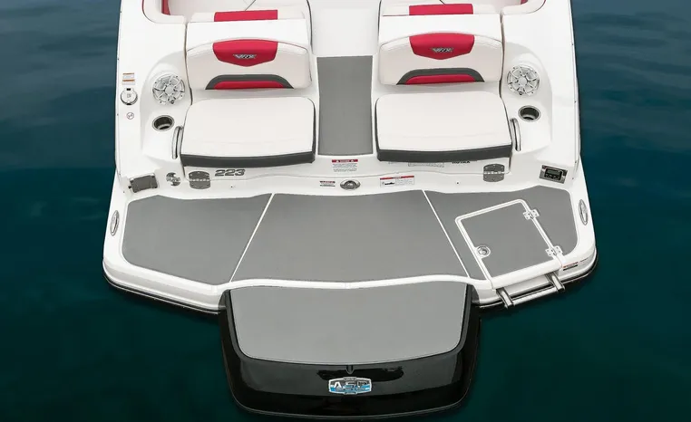 Chaparral put all the knowledge we've learned about boat building in the last 50 years into the 223 VRX. The end result is a family jet boat that's priced right, built right and exactly right for you. Twin engine performance creates a quick to plane, agile and solid ride. An open concept bow area allows you to sit, dine or recline. At the opposite end of the spectrum, swim platform area is designed for the kids to enjoy no matter what water sport is on the agenda. An integrated platform features hinged aft-facing seats, a slip-resistant non-skid mat surface and a three step boarding ladder that stows in a hideaway compartment. Standard equipment includes an arch tower and a wide assortment of color options that offer a wide variety of options.