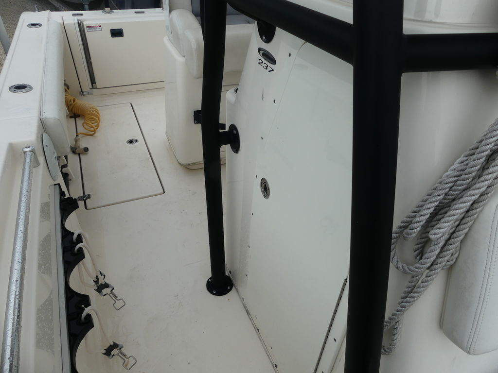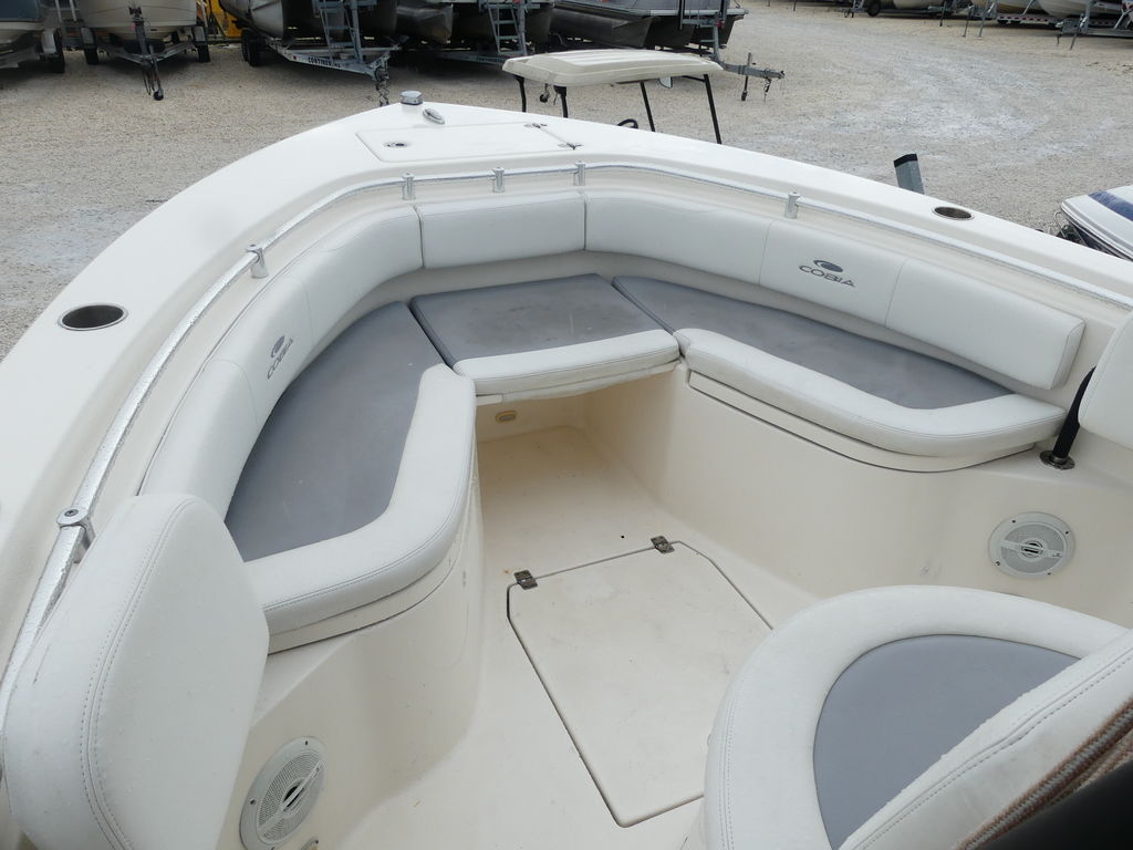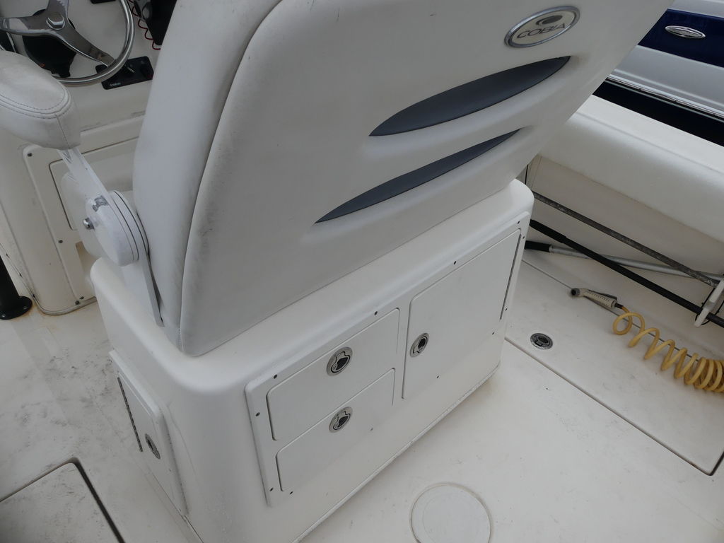 Utilizing the same high performance and super fuel efficient hull design as its bigger brothers, the 261, 277 and 296, the brand new 237 delivers offshore tournament capability with family comfort. More than enough bait will fit in the easily accessible 28 gallon livewell with Cobia’s keep-alive aeration system and your catch can be iced down in two massive in-deck fish boxes. Blue LED cockpit lighting, a finished console interior and a contemporary helm area add style to all the substance. The 237 will make any day on the water an efficient, convenient and pleasurable experience.