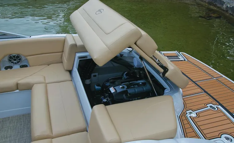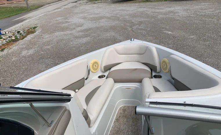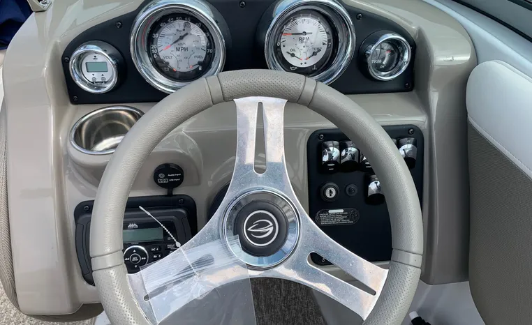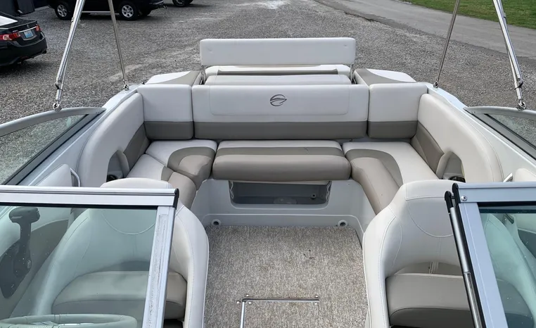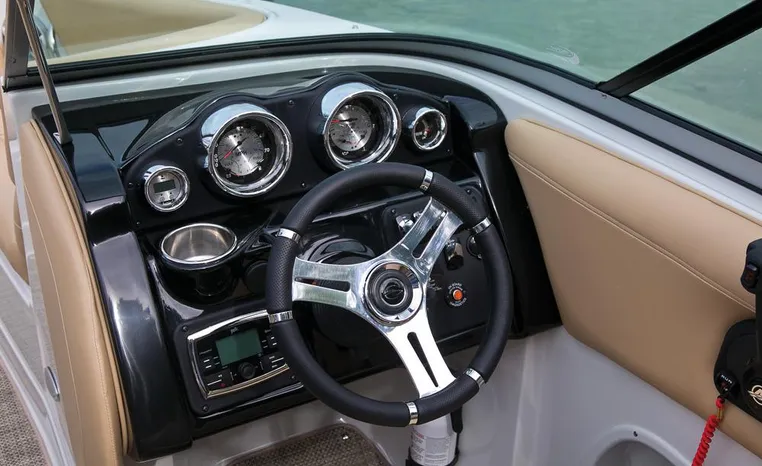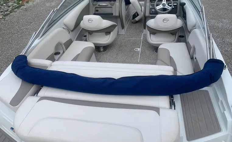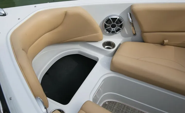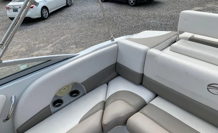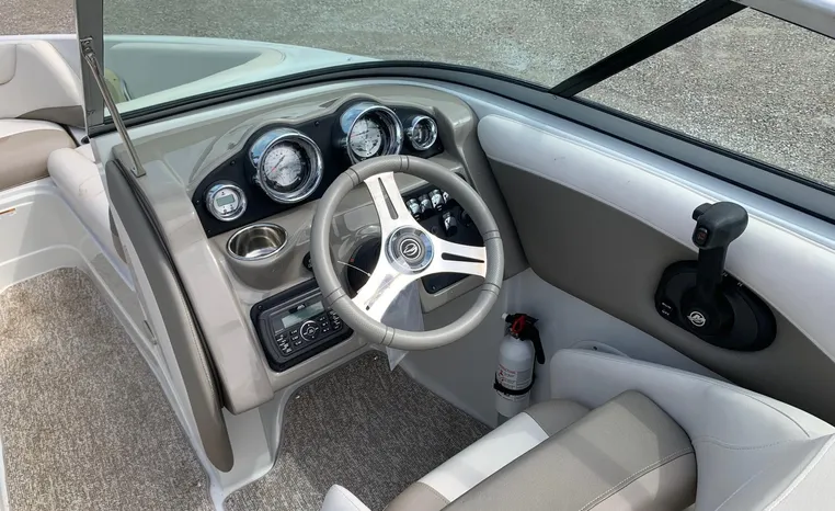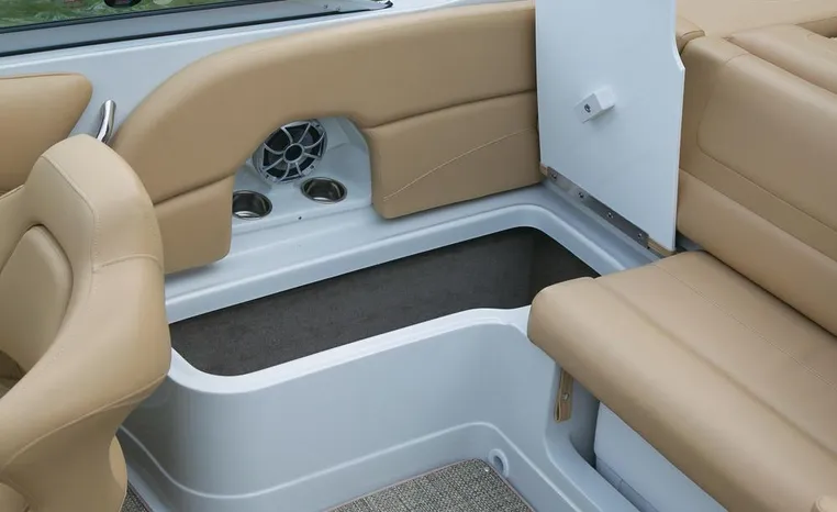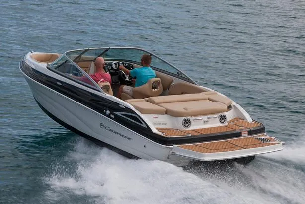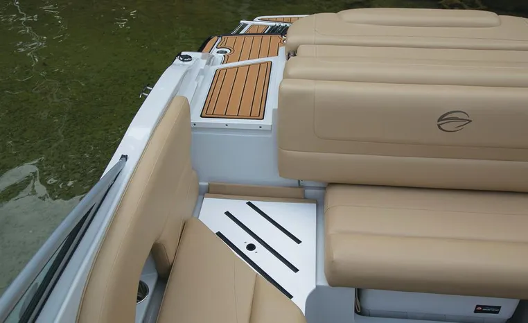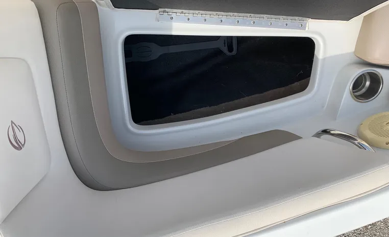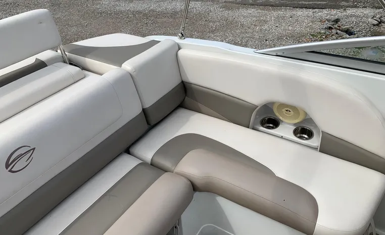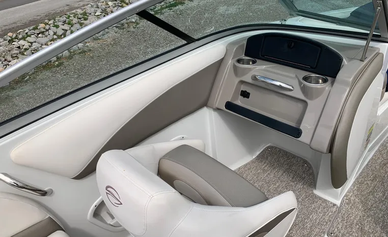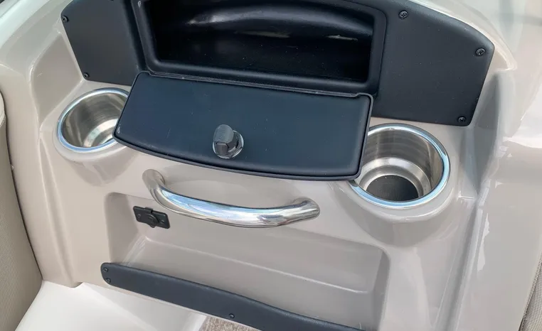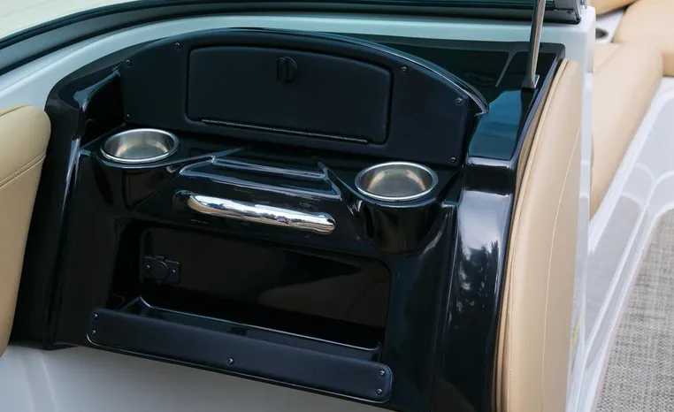 The Crownline design team has created a twenty-foot boat that has the look and feel of a MUCH larger bowrider, while maintaining a sleek, sexy profile that is accentuated by the standard inverse razor gelcoat, this boat screams “Crownline”. And speaking of racing across the water, the 205 SS was built on Crownline’s proven, patented F.A.S.T. Tab hull design which enhances the distinctive “sports car” styling, AND insures a safe and comfortable ride by increasing planning efficiency and stability in high speed turns. Standard features include bimini top, bow and cockpit canvas, highlander snap-in cockpit carpet, extended swim platform with soft touch mat and more. And check out the stainless steel cupholders, grab handles, rubrail, windshield lock and six 6” pull up cleats. Also standard is the Kicker marine stereo and six Wet Sounds speakers (two at the transom are part of Crownline’s Social Swim Transom Design™.
