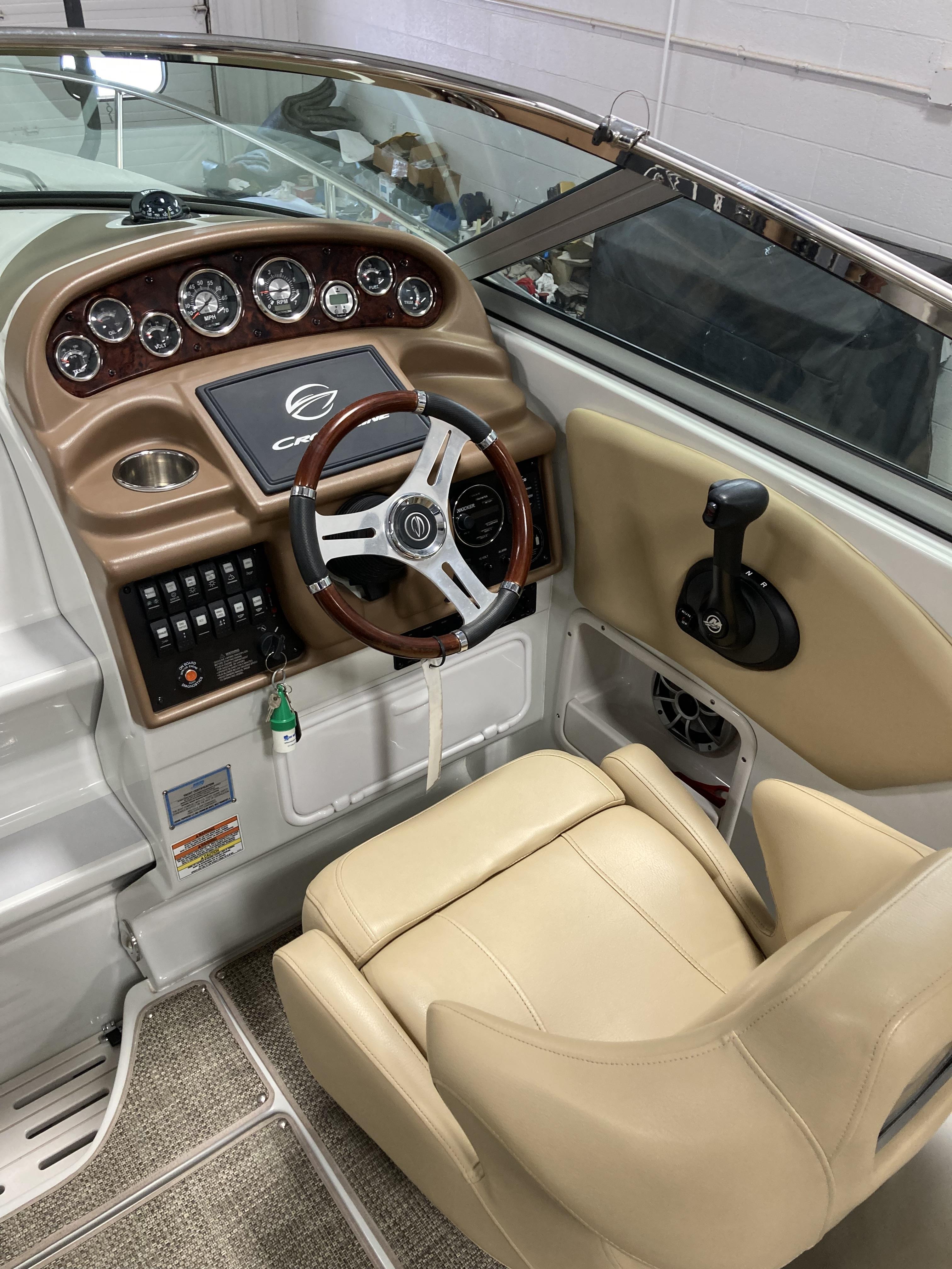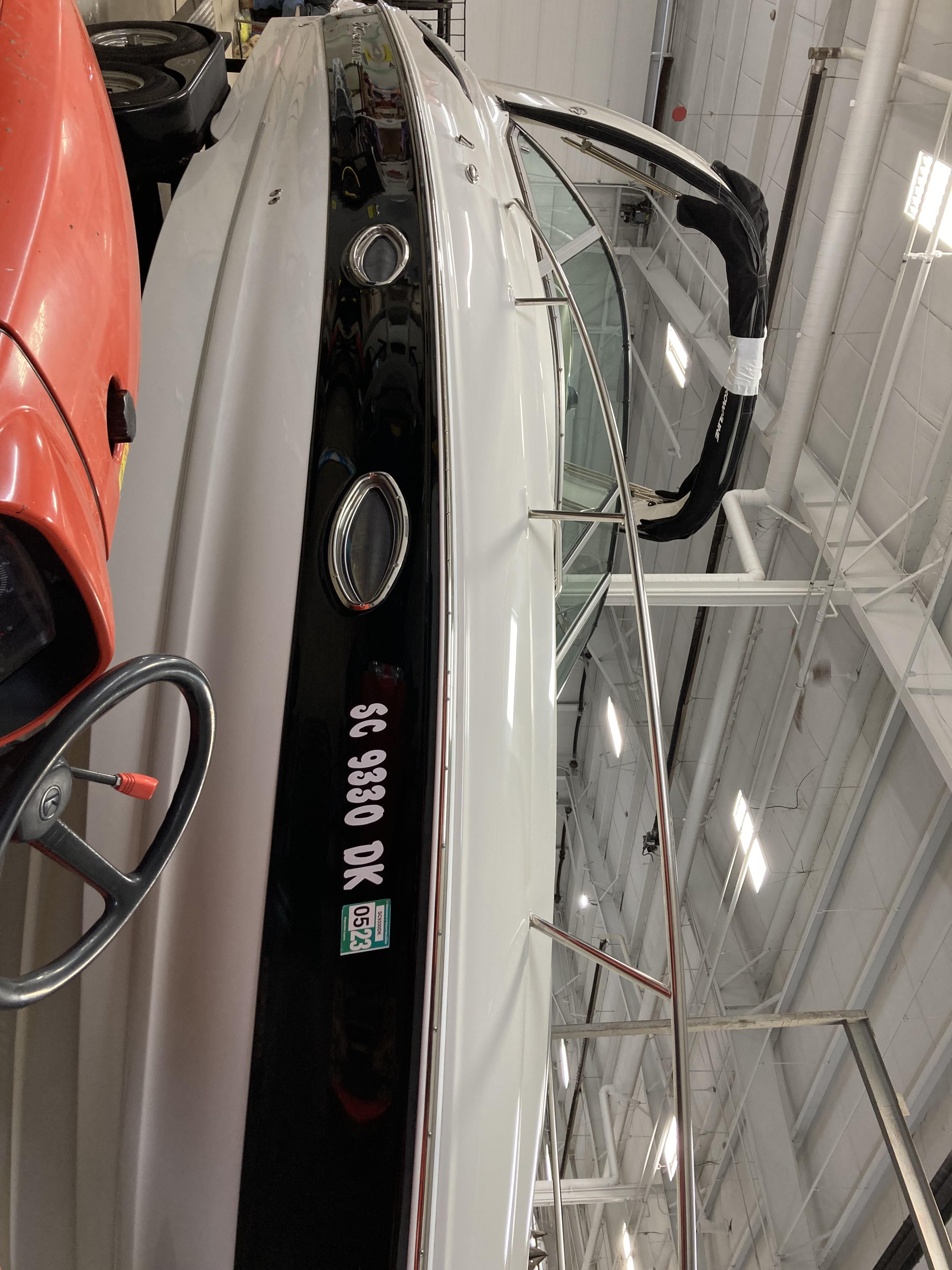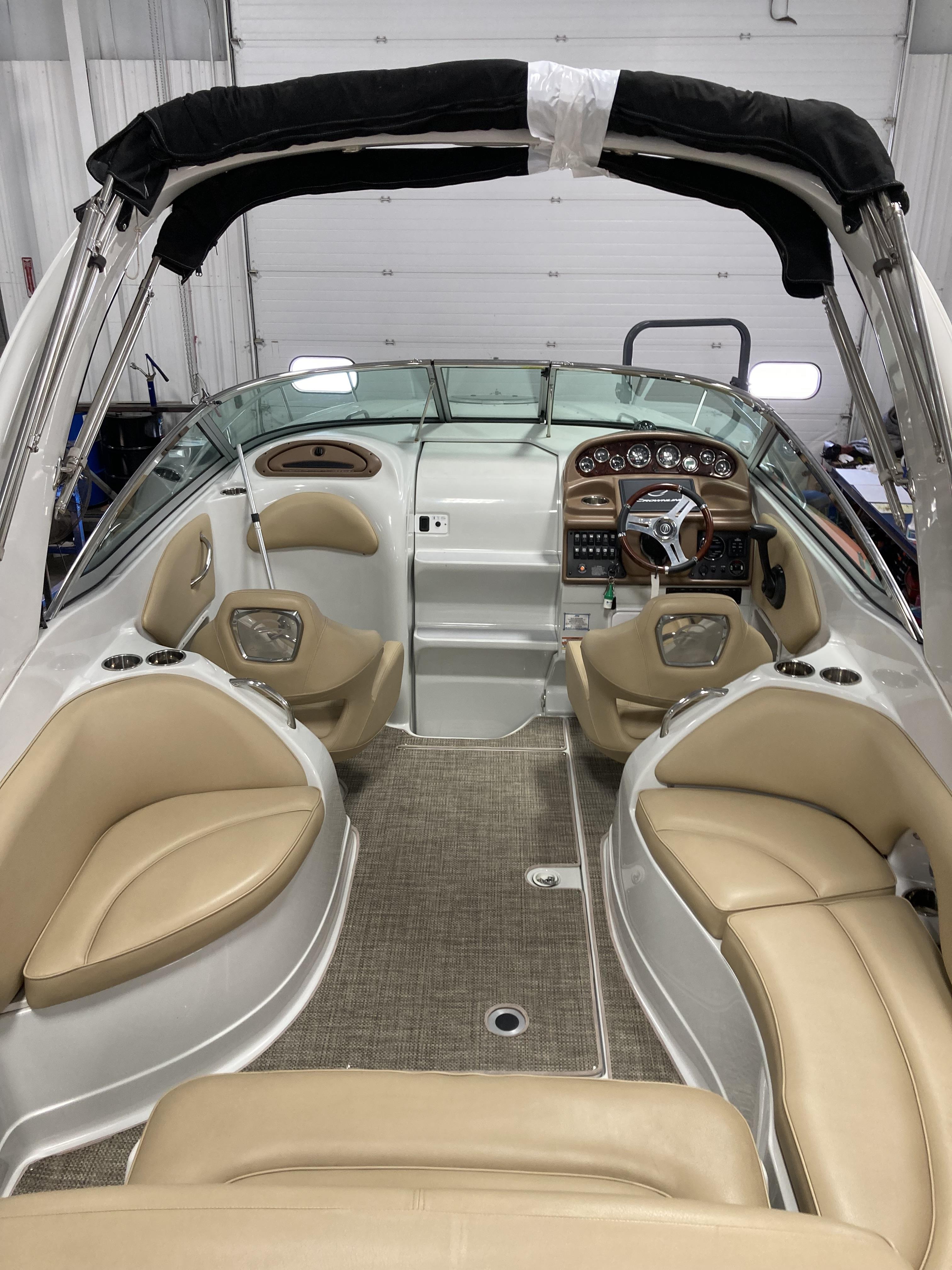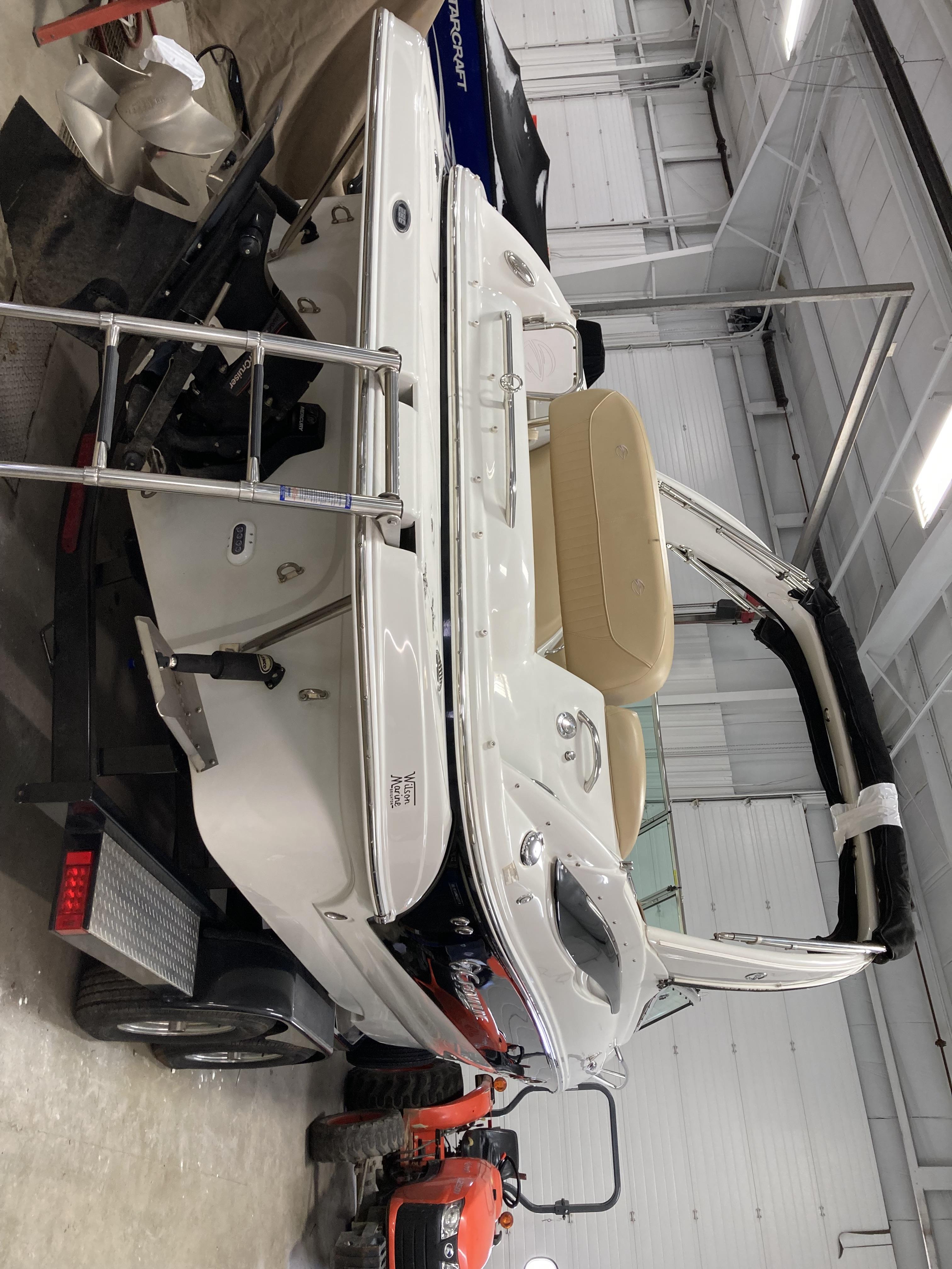 Boat has only 32 hours and a FRESH WATER boat! Boat is in great condition! Boat comes with tandem axle trailer, bow and cockpit covers, full fiberglass arch with bimini top, rear swim deck with ladder, bluetooth stereo and speakers. full seagrass snap-in flooring, fridge, microwave and sink, front bow rail and so much more!