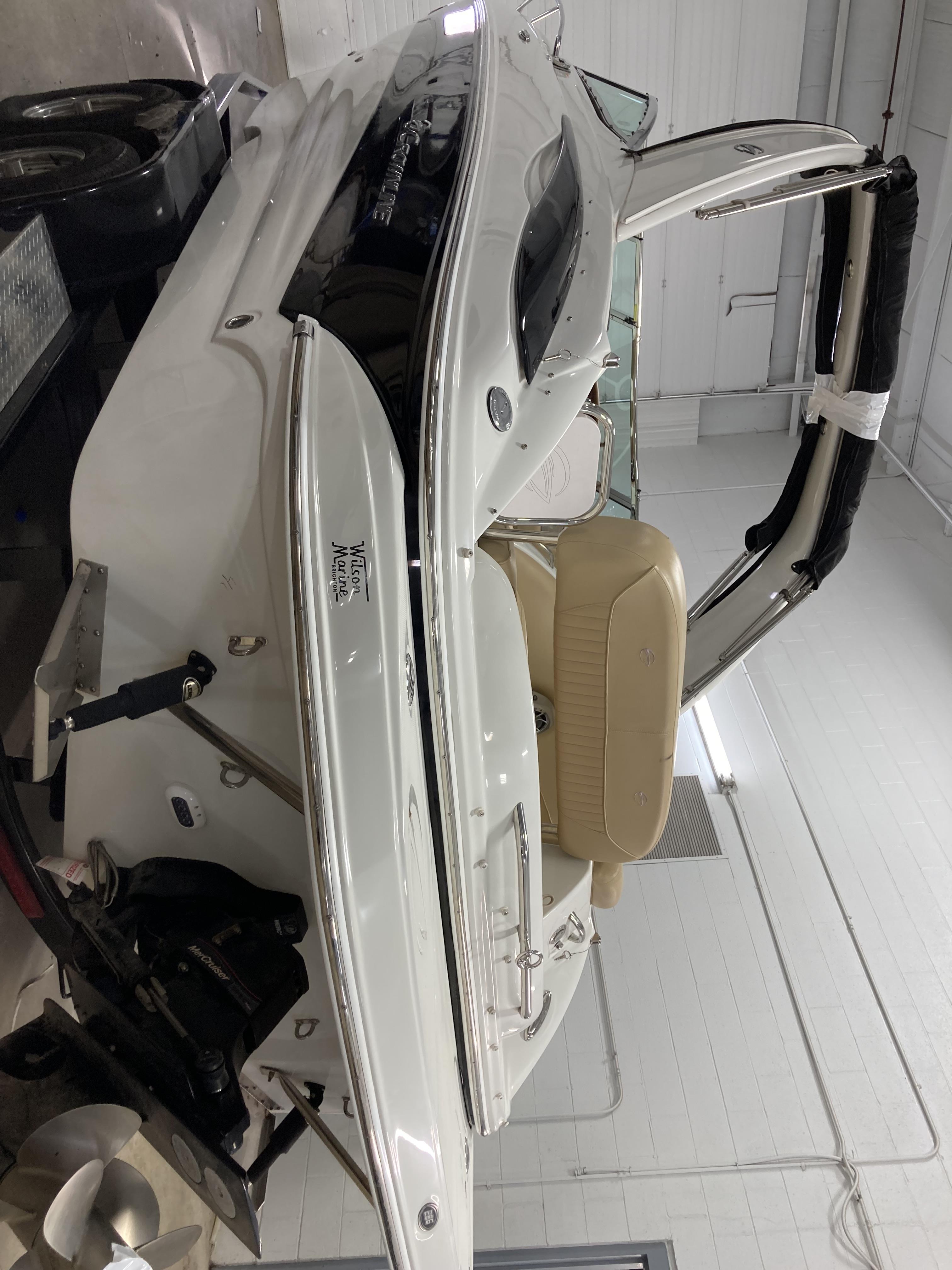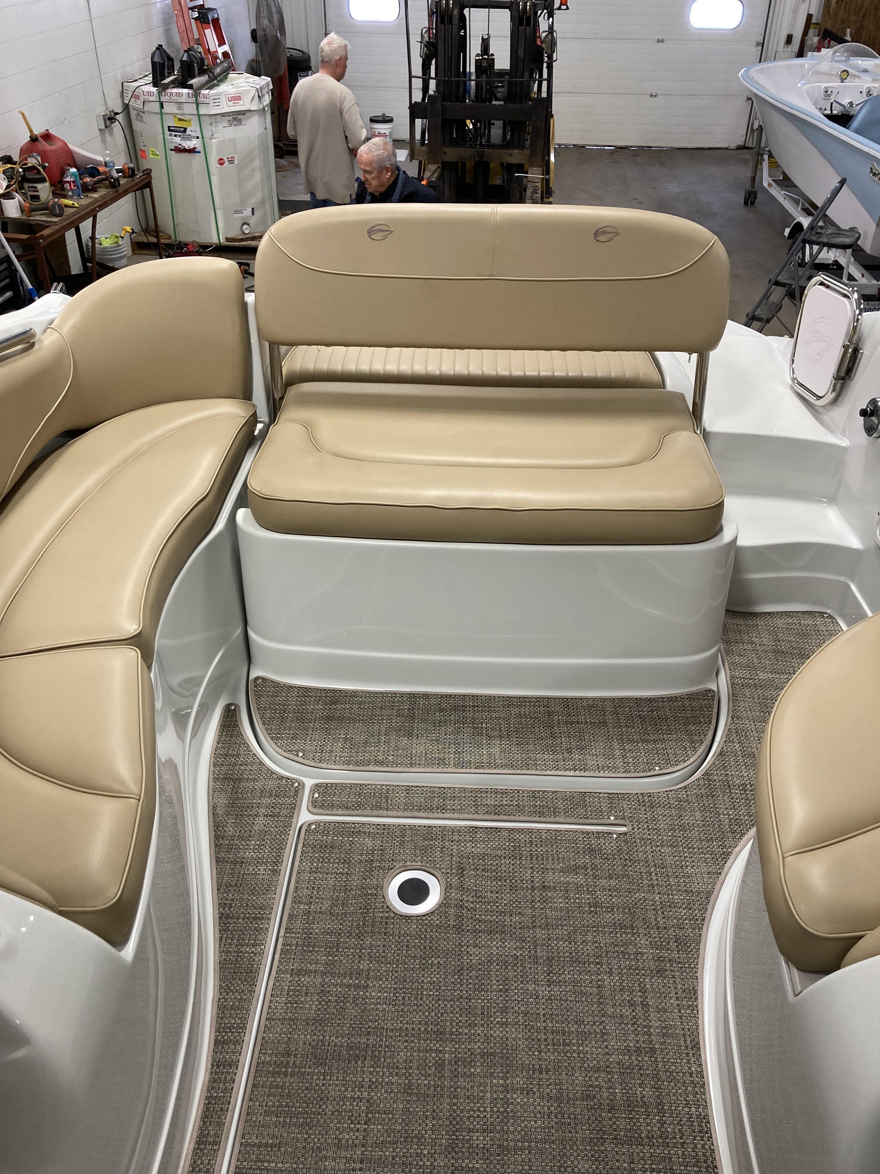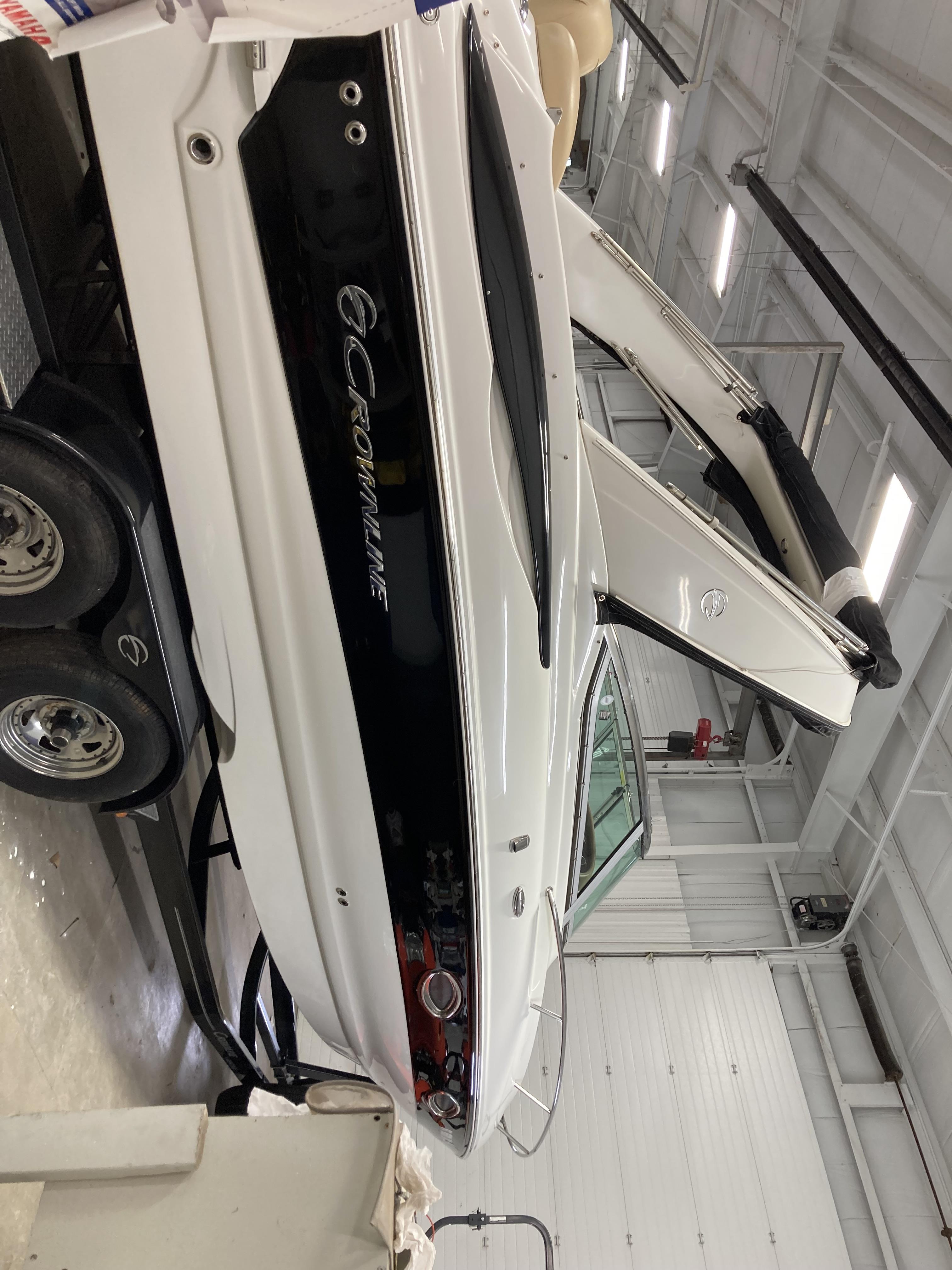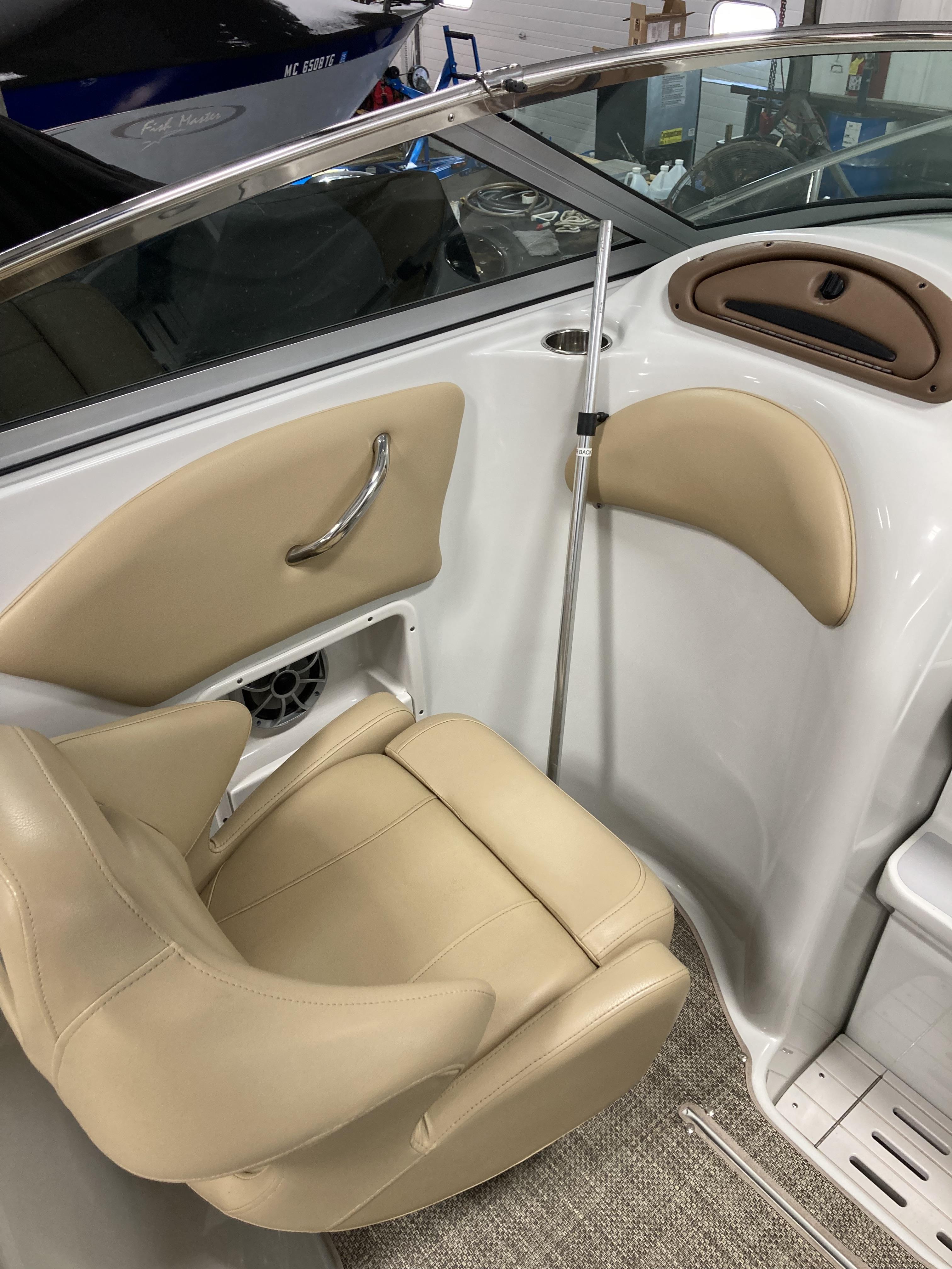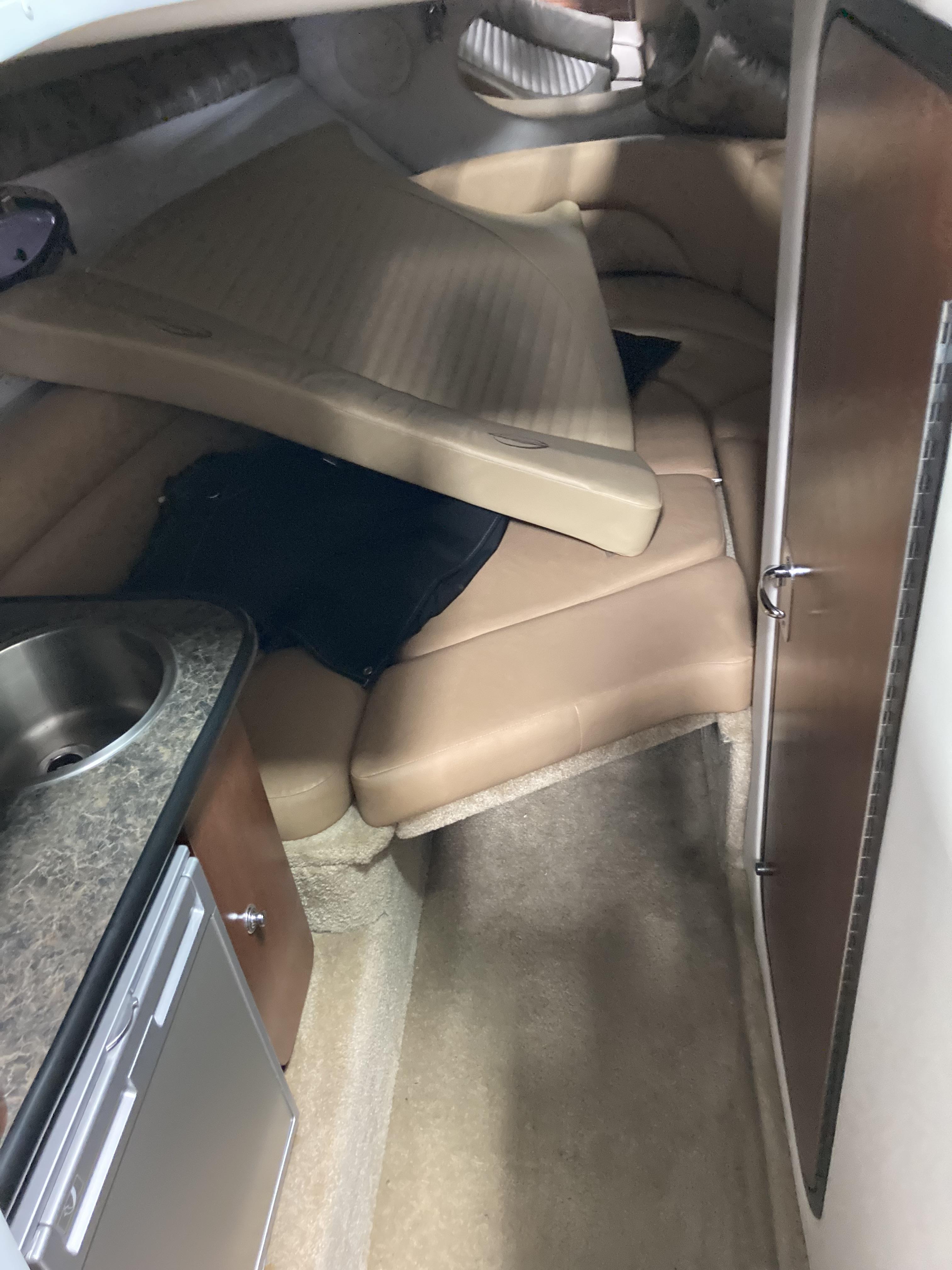 Boat has only 32 hours and a FRESH WATER boat! Boat is in great condition! Boat comes with tandem axle trailer, bow and cockpit covers, full fiberglass arch with bimini top, rear swim deck with ladder, bluetooth stereo and speakers. full seagrass snap-in flooring, fridge, microwave and sink, front bow rail and so much more!