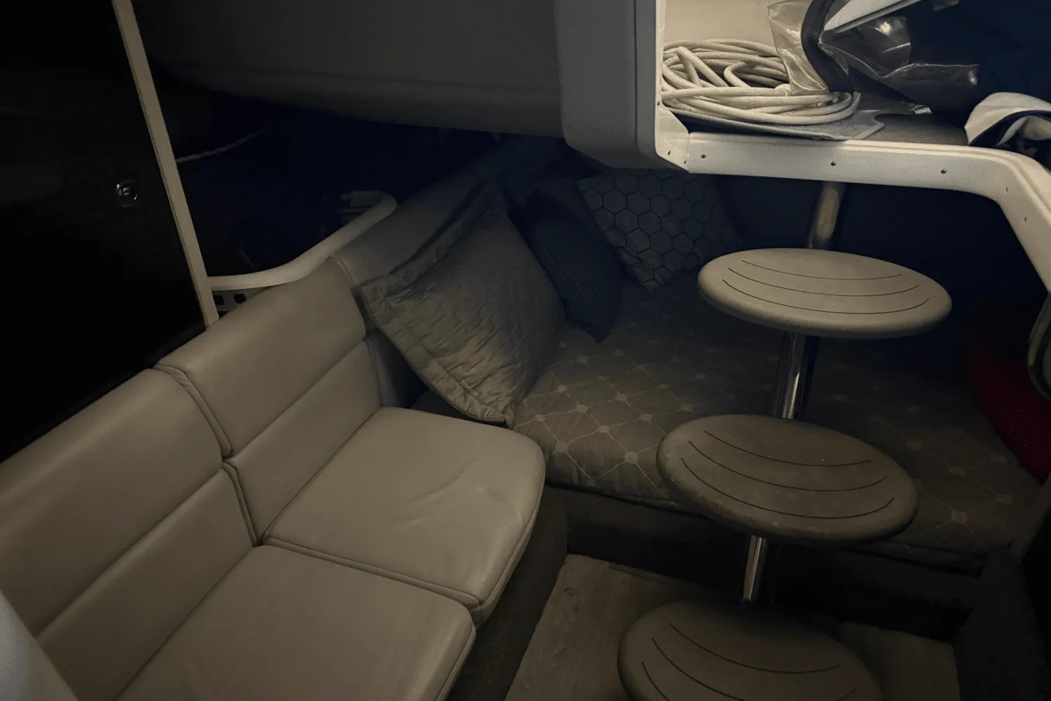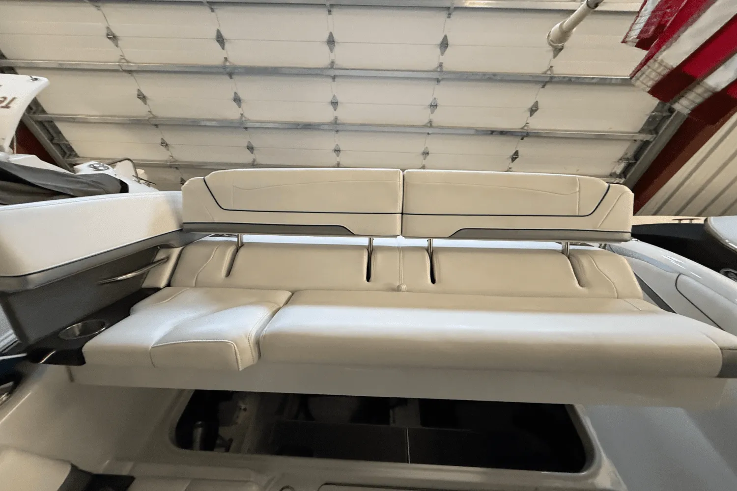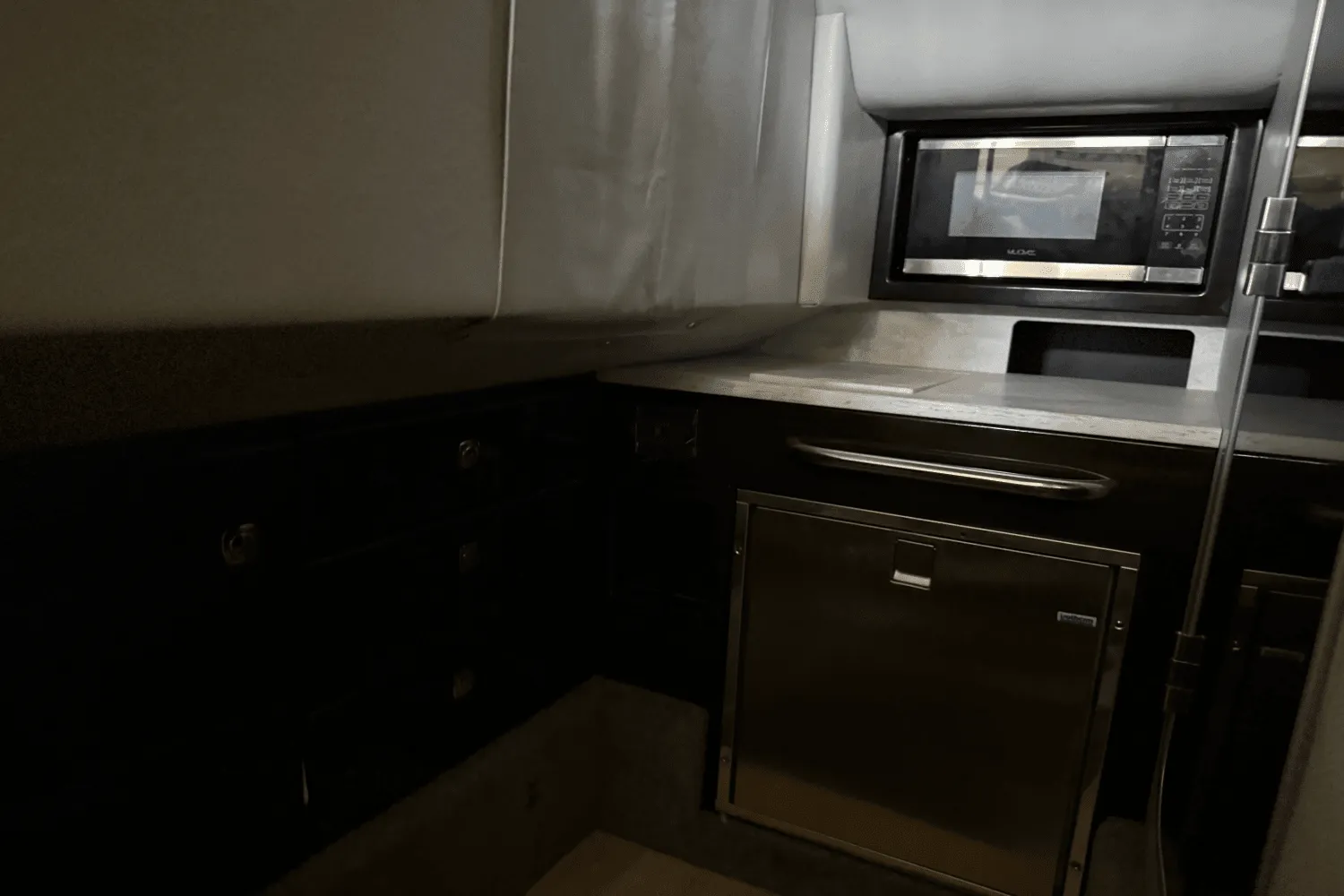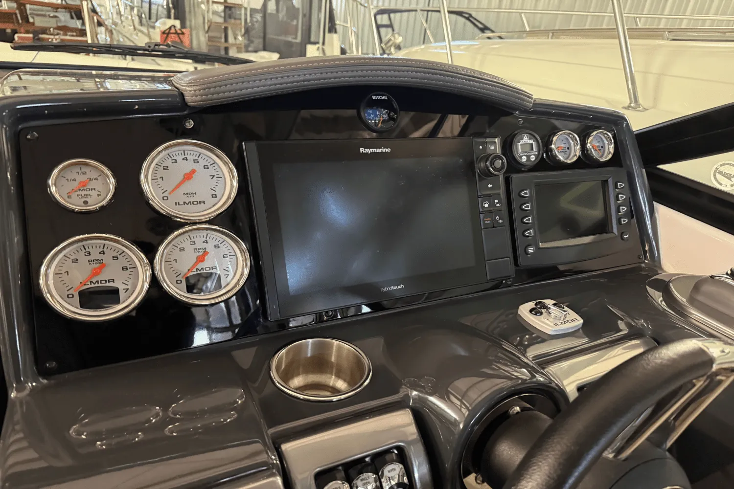 A quality boat with plenty of eye appeal, the formula 350 Crossover bowrider (CBR) bridges the gap between a high-performance sportboat and luxury express cruiser. The 350 is an impressive product, she combines the overnight accommodations of a cruiser, the huge seating area forward of a deckboat, and the cabin accommodations of an express boat. it's a clever combination and the sheer size of this giant bowrider makes her the ultimate day boat. With the bow walk-thru offset to port, the cabin is entered from the helm area. Stepping below, immediately to starboard is a posh double-wide lounge with storage above. An enclosed head with Corian counter and VacuFlush head is forward of the lounge, and a centerline galley with microwave, concealed sink, and pullout refrigerator is all the way forward. The double-size aft berth has sitting headroom. In the cockpit, the U-shaped lounge seats six and its aft section converts to a recliner for two. The aft-facing transom lounge converts to a full-length sun pad. Call today to schedule a showing.