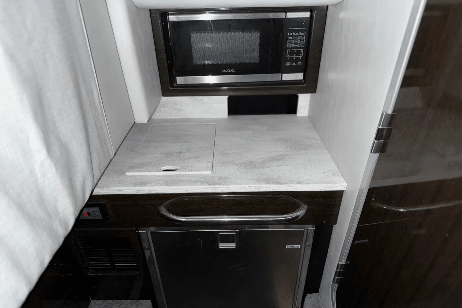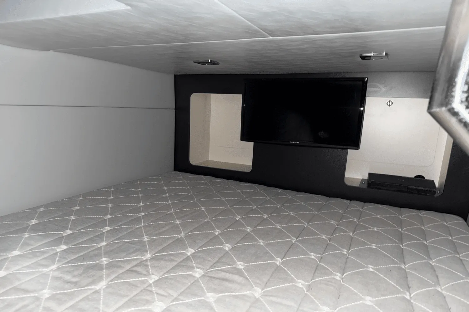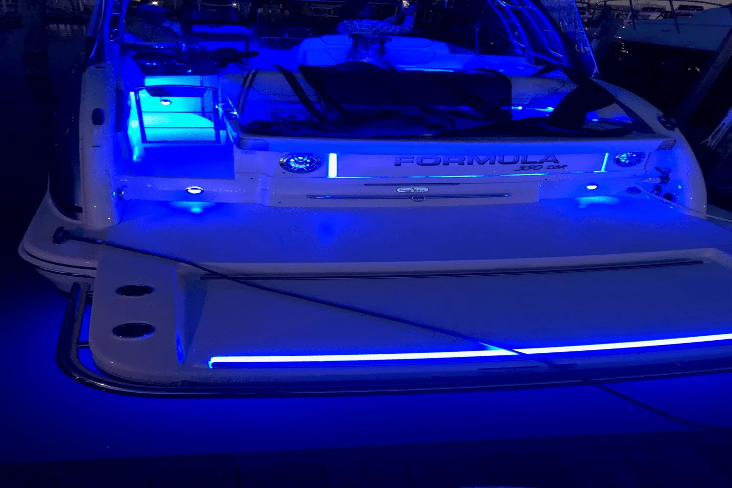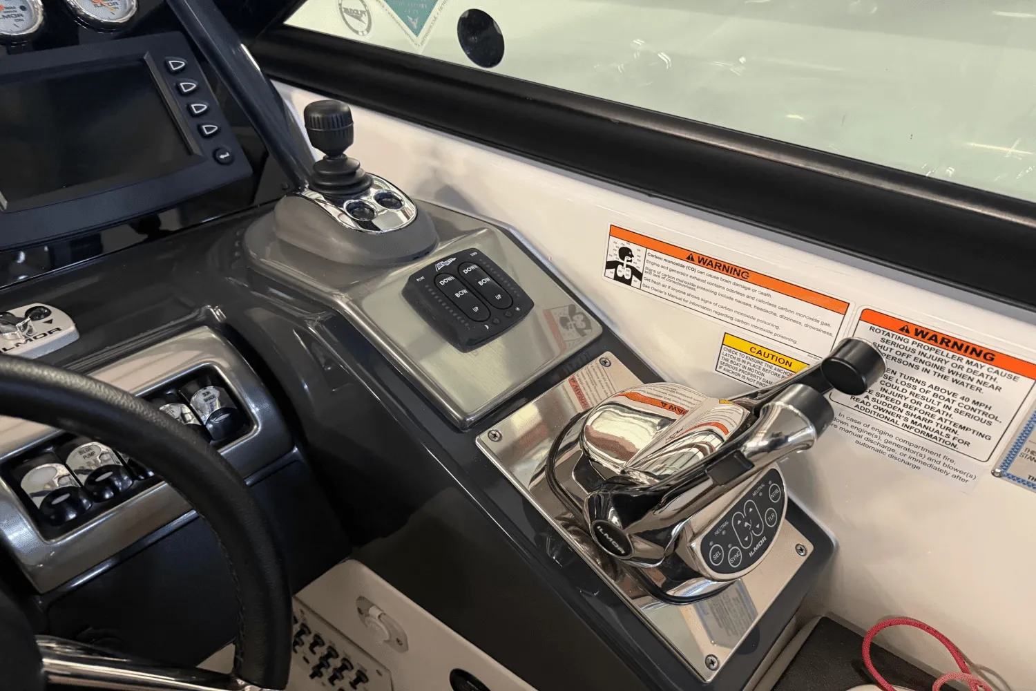 A quality boat with plenty of eye appeal, the formula 350 Crossover bowrider (CBR) bridges the gap between a high-performance sportboat and luxury express cruiser. The 350 is an impressive product, she combines the overnight accommodations of a cruiser, the huge seating area forward of a deckboat, and the cabin accommodations of an express boat. it's a clever combination and the sheer size of this giant bowrider makes her the ultimate day boat. With the bow walk-thru offset to port, the cabin is entered from the helm area. Stepping below, immediately to starboard is a posh double-wide lounge with storage above. An enclosed head with Corian counter and VacuFlush head is forward of the lounge, and a centerline galley with microwave, concealed sink, and pullout refrigerator is all the way forward. The double-size aft berth has sitting headroom. In the cockpit, the U-shaped lounge seats six and its aft section converts to a recliner for two. The aft-facing transom lounge converts to a full-length sun pad. Call today to schedule a showing.