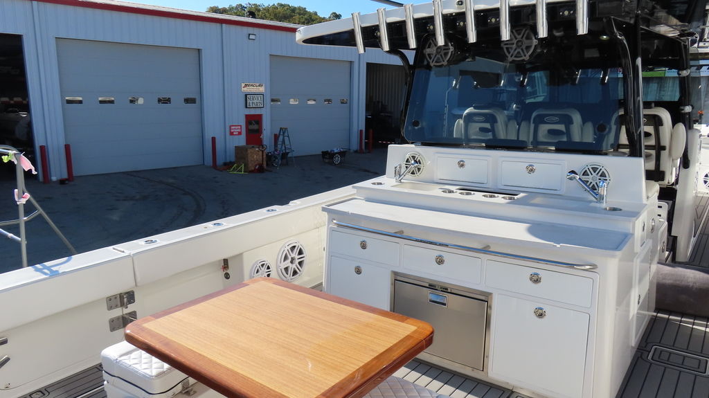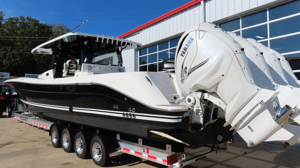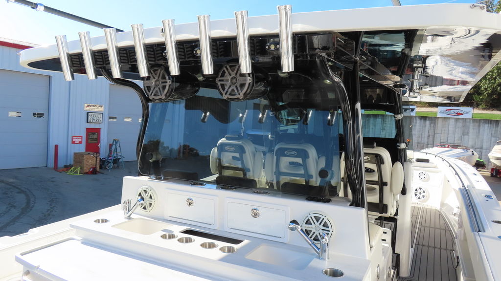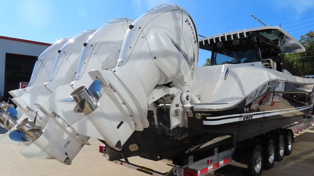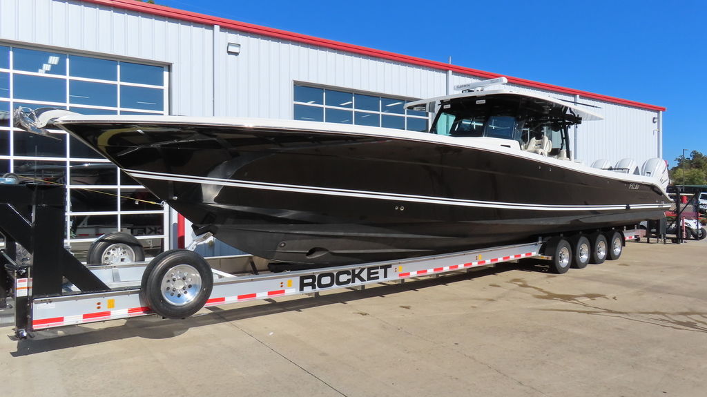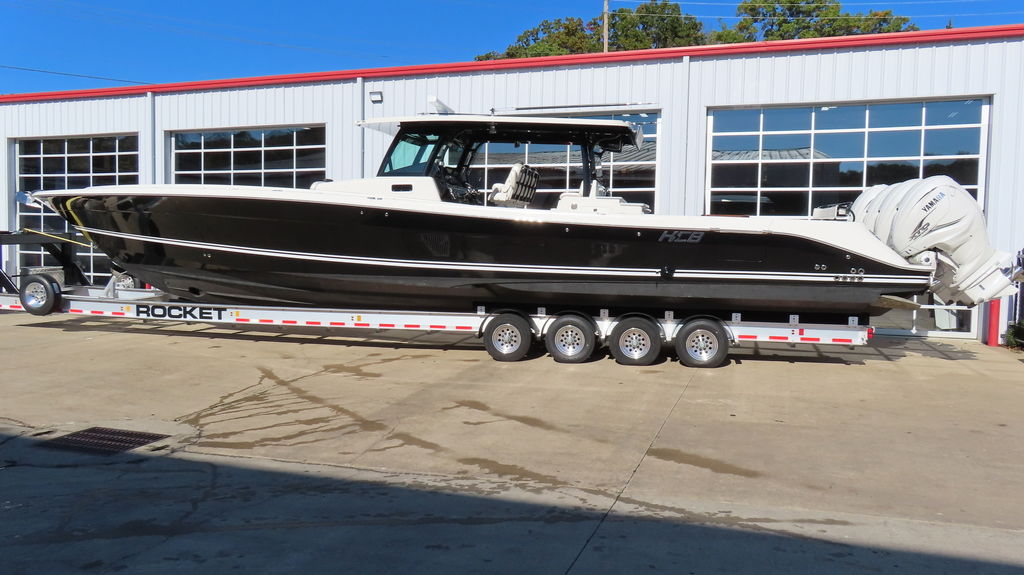 2018 HCB 53 powered by quad Yamaha 425, Generator, Seakeeper, 3 Garmin GPS, Deck Fridge, Deck sink, Sea deck flooring, Joystick control, Dash blowers, VHF radio, Garmin radar Huge JL audio and Fusion sound system, Full cabin, Electric head, Cabin Sink, Cabin Shower, Cabin Fridge, AC, Microwave, Flat panel TV, Rod holders, Baitwells, fishboxes Rocket aluminum trailer included, This one is loaded with options!