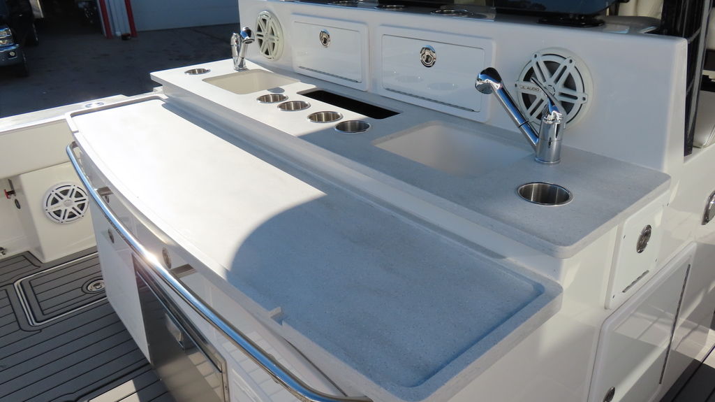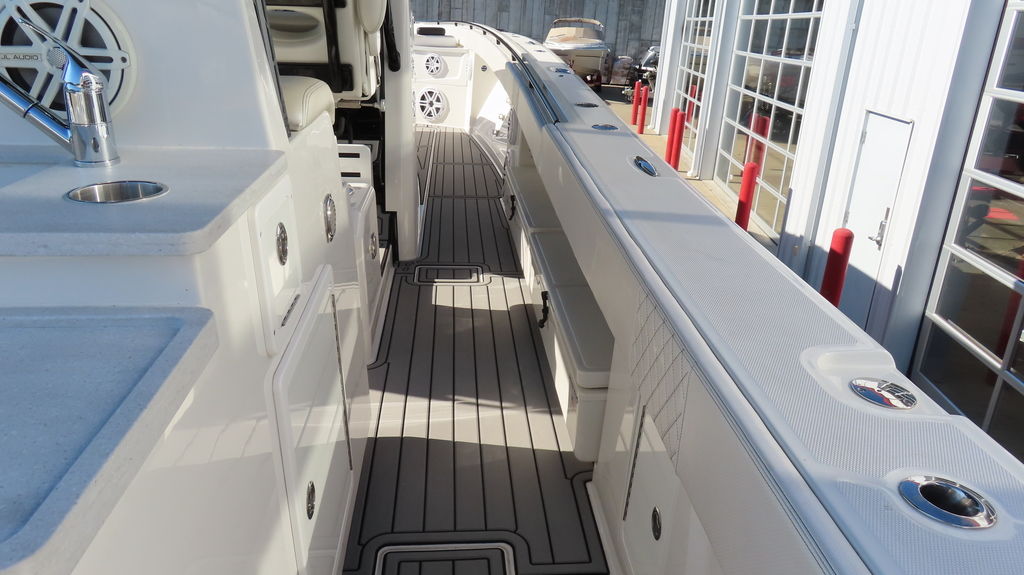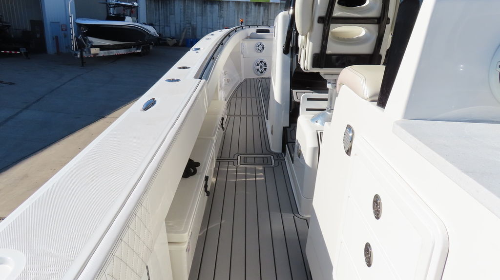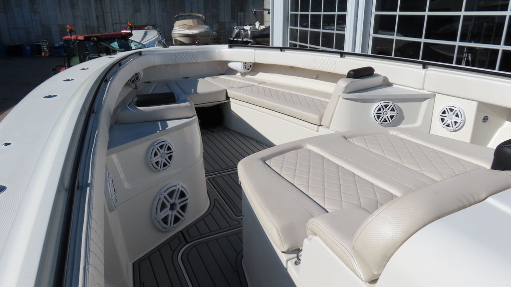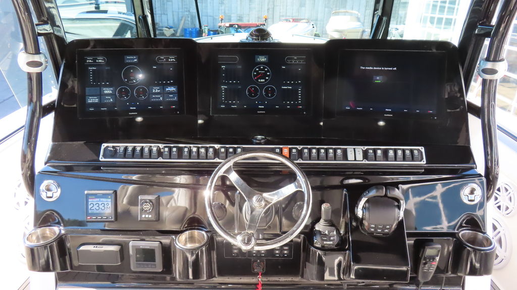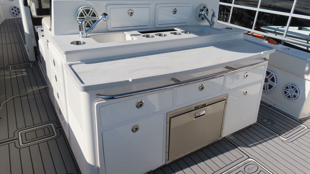 2018 HCB 53 powered by quad Yamaha 425, Generator, Seakeeper, 3 Garmin GPS, Deck Fridge, Deck sink, Sea deck flooring, Joystick control, Dash blowers, VHF radio, Garmin radar Huge JL audio and Fusion sound system, Full cabin, Electric head, Cabin Sink, Cabin Shower, Cabin Fridge, AC, Microwave, Flat panel TV, Rod holders, Baitwells, fishboxes Rocket aluminum trailer included, This one is loaded with options!