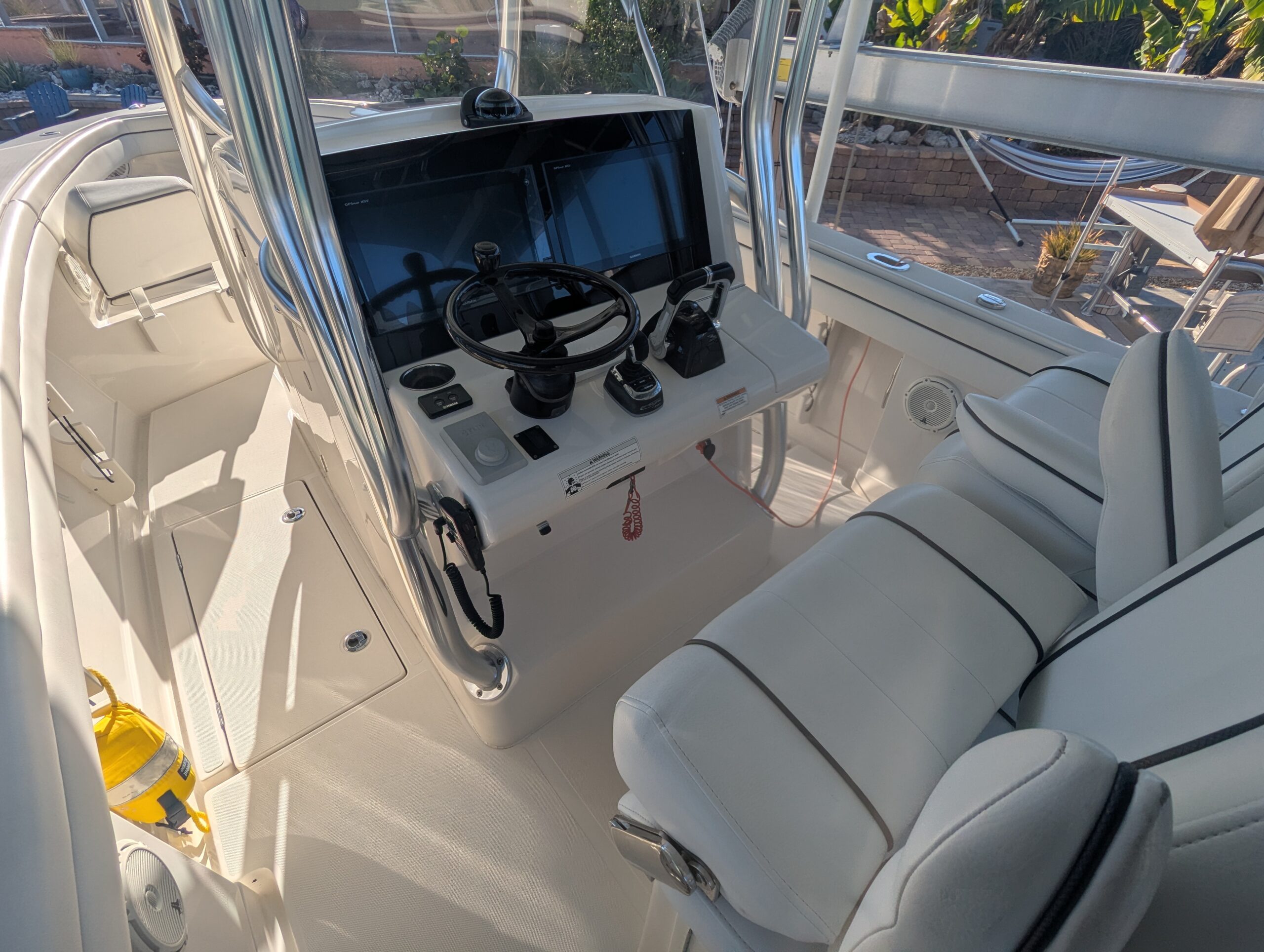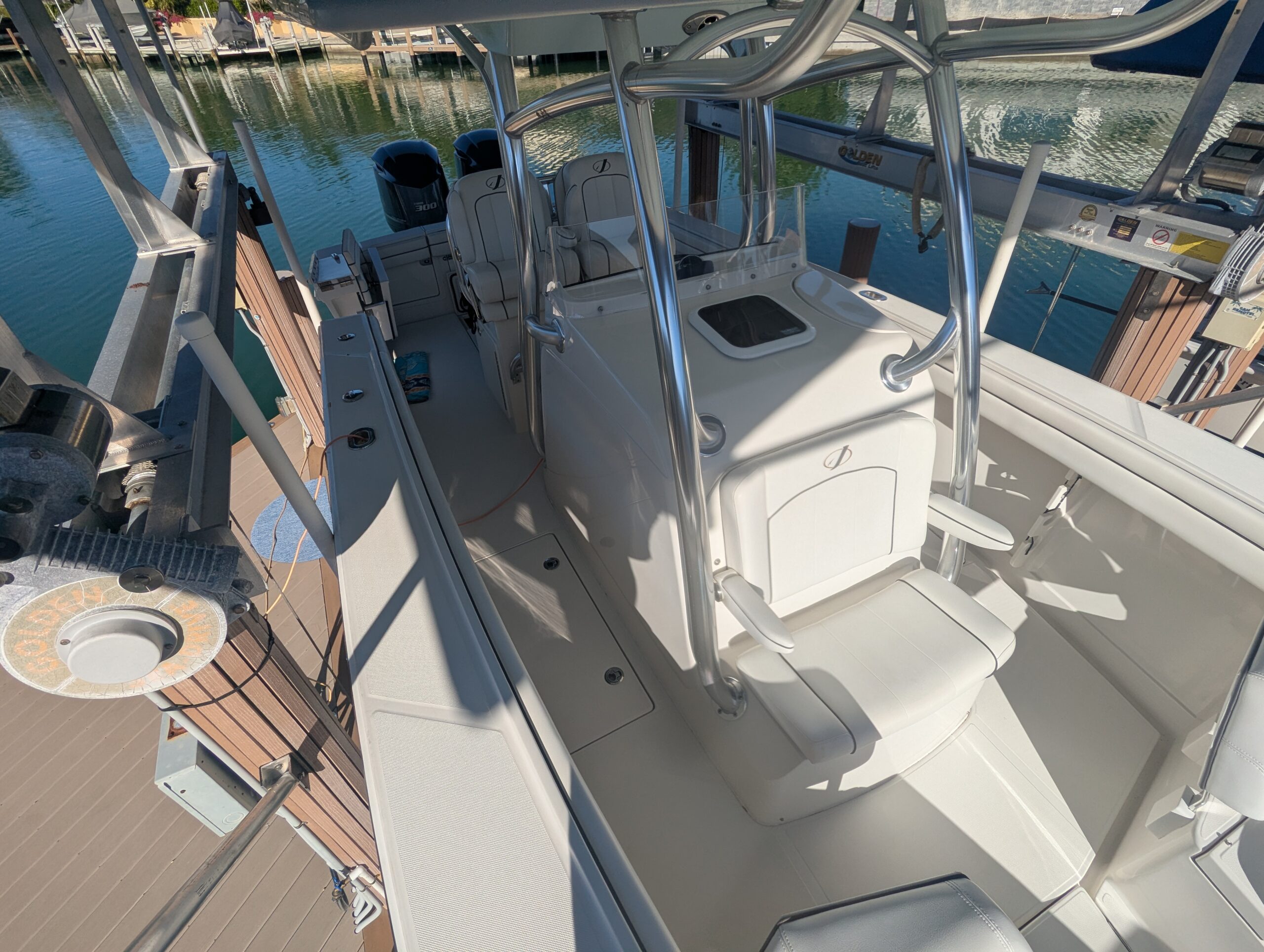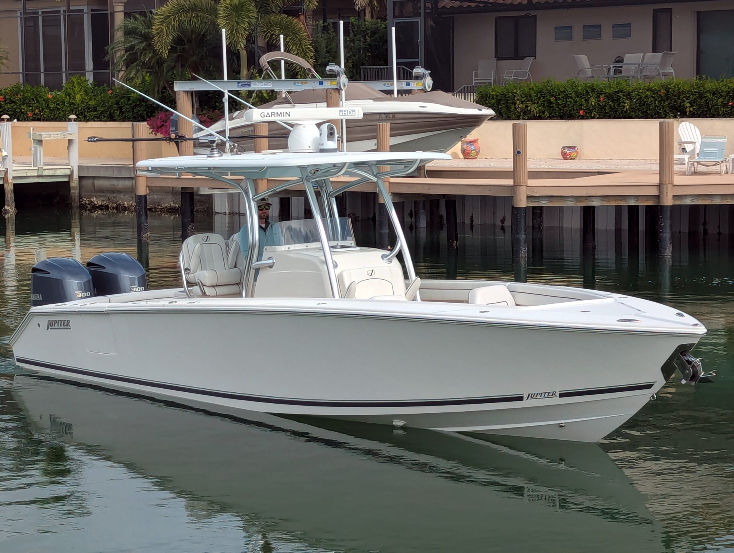 Powered by twin Yamaha 300 HP outboards with approximately 360 hours, this boat offers strong performance, reliability, and efficiency. With a comprehensive electronics package and extensive factory and custom upgrades, this Jupiter is truly turn-key and ready to go.