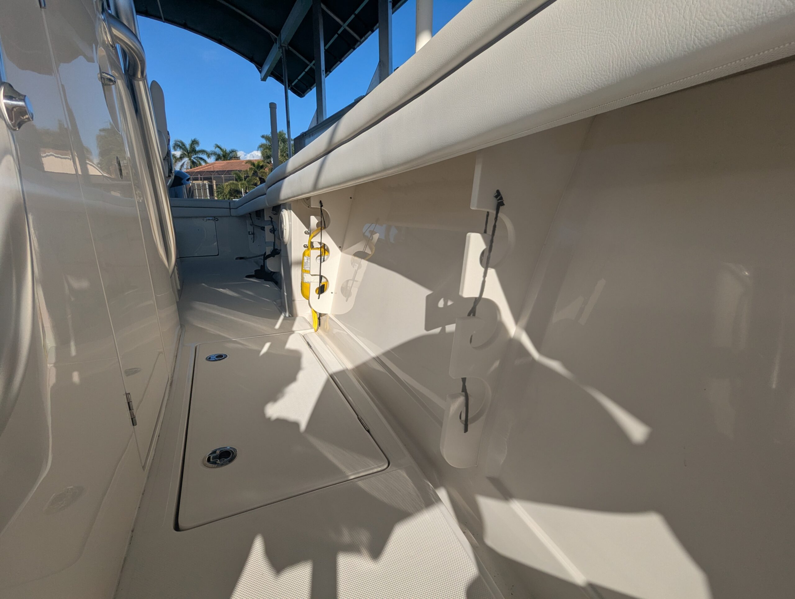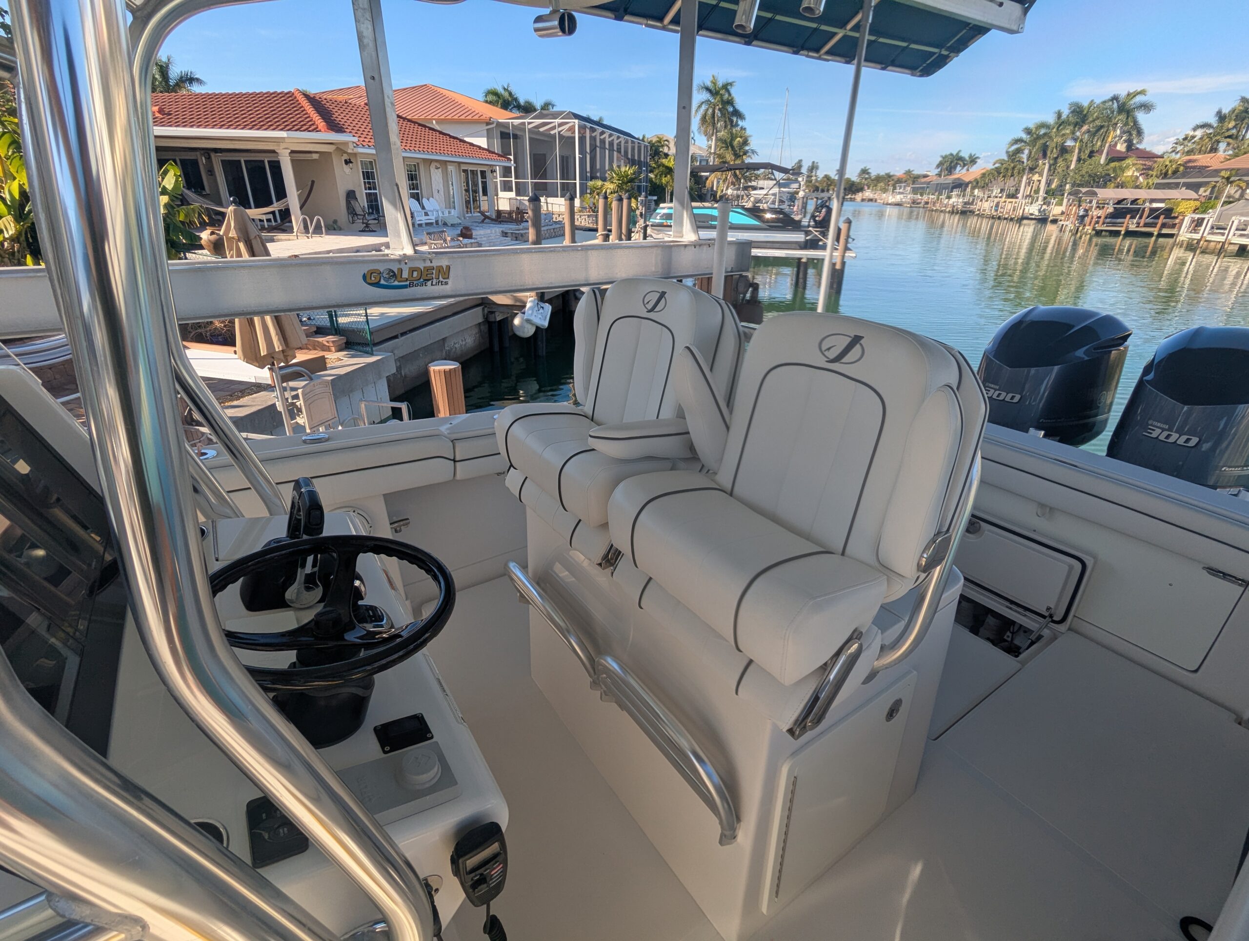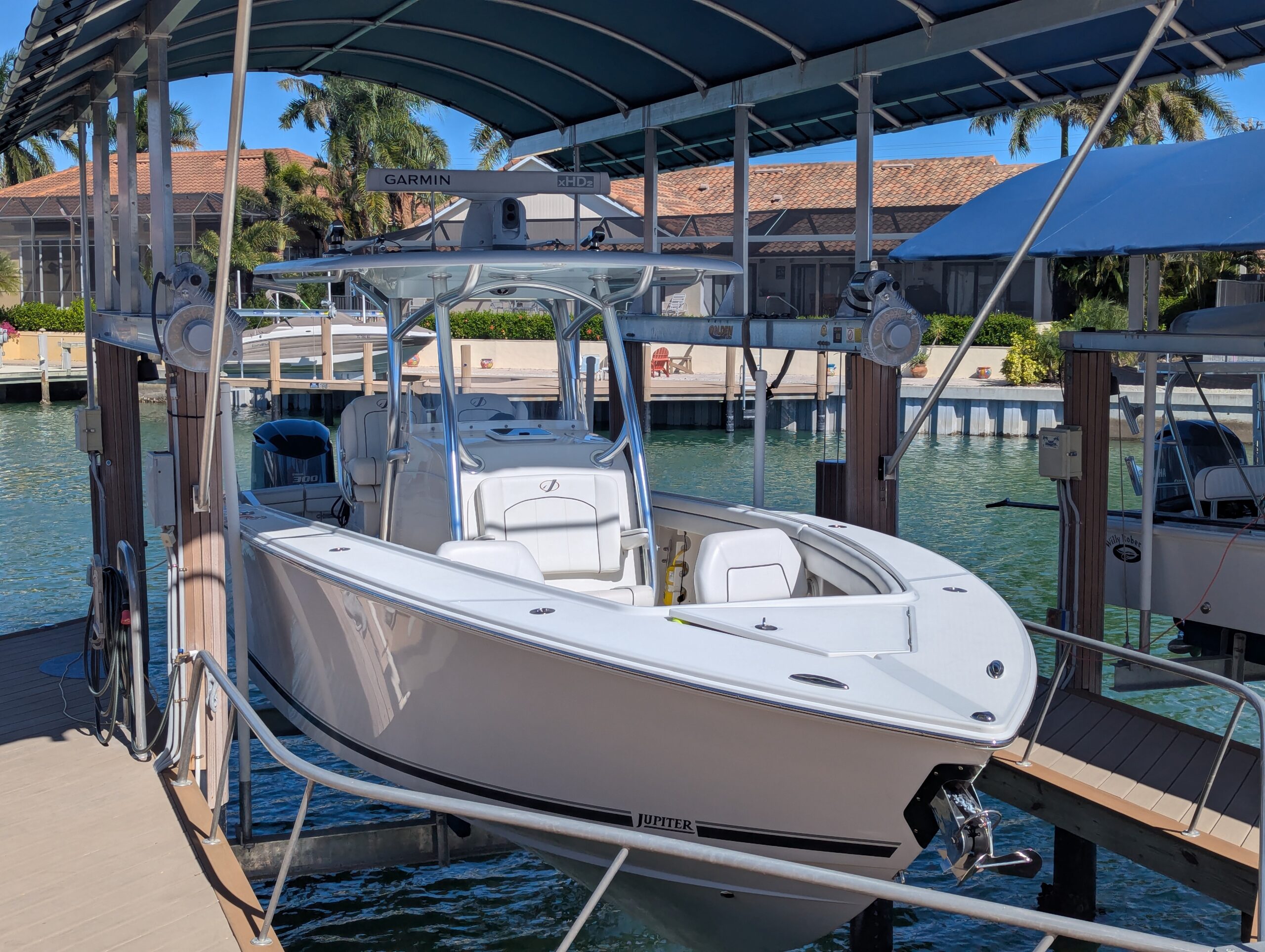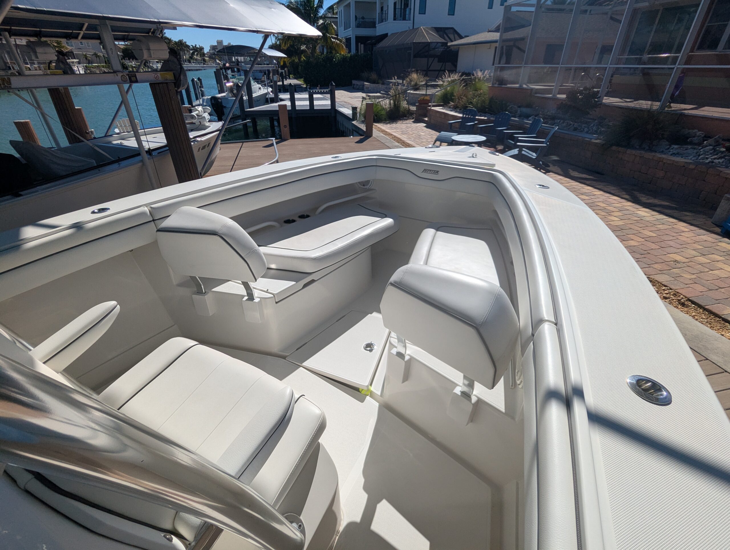 Powered by twin Yamaha 300 HP outboards with approximately 360 hours, this boat offers strong performance, reliability, and efficiency. With a comprehensive electronics package and extensive factory and custom upgrades, this Jupiter is truly turn-key and ready to go.