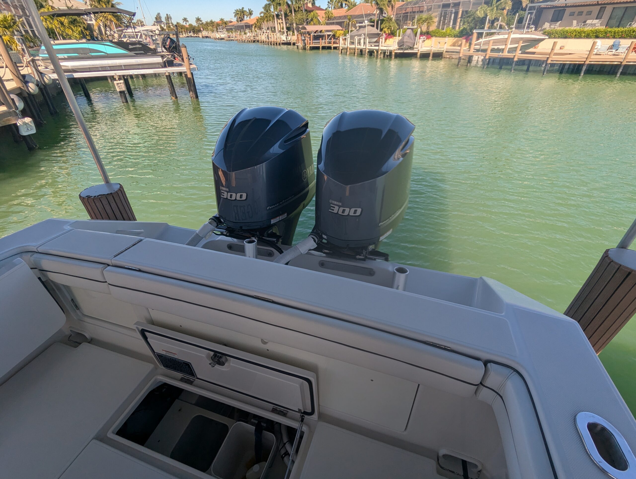 - Twin Yamaha 300 HP outboards – approx. 360 hours
