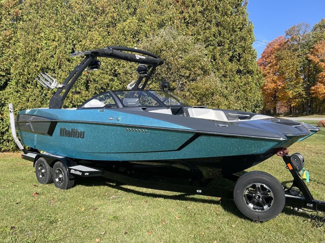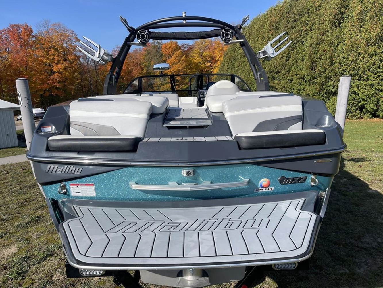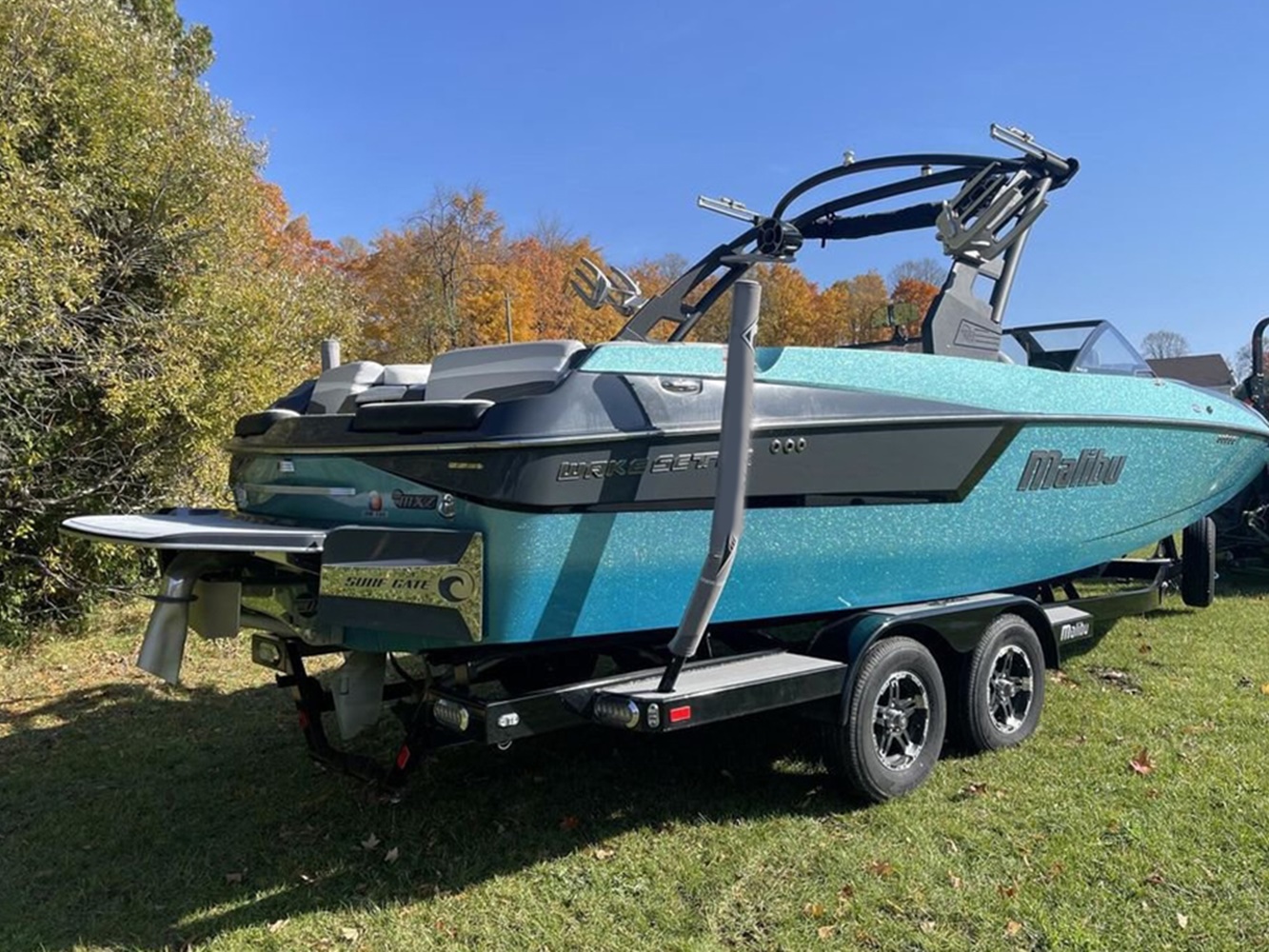 Loaded up and beautiful 2018 Malibu Boats Wakesetter 24 MXZ. This boat has the Monsoon 6.2L 575 Supercharged motor. Trailer included in sale. Custom mint metallic ordered from Malibu. Options include: PTM clamping board racks, surf pipe, soft-grip flooring (GatorStep), backup camera, wakeview bench seat, flip down interior seats, 3 pair cleats, docking & underwater lights, Rev8 tower speakers, sub, cover, bimini & much more.