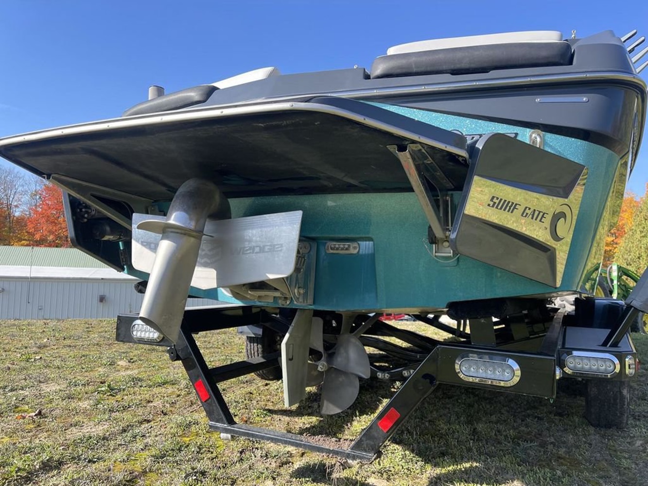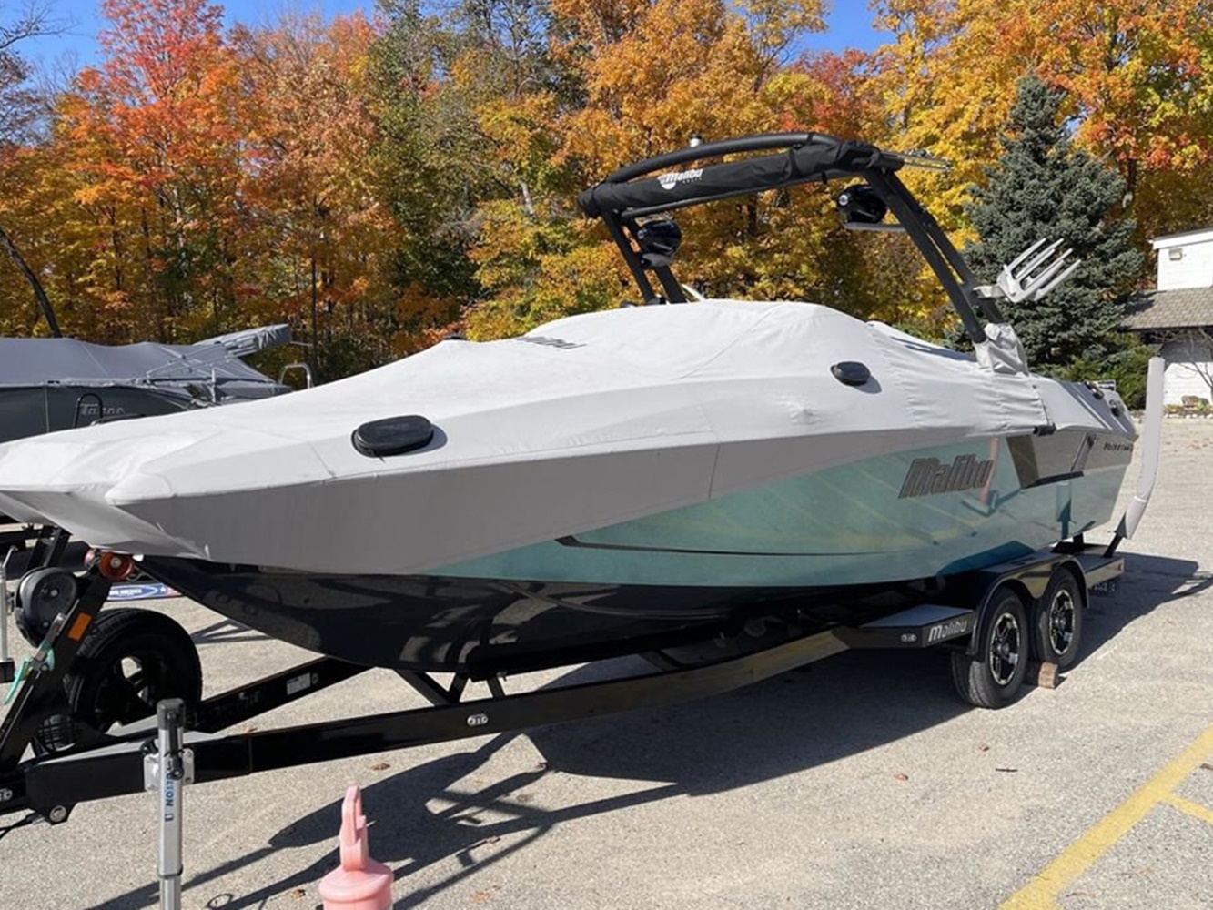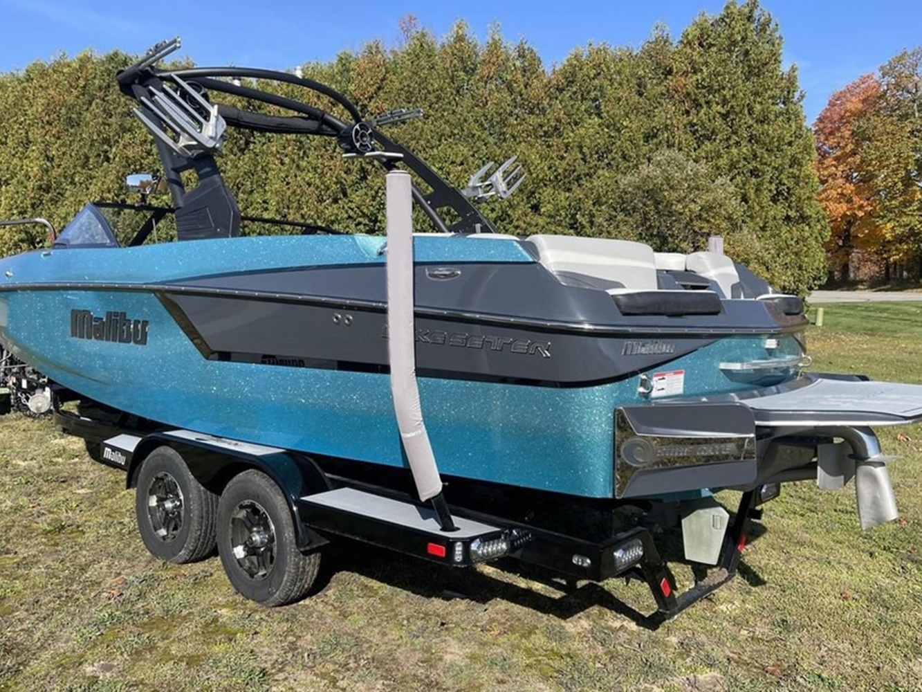 Loaded up and beautiful 2018 Malibu Boats Wakesetter 24 MXZ. This boat has the Monsoon 6.2L 575 Supercharged motor. Trailer included in sale. Custom mint metallic ordered from Malibu. Options include: PTM clamping board racks, surf pipe, soft-grip flooring (GatorStep), backup camera, wakeview bench seat, flip down interior seats, 3 pair cleats, docking & underwater lights, Rev8 tower speakers, sub, cover, bimini & much more.