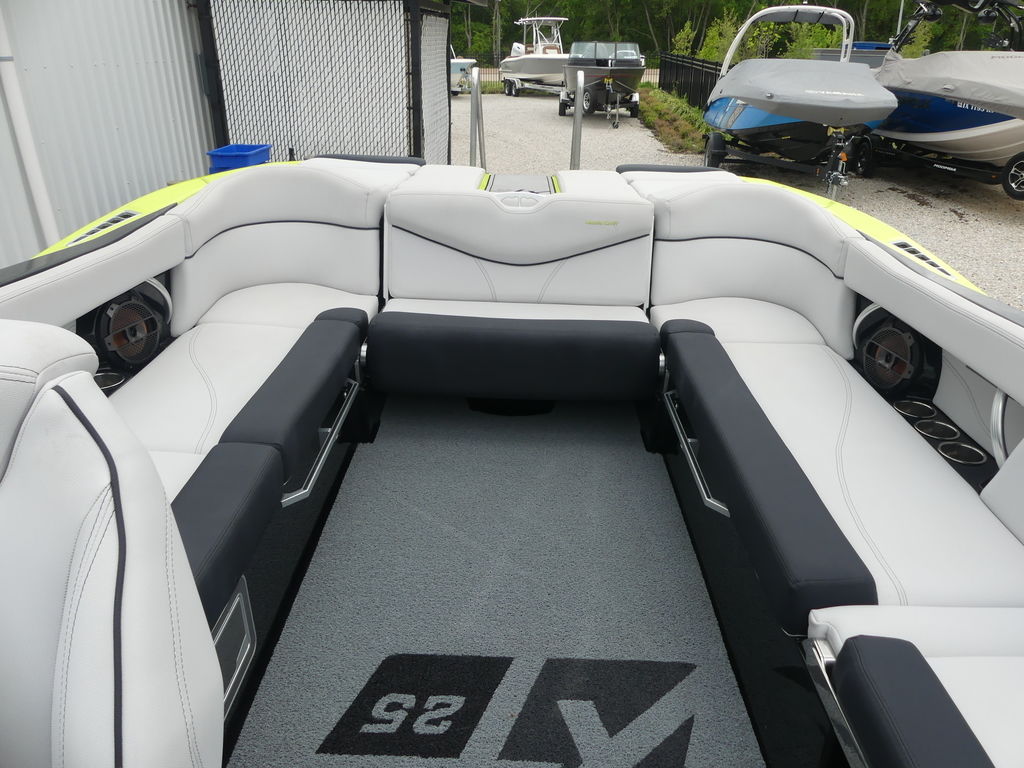 Built to entertain, the XT25 comfortably seats up to 18 passengers with a thoughtfully designed interior that maximizes social space, including multiple rear-facing seating options—perfect for watching the action behind the boat. Whether you’re hosting a full day on the water or cruising with family and friends, this boat truly feels like a floating lounge.