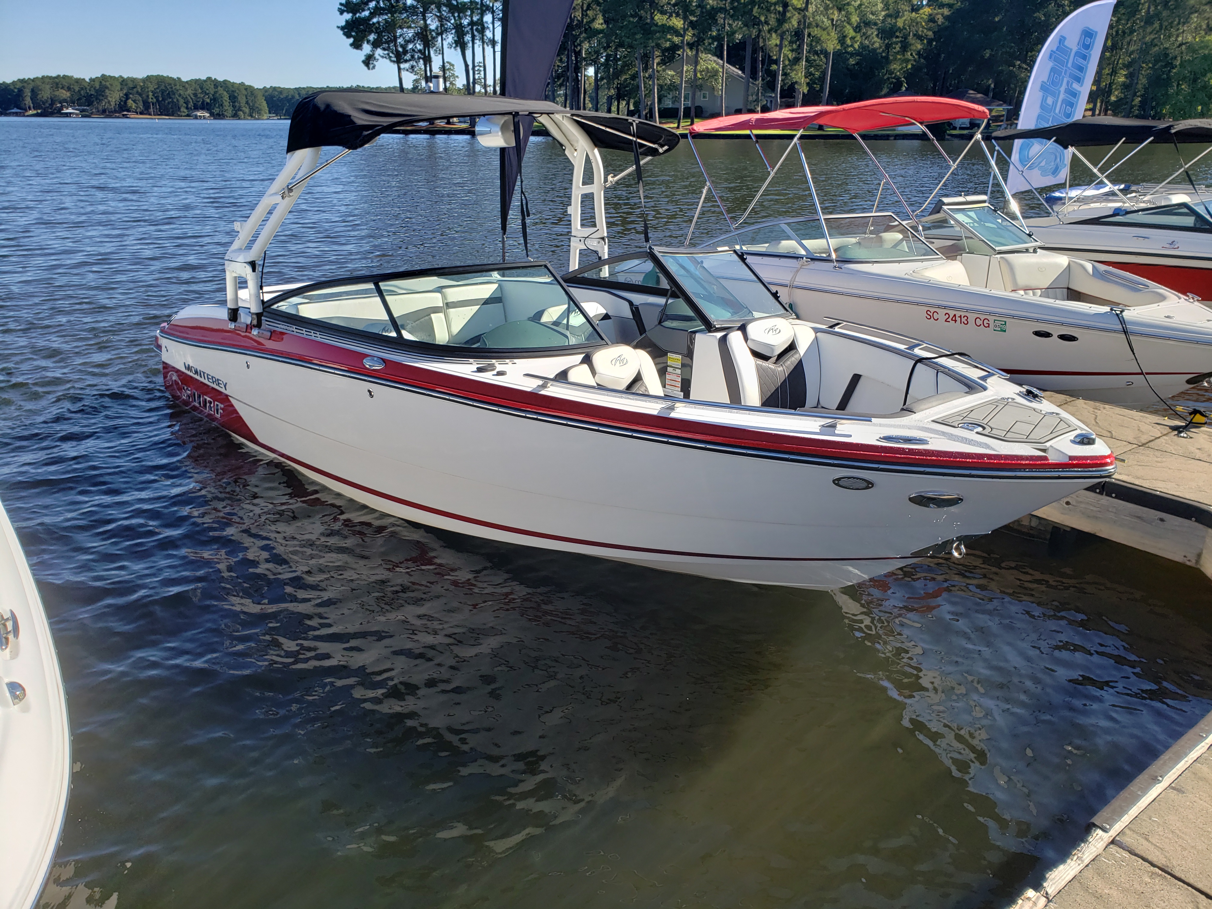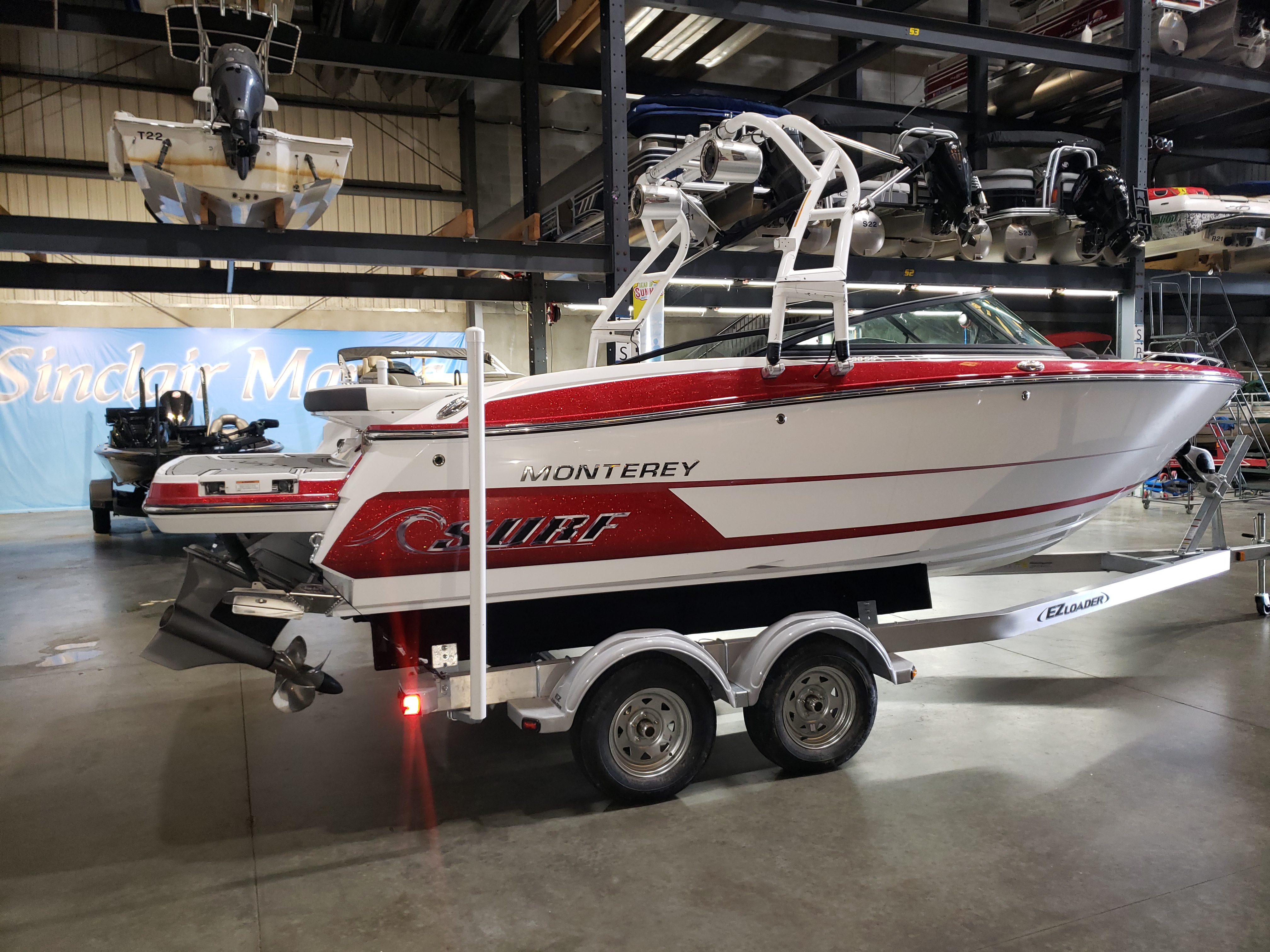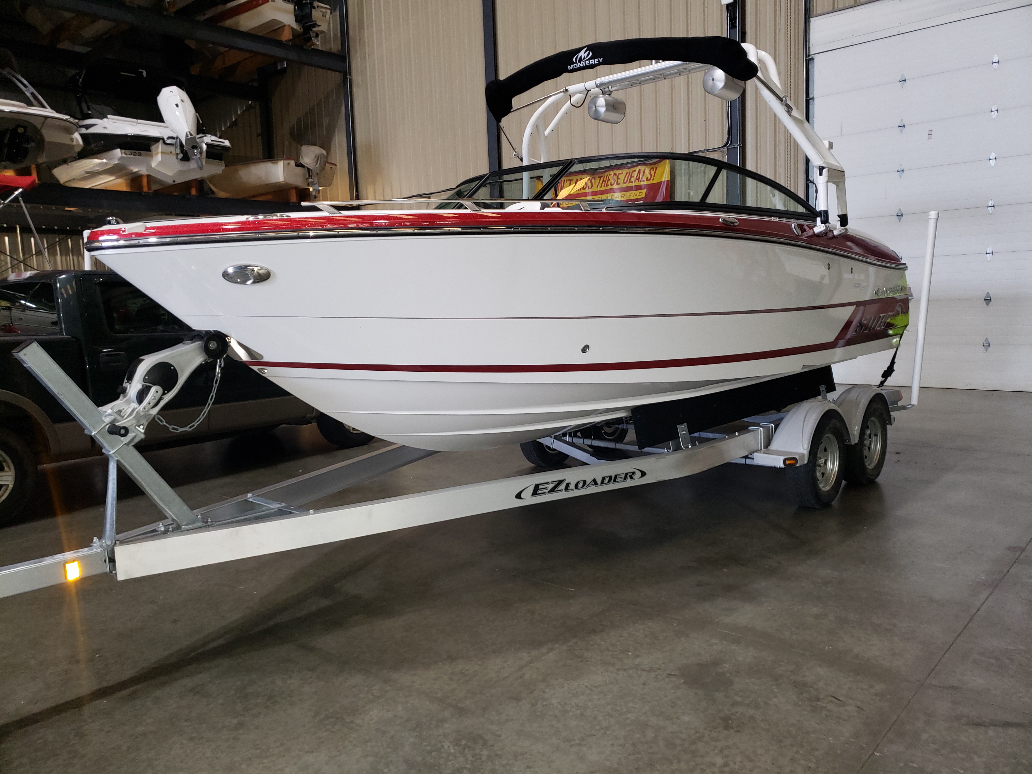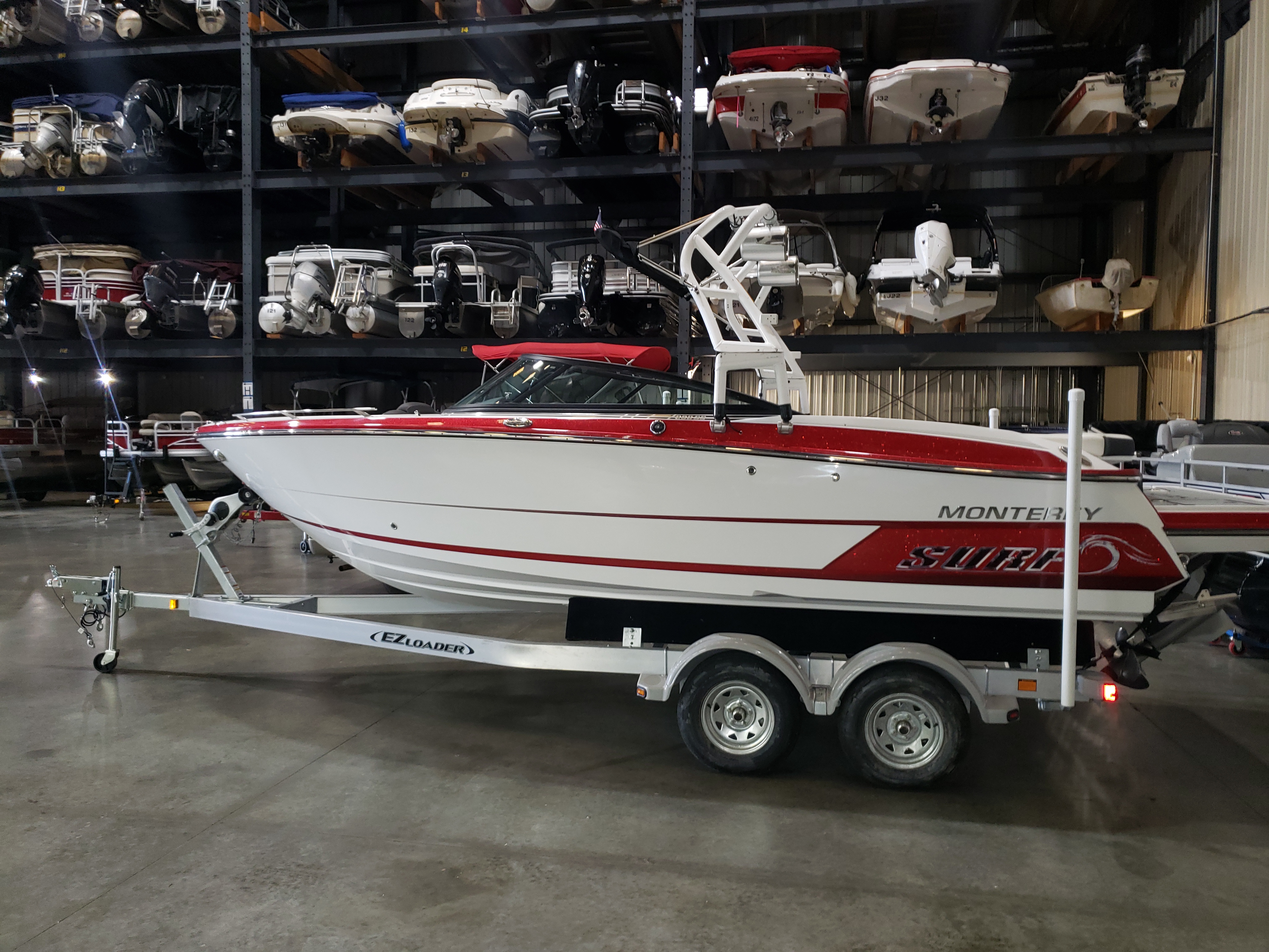 Here you have a Beautiful Boateka Certified 2018 Monterey 238 Surf boat with Volvo forward drive motor including tandem axle trailer.
