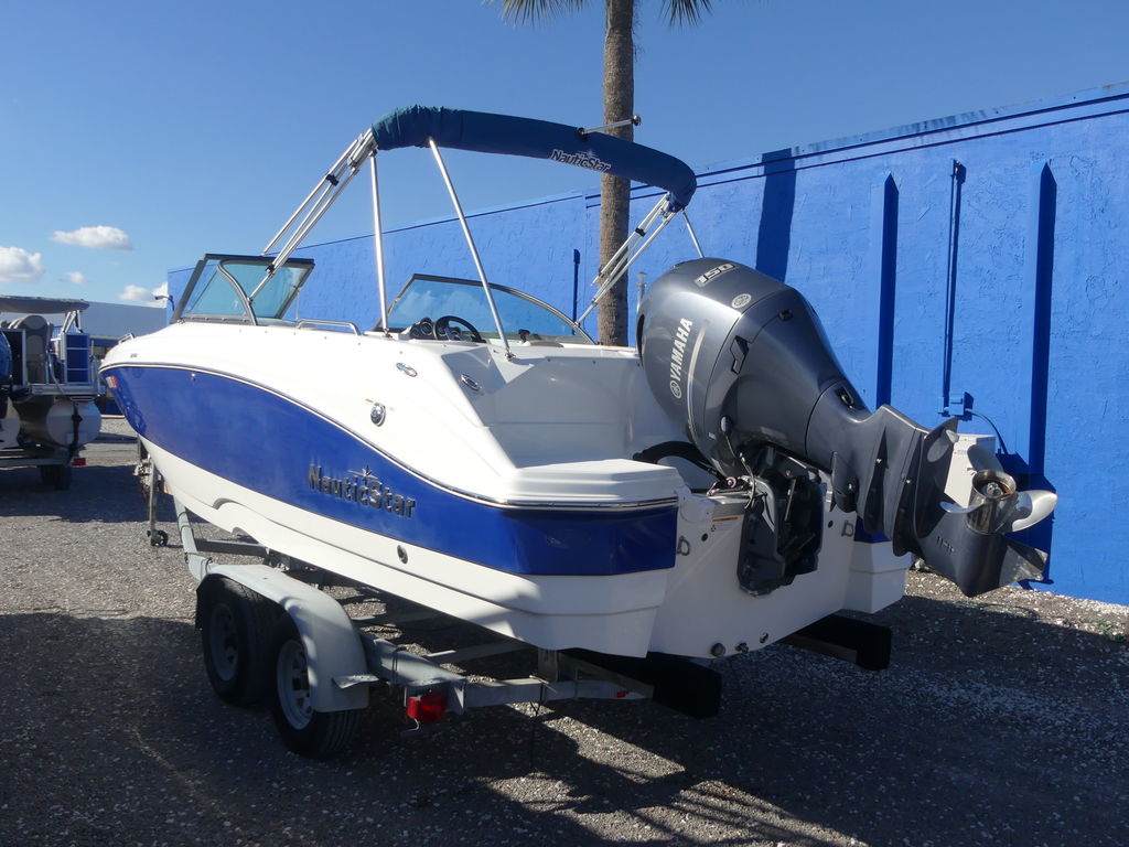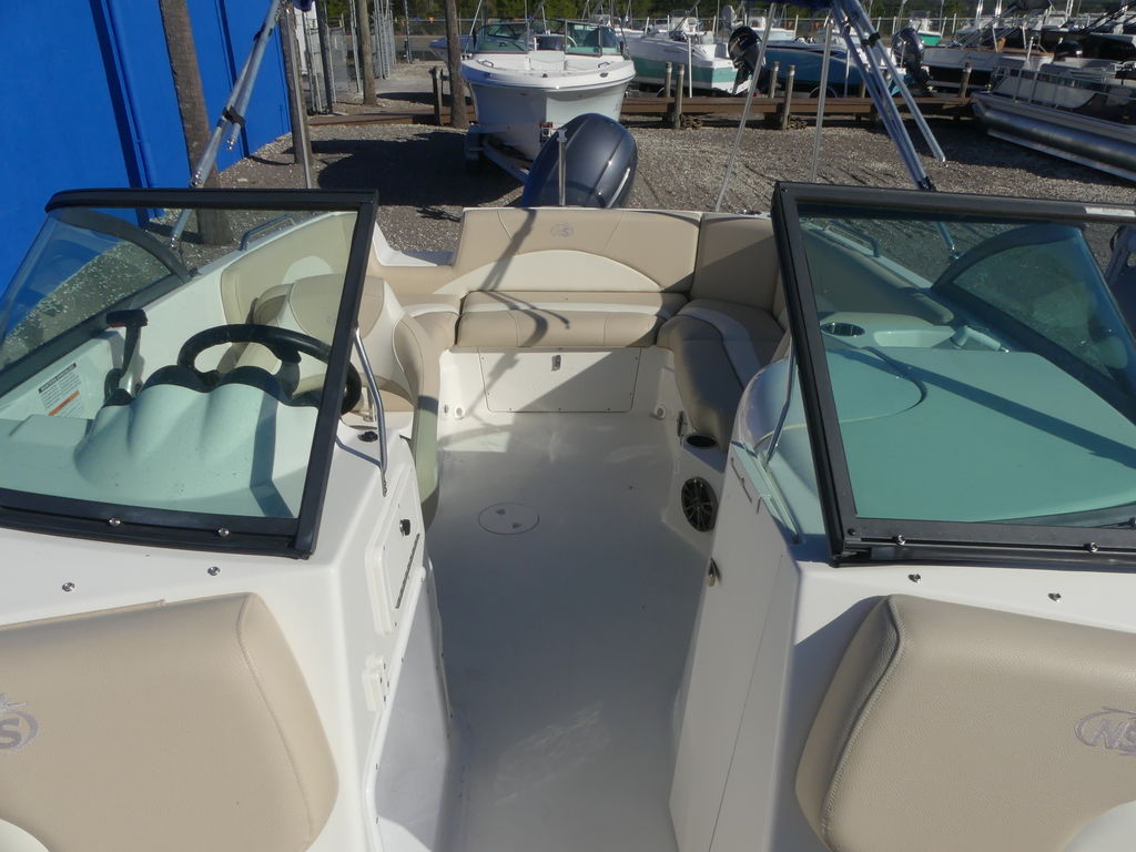 Enjoy the drive and ride of a V-Hull and beach party capacity of a deck style boat with the new generation design of the 223 DC. Runabout styling-deck boat efficient, the 223 DC has it all. Convenience and comfort features include a panoramic wraparound walk-thru windshield, portside mid-ship enclosed dressing room, “leather touch upholstery”, and NauticStar’s STAR Performance System. Some of the construction and design features include 11 drink holders, 7 storage compartments and 100% wood free construction. Top that off with the Infinity® stereo system with 4-waterproof speakers and you will show up to the beach party in comfort and style in the 223 DC.