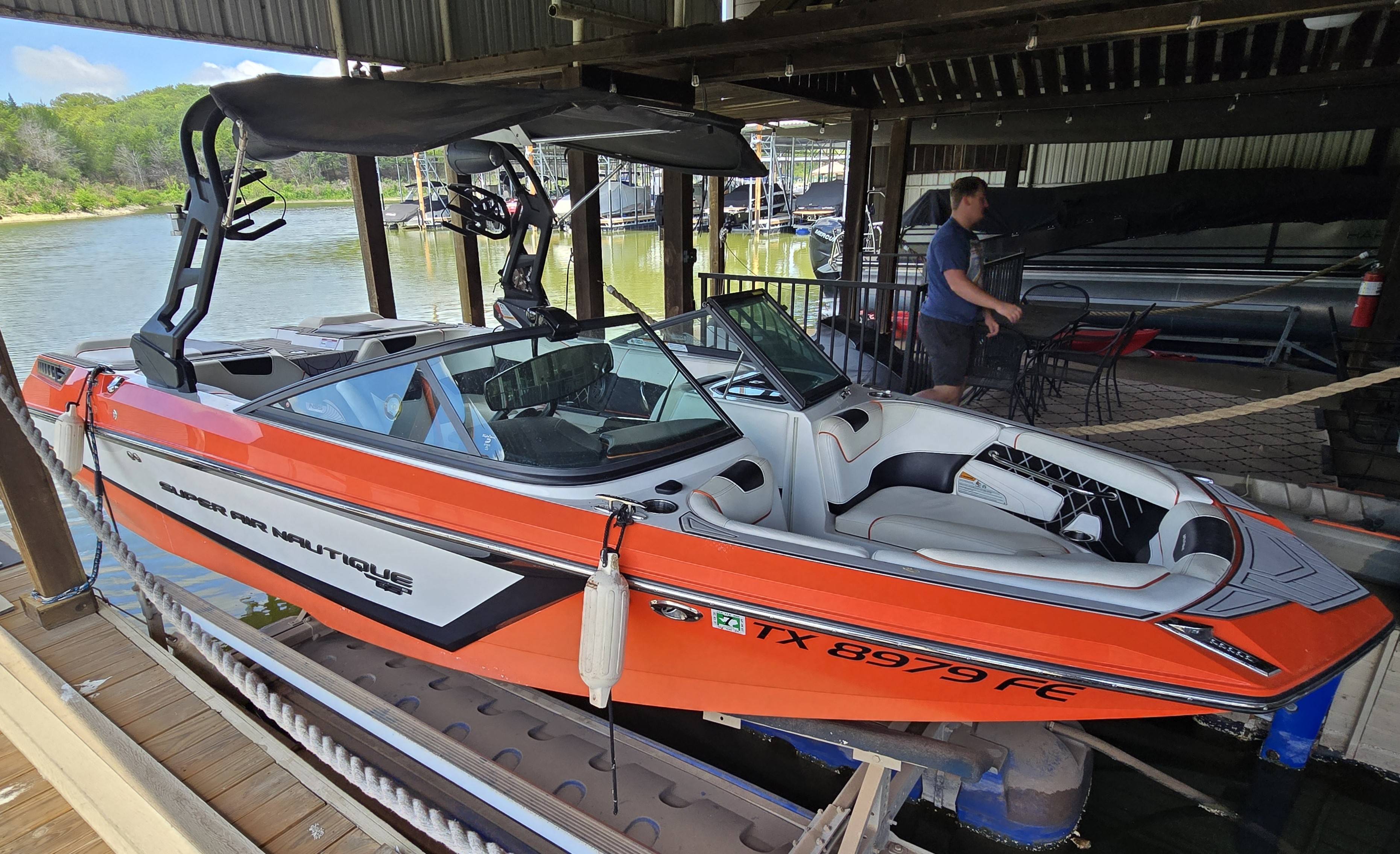 Offered in cooperation with Plano Marine. Boat is located on Lake Texoma. Presenting the 2018 Super Air Nautique GS20: The Ultimate Watersport Boat The 2018 Super Air Nautique GS20 is the perfect blend of power, versatility and style. With an impressive blend of luxury features and high-performance capabilities, the GS20 provides an unrivaled boating experience guaranteed to thrill watersport enthusiasts of all types. Optimized for Performance Equipped with a high-performance PCM engine , the Super Air Nautique GS20 ensures unmatched speed and agility, with features like Direct Injection technology for a cleaner, more efficient ride. Its adventure-ready attitude is underpinned by a Dual-Axis Wake performance that delivers an exceptional boost for both wakeboarders and wakesurfers alike. Luxurious Interior The GS20 offers a luxurious, spacious interior featuring a bow, cockpit and a rear-facing transom seating area, accommodating up to 12 passengers . The plush seating, high-quality upholstery, and flawless craftsmanship make every outing a pleasure. State-of-the-art Nautique LINC Panoray touchscreen and controls ensure a seamless interaction between the driver and boat. Innovation in Technology Equipped with Nautique Surf System (NSS) , this boat offers customizable surf waves at the touch of a button. The Nautique Configurable Running Surface allows you to modify wake shape and size, creating an optimal ride for any watersport activities. It also features Integrated Sports Settings that allow one-touch set up for wakeboarding, surfing or skiing. Sleek and Stylish The Super Air Nautique GS20's sleek, distinctive lines, and iconic design ensure it stands out on any waterway. Its striking gel-coat color options and custom boat wraps let you show off your personal style. Safety and Convenience With an integrated swim platform , easily accessible board storage areas, and enhanced safety features like multiple grab handles and non-slip decking, the Super Air Nautique GS20 is designed to make every outing not only thrilling but also comfortable, convenient, and safe. The 2018 Super Air Nautique GS20 is far more than just a boat - It's the ultimate watersport companion!