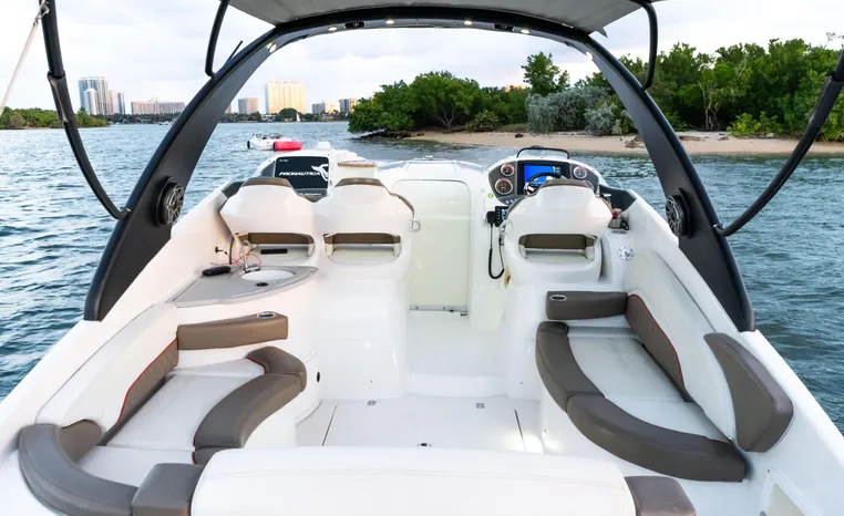 A performance-oriented boat that also gives you great cabin space and the ability to spend weekends in comfort. Cummins Onan 6kw Diesel generator, 12,000 BTU AC, Microwave, cooktop, refrigerator.